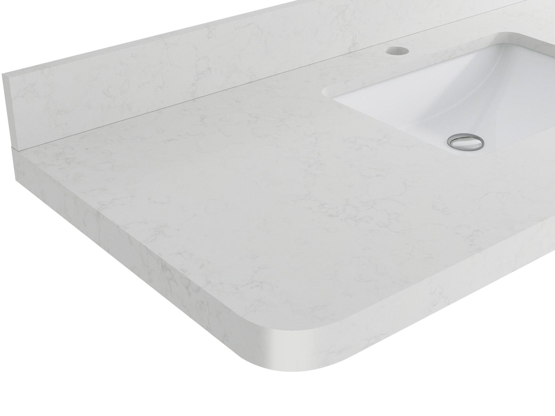 Vanity Countertops options: For Calacatta Laza Quartz, Calacatta Gold Quartz, Empira White Quartz, Pure White Quartz, Palissandro Quartz, Calacatta Nuvo Quartz, Carrara Marble, Carrara Quartz, Calacatta Sienna Quartz,  Terrazzo Arctic Breeze, Terrazzo Golden Dusk we have Rounded - Edge option.