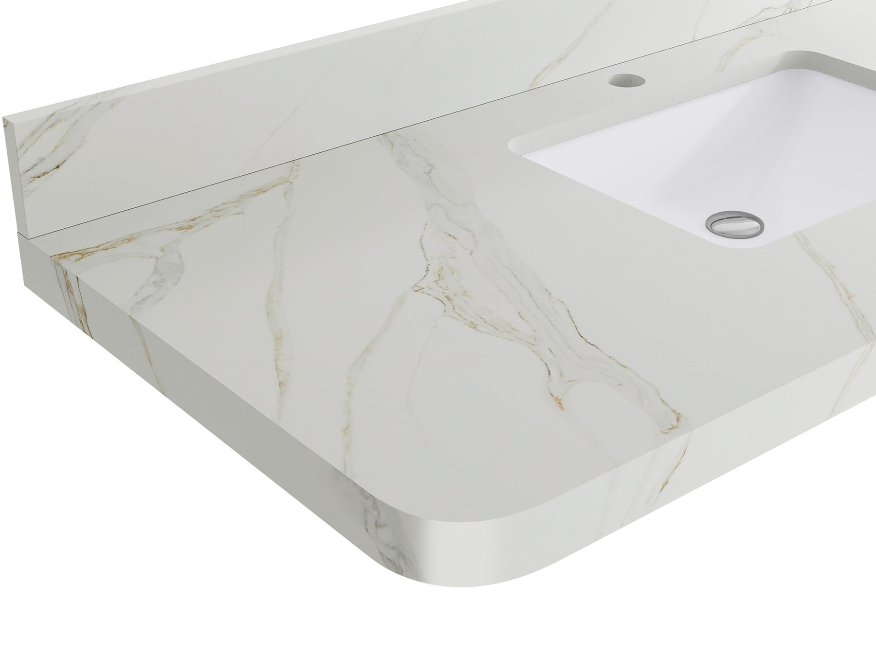Vanity Countertops options: For Calacatta Laza Quartz, Calacatta Gold Quartz, Empira White Quartz, Pure White Quartz, Palissandro Quartz, Calacatta Nuvo Quartz, Carrara Marble, Carrara Quartz, Calacatta Sienna Quartz,  Terrazzo Arctic Breeze, Terrazzo Golden Dusk we have Rounded - Edge option.