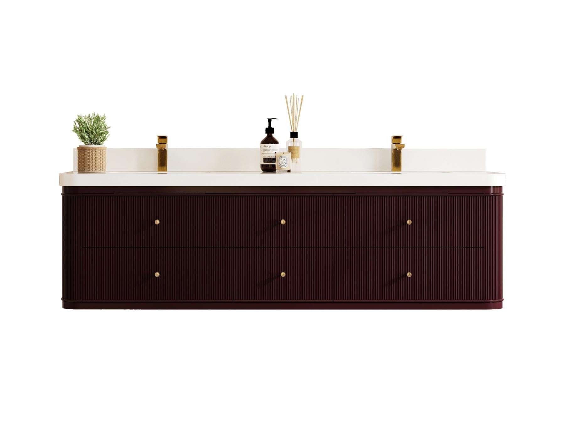 Hampton Floating 72 in. W x 22 in. D Double Sink Bathroom Vanity | Burgundy