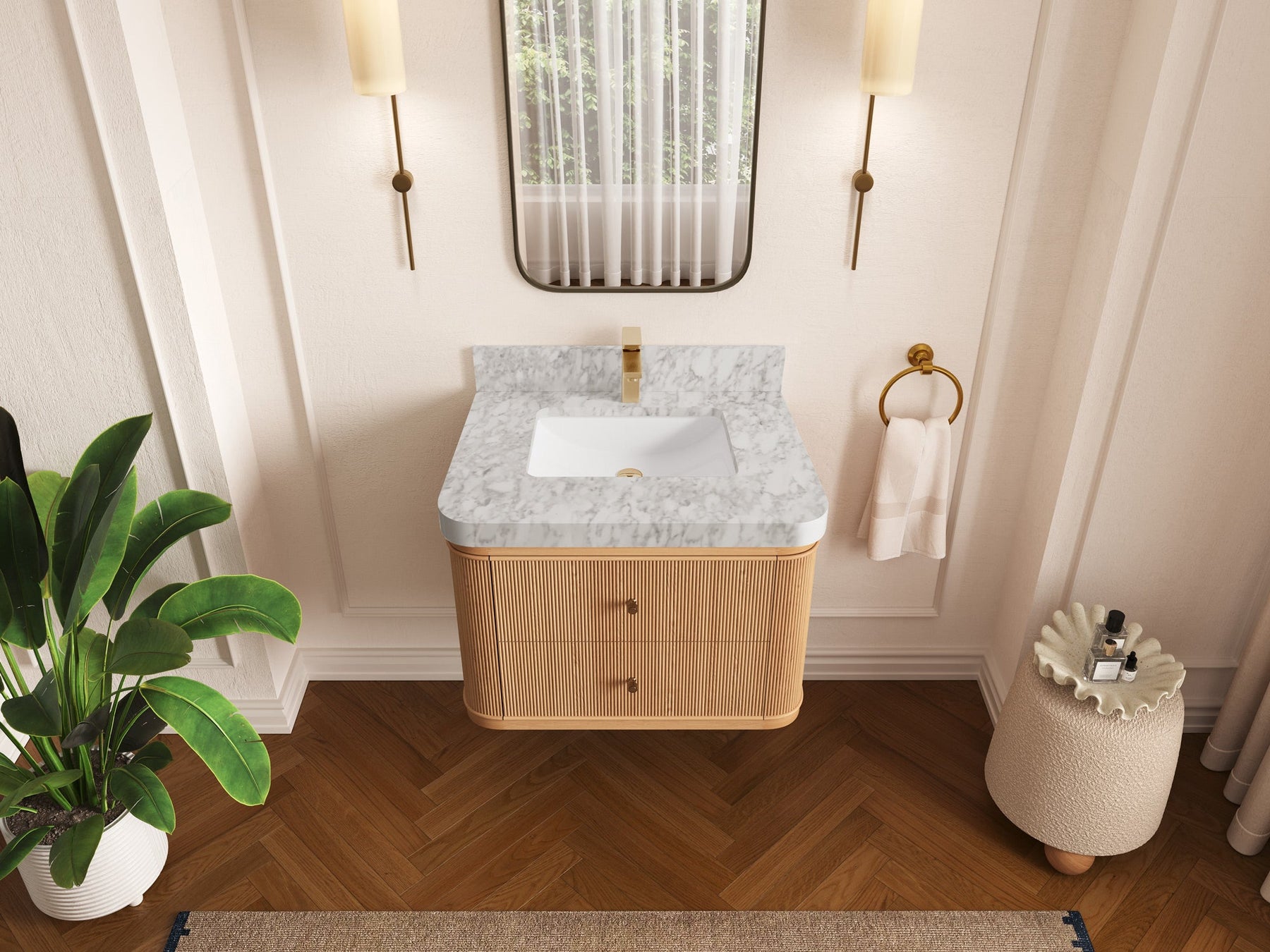 Faucet Hole(S): Comes with Single Faucet, 8 (in.) Widespread Faucet, Wall mount Faucets - Only Available for White Quartz and Carrara Quartz. (PLEASE ADD THIS CONFIGURATION UNDER COUNTERTOPS SECTION)