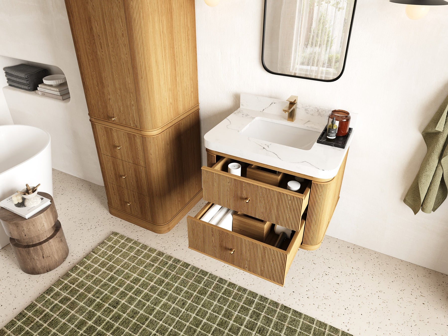 Vanity Countertops options: For Calacatta Laza Quartz, Empira White Quartz, Pure White Quartz, Palissandro Quartz, Calacatta Nuvo Quartz, Carrara Quartz, Calacatta Gold Quartz, Calacatta Sienna Quartz we have Straight - Mitered Edge option.