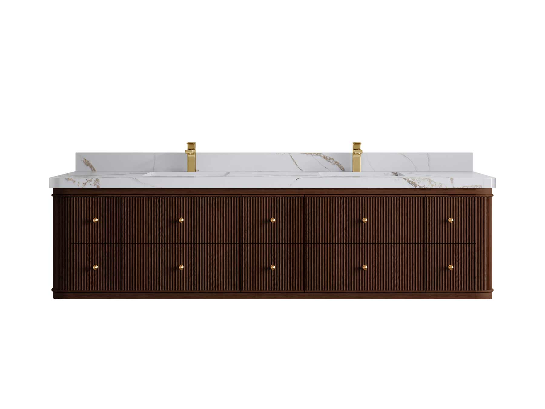Vanity Countertops options: For Calacatta Laza Quartz, Calacatta Gold Quartz, Empira White Quartz, Pure White Quartz, Palissandro Quartz, Calacatta Nuvo Quartz, Carrara Marble, Carrara Quartz, Calacatta Sienna Quartz,  Terrazzo Arctic Breeze, Terrazzo Golden Dusk we have Rounded - Edge option.