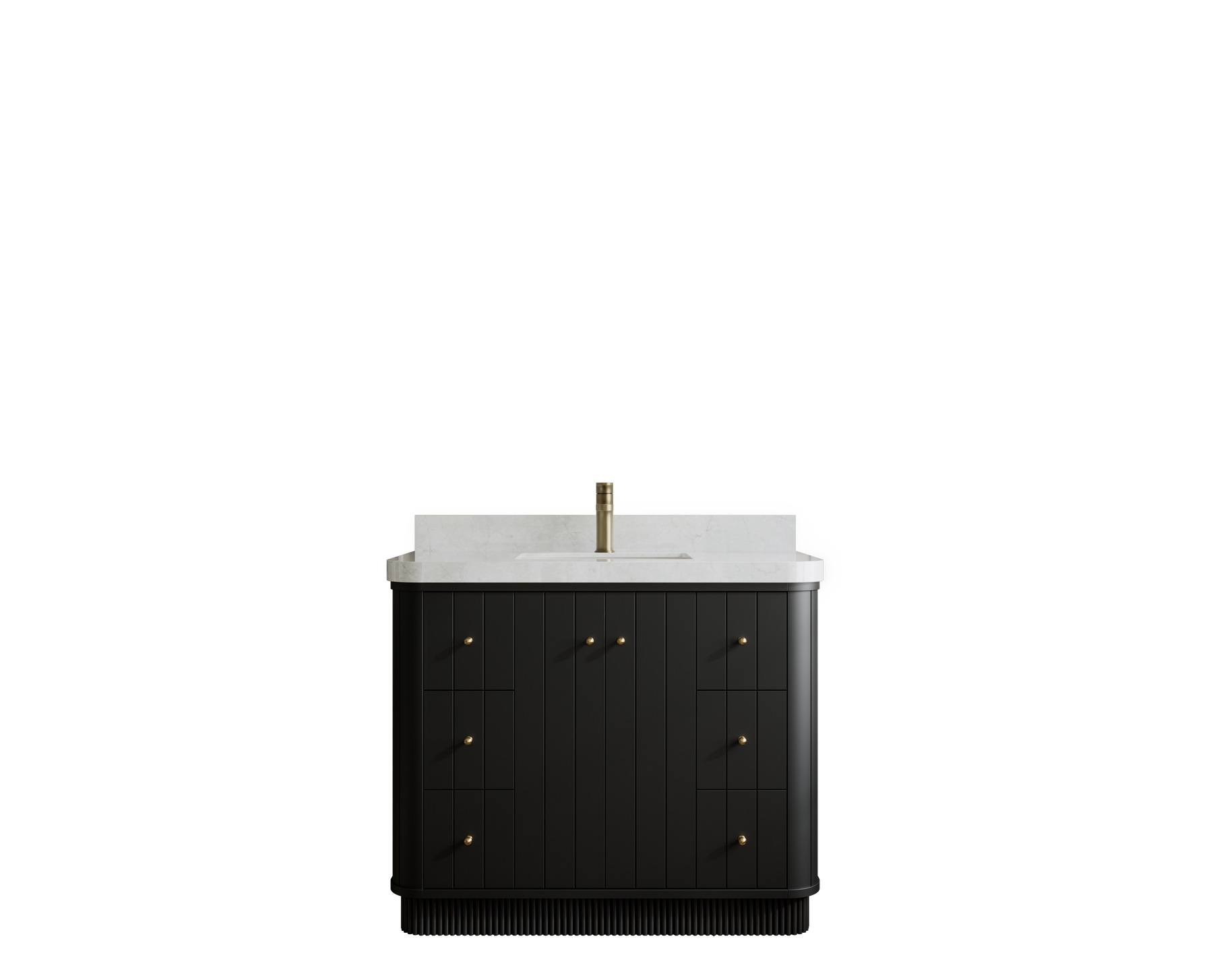 Meet Houston, the modern showpiece of the Houston Collection, crafted to bring warmth, texture, and refinement to any bathroom. A sculpted, softly rounded silhouette flows from the curved ends to the smooth, radiused countertop corners, while a fluted front meets a reeded kick plate for subtle texture and shadow play. The result is a clean, contemporary vanity that feels tailored and timeless — designed for bathrooms that want the look of luxury without harsh lines.
