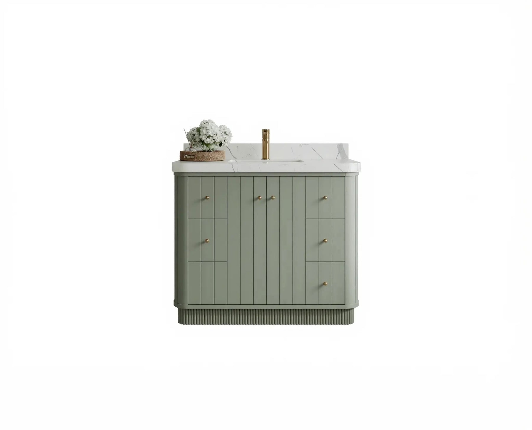 Houston 42 in. W x 22 in. D Free Standing Curved Edge Single Sink Bathroom Vanity | Evergreen