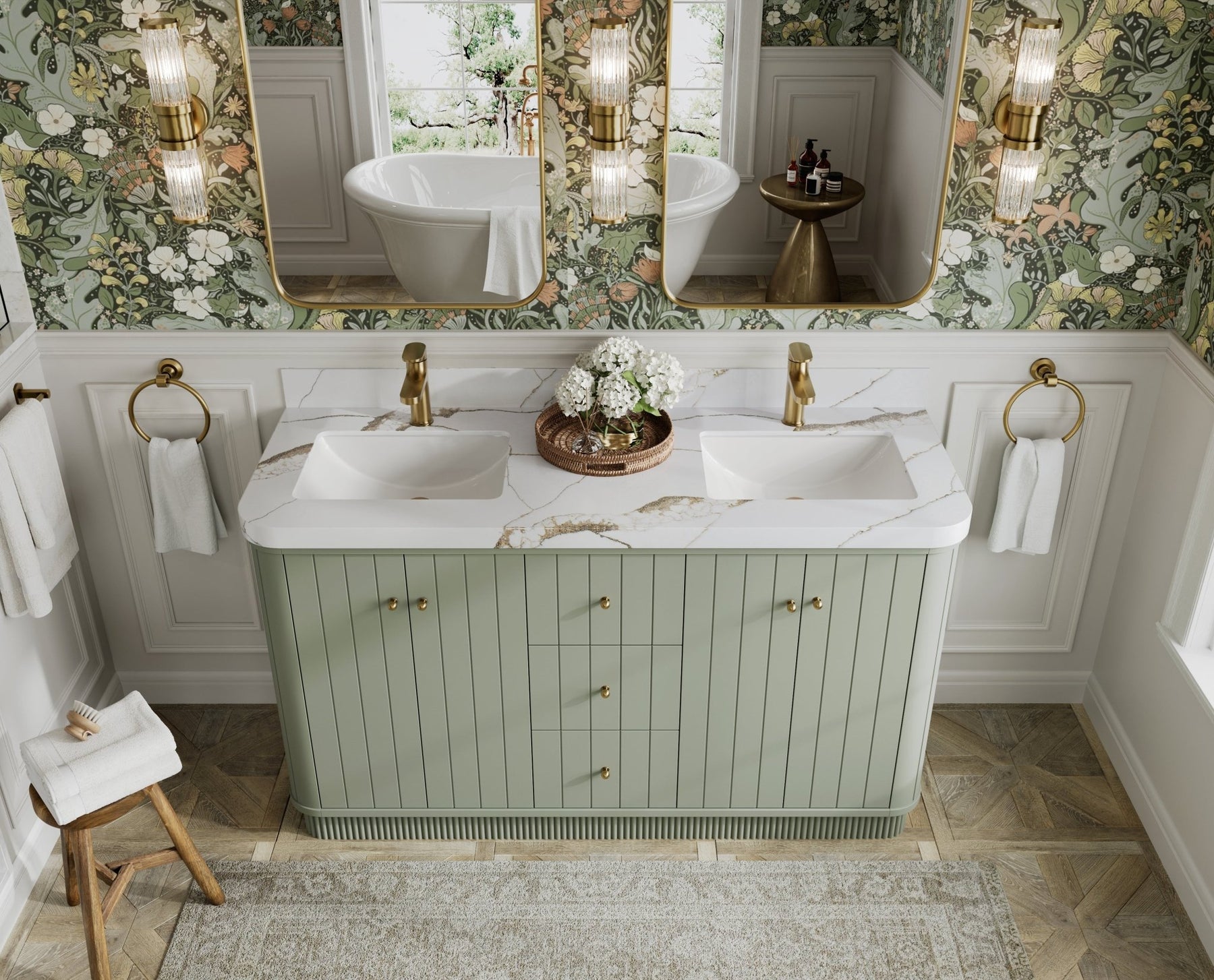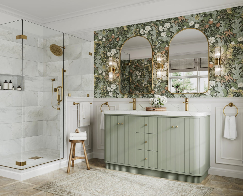 Vanity Countertops options: For Calacatta Laza Quartz, Calacatta Gold Quartz, Empira White Quartz, Pure White Quartz, Palissandro Quartz, Calacatta Nuvo Quartz, Carrara Marble, Carrara Quartz, Calacatta Sienna Quartz, Terrazzo Arctic Breeze, Terrazzo Golden Dusk we have Rounded - Edge option.