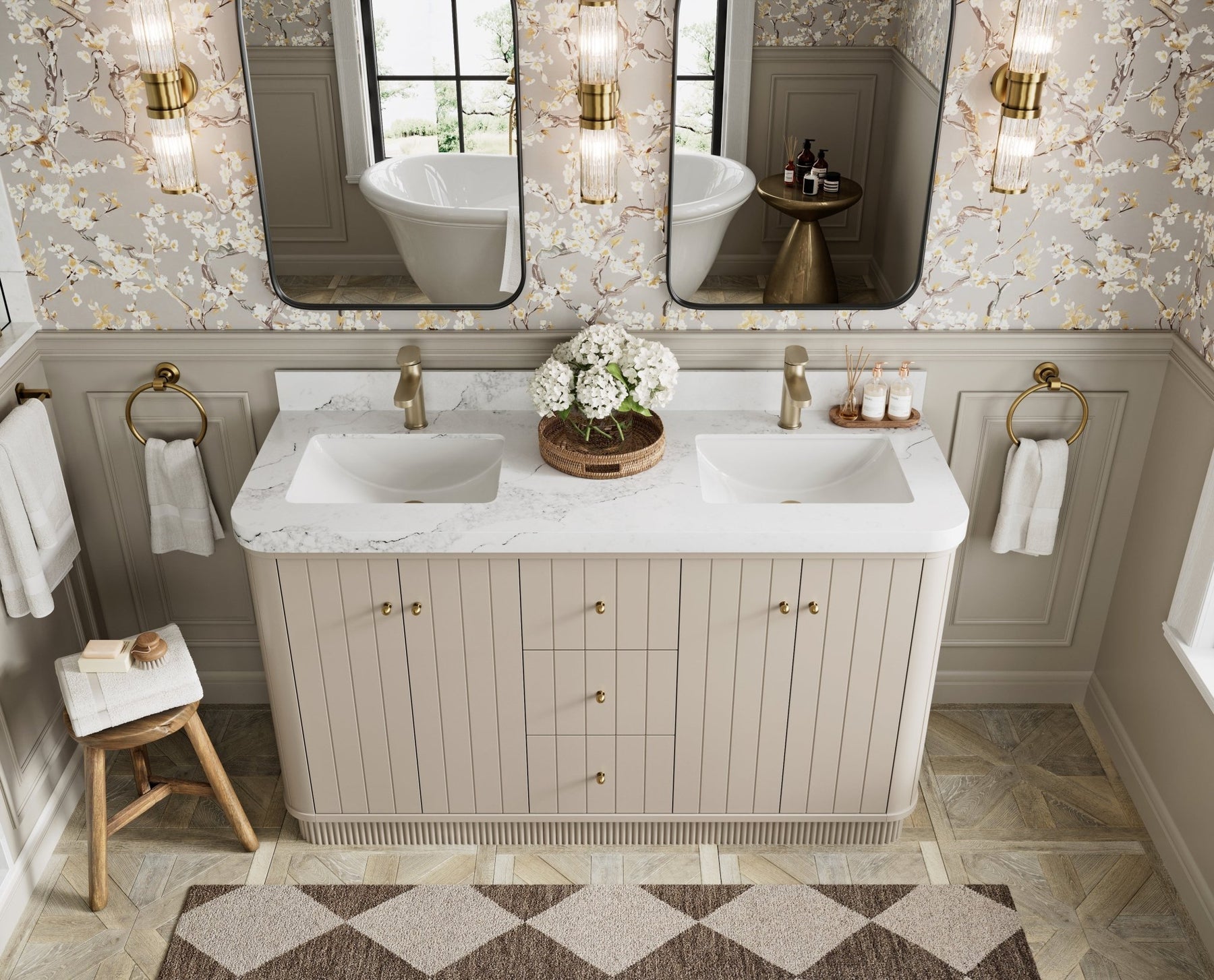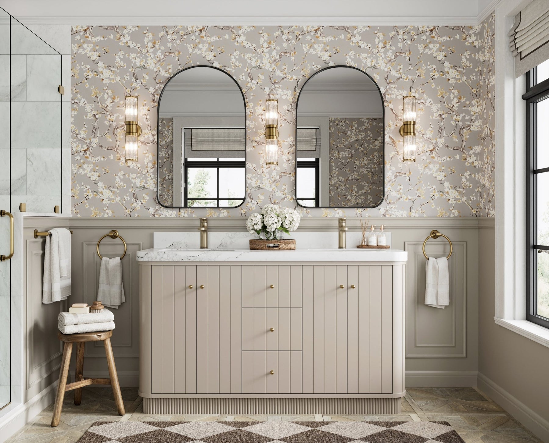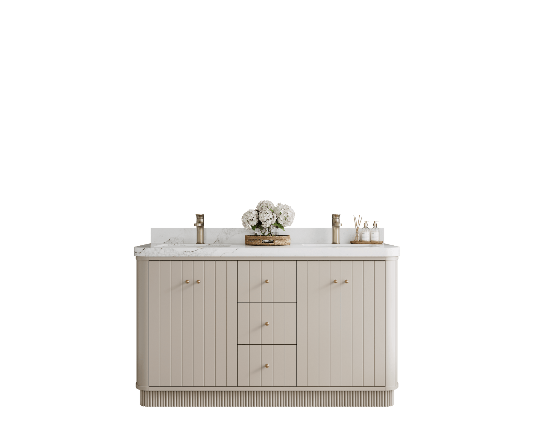 Vanity Countertops options: For Calacatta Laza Quartz, Calacatta Gold Quartz, Empira White Quartz, Pure White Quartz, Palissandro Quartz, Calacatta Nuvo Quartz, Carrara Marble, Carrara Quartz, Calacatta Sienna Quartz, Terrazzo Arctic Breeze, Terrazzo Golden Dusk we have Rounded - Edge option.