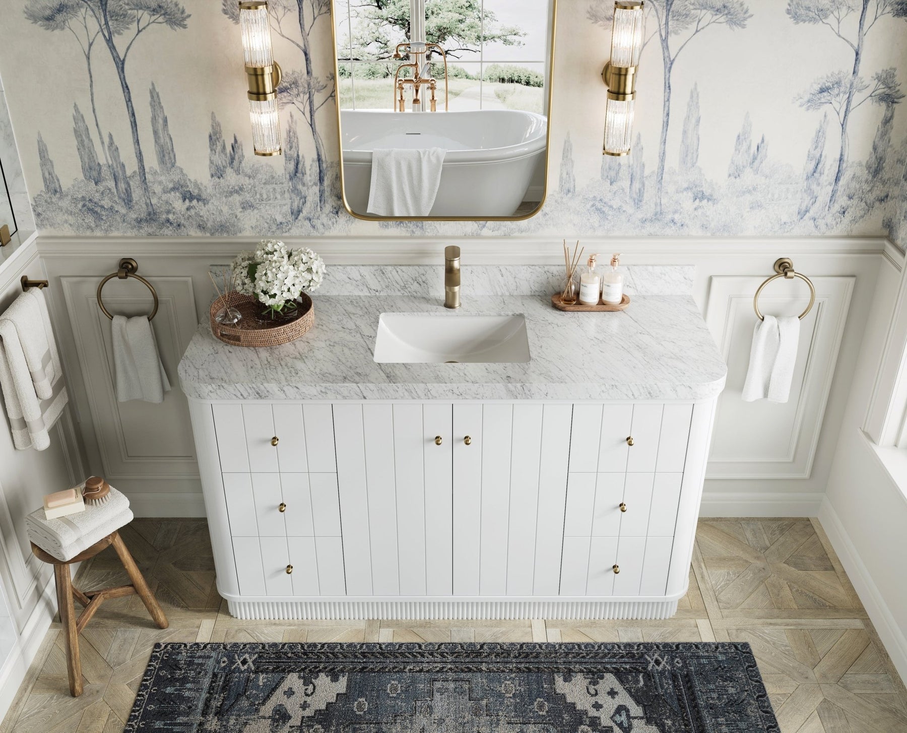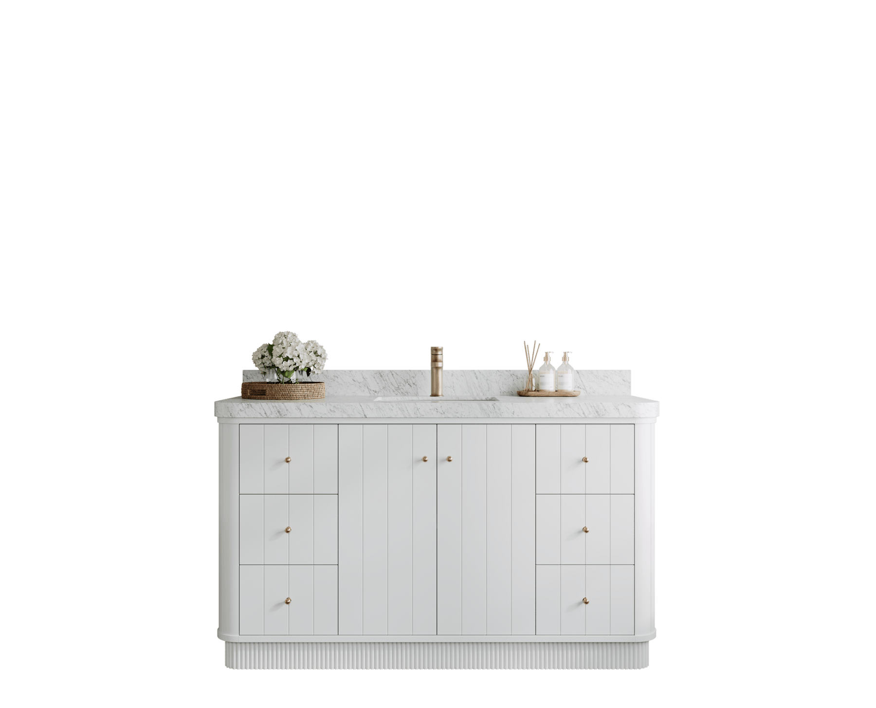 Vanity Countertops options: For Calacatta Laza Quartz, Calacatta Gold Quartz, Empira White Quartz, Pure White Quartz, Palissandro Quartz, Calacatta Nuvo Quartz, Carrara Marble, Carrara Quartz, Calacatta Sienna Quartz, Terrazzo Arctic Breeze, Terrazzo Golden Dusk we have Rounded - Edge option.