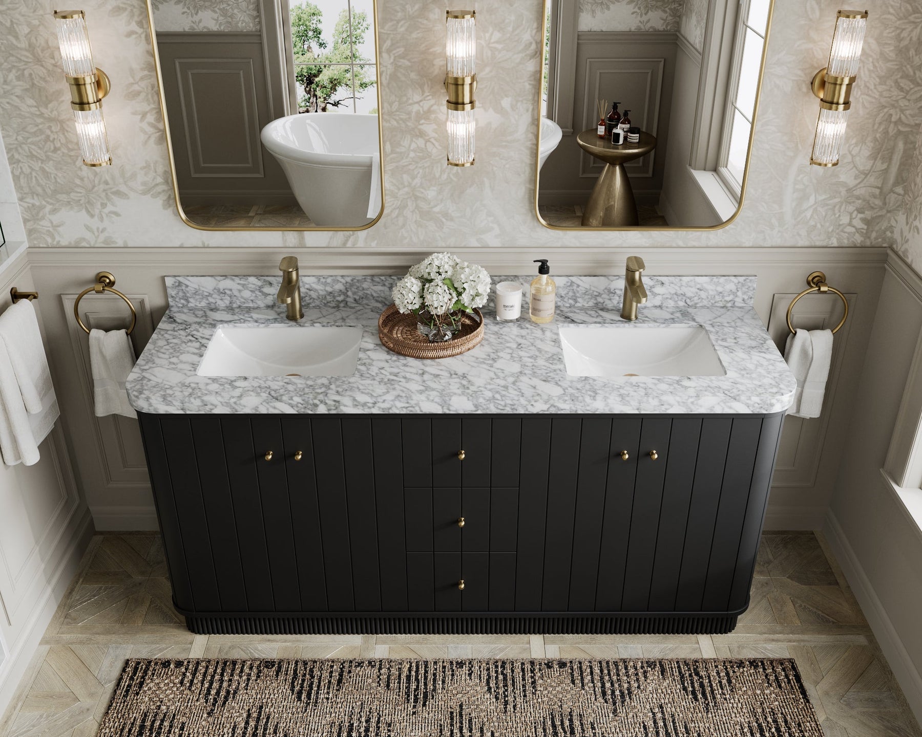 Fluted design – vertically grooved fronts create architectural depth and dimension.