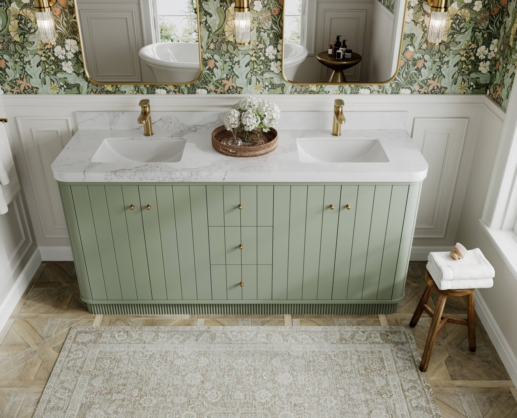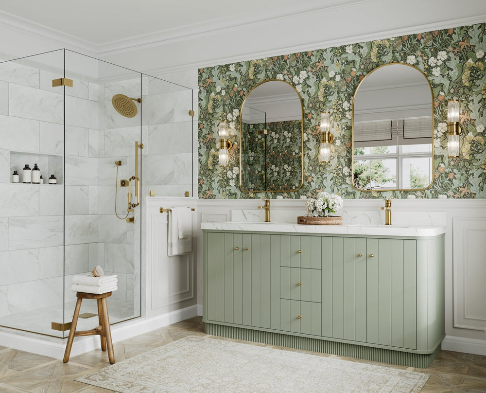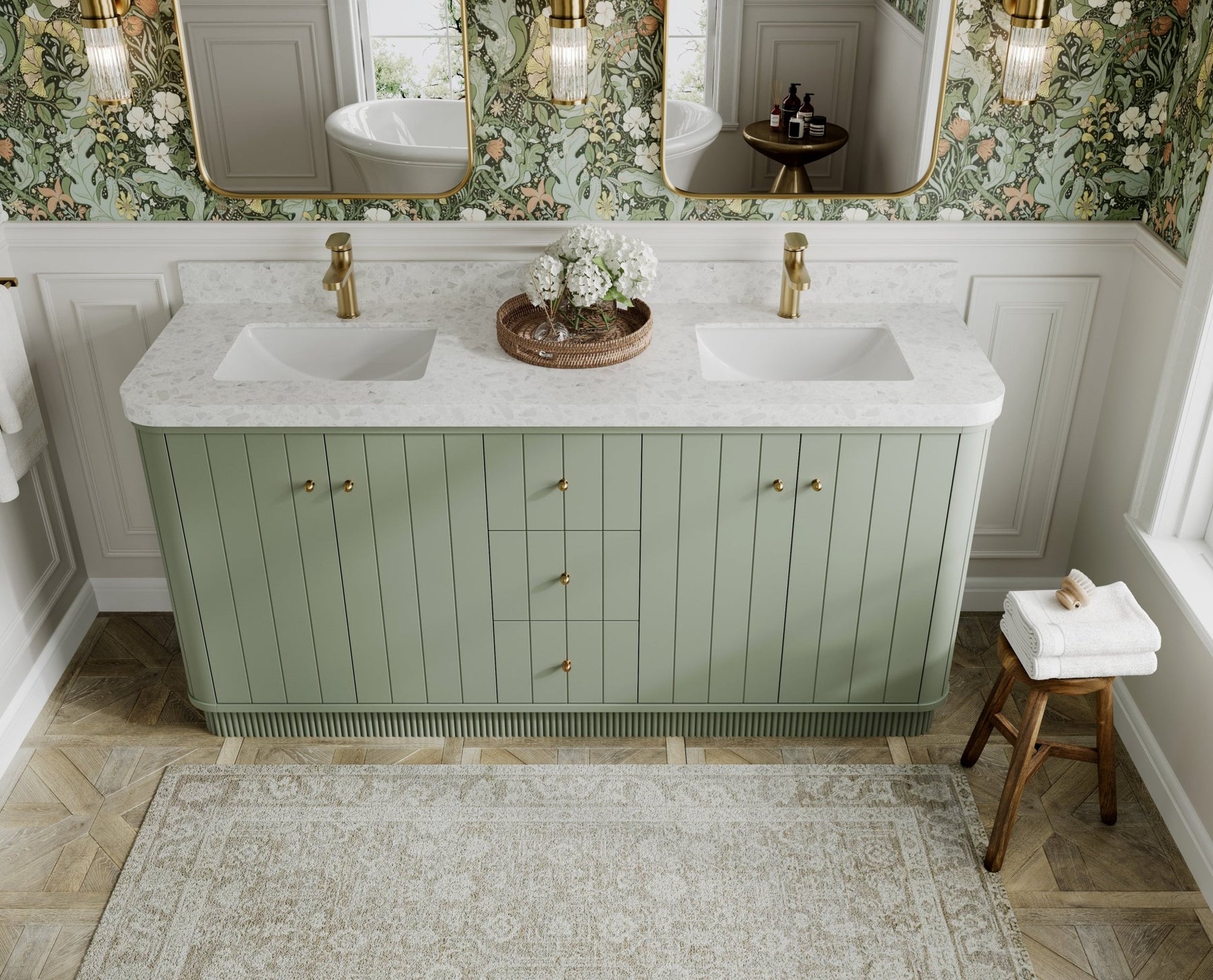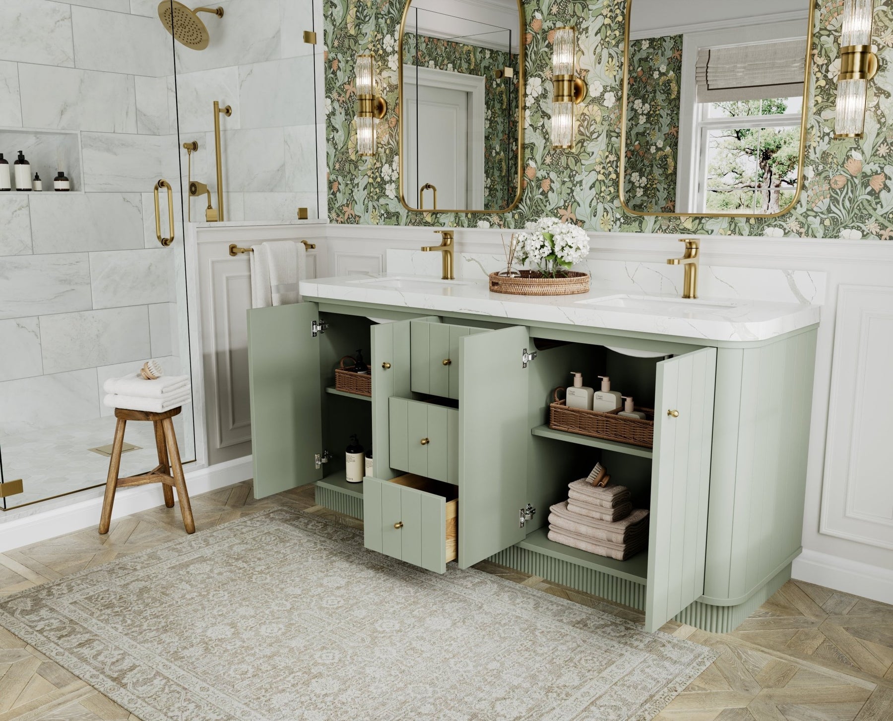 Vanity Countertops options: For Calacatta Laza Quartz, Calacatta Gold Quartz, Empira White Quartz, Pure White Quartz, Palissandro Quartz, Calacatta Nuvo Quartz, Carrara Marble, Carrara Quartz, Calacatta Sienna Quartz, Terrazzo Arctic Breeze, Terrazzo Golden Dusk we have Rounded - Edge option.