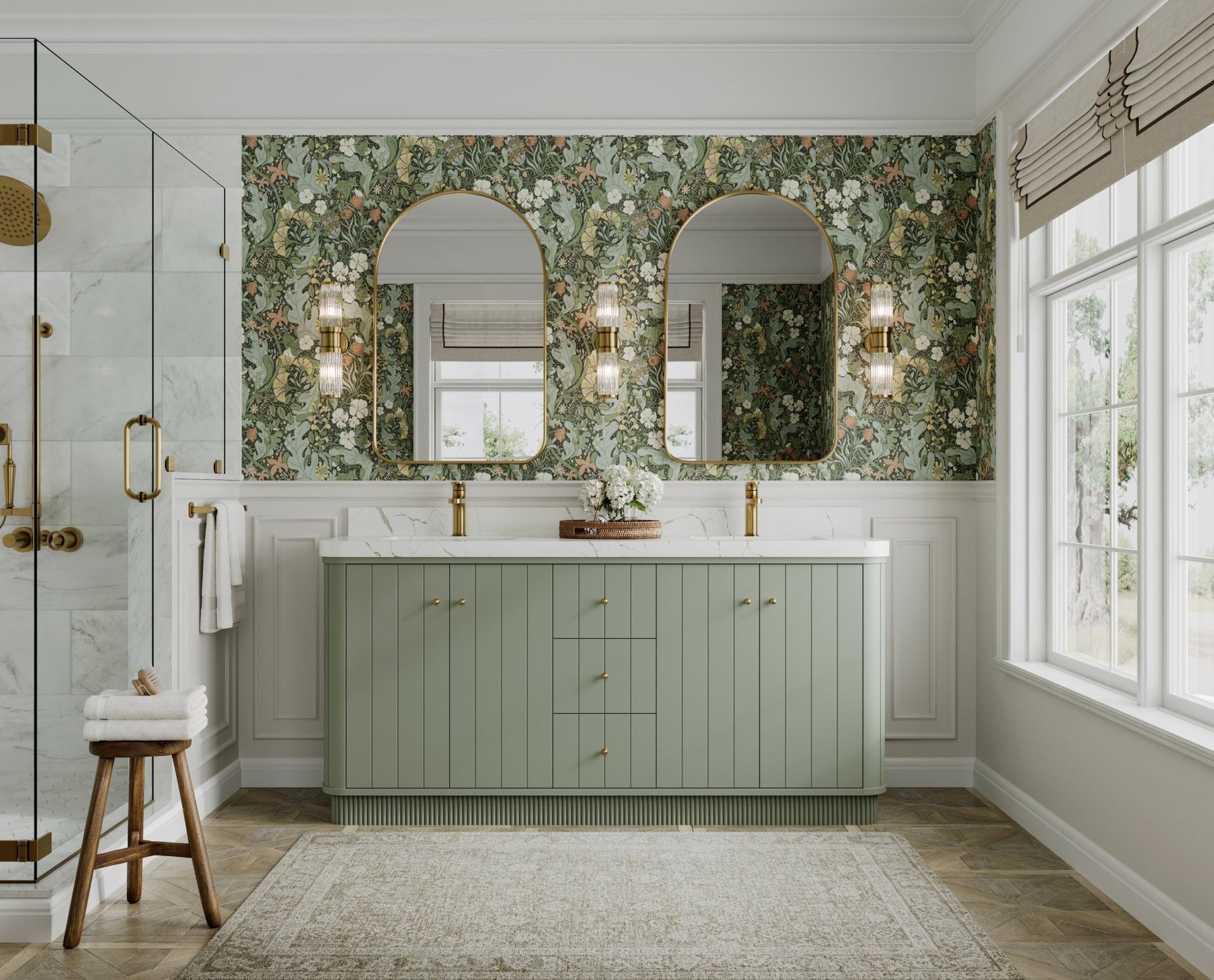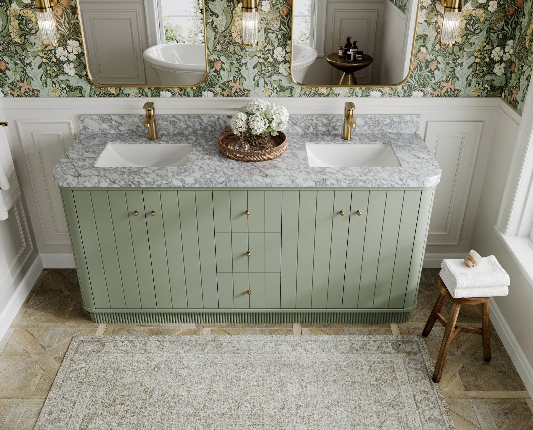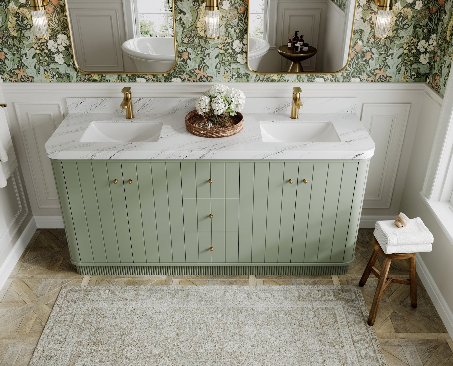Vanity Countertops options: For Calacatta Laza Quartz, Calacatta Gold Quartz, Empira White Quartz, Pure White Quartz, Palissandro Quartz, Calacatta Nuvo Quartz, Carrara Marble, Carrara Quartz, Calacatta Sienna Quartz, Terrazzo Arctic Breeze, Terrazzo Golden Dusk we have Rounded - Edge option.