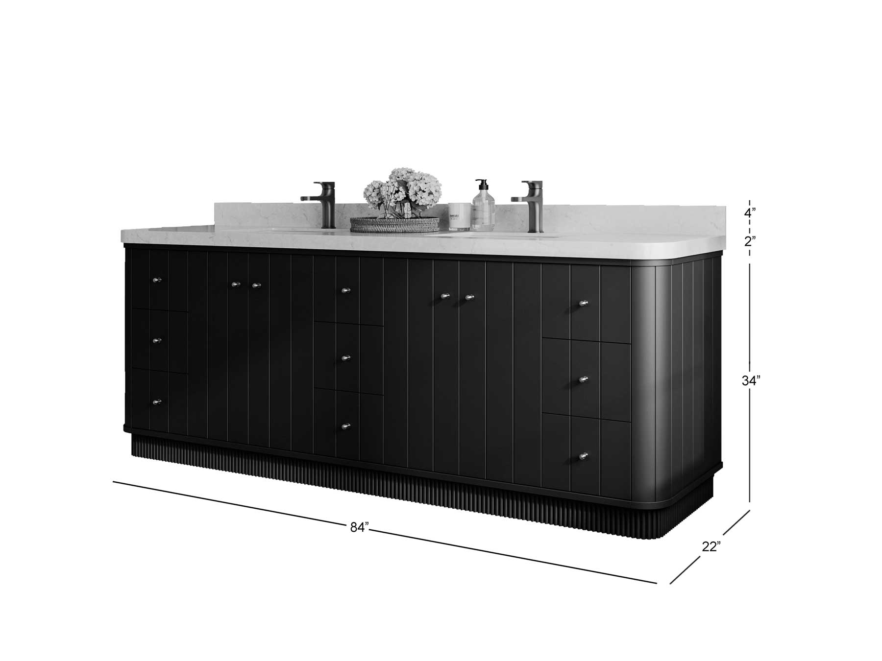 Houston 84 in. W x 22 in. D Free Standing Curved Edge Double Sink Bathroom Vanity |