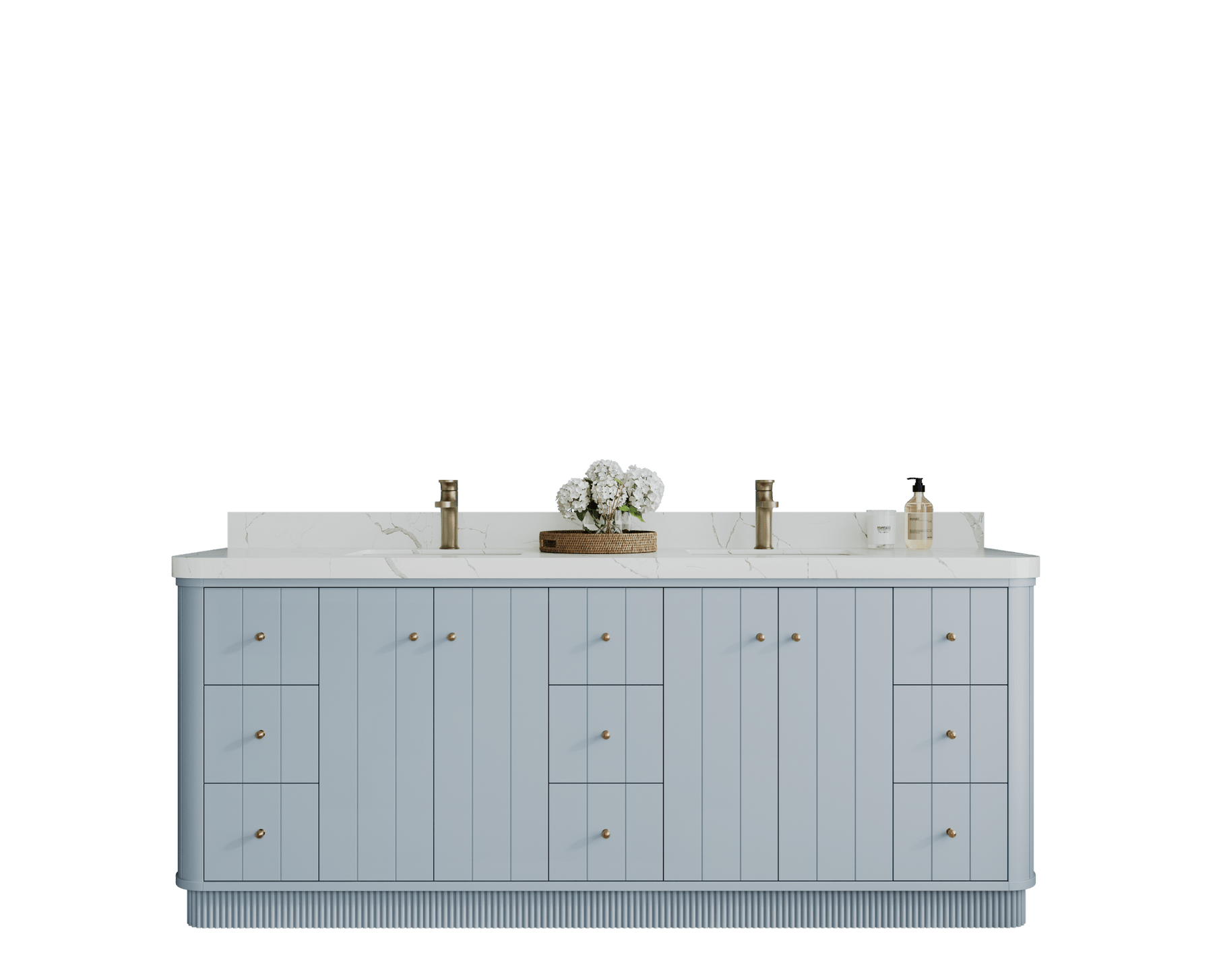 Meet Houston, the modern showpiece of the Houston Collection, crafted to bring warmth, texture, and refinement to any bathroom. A sculpted, softly rounded silhouette flows from the curved ends to the smooth, radiused countertop corners, while a fluted front meets a reeded kick plate for subtle texture and shadow play. The result is a clean, contemporary vanity that feels tailored and timeless — designed for bathrooms that want the look of luxury without harsh lines.