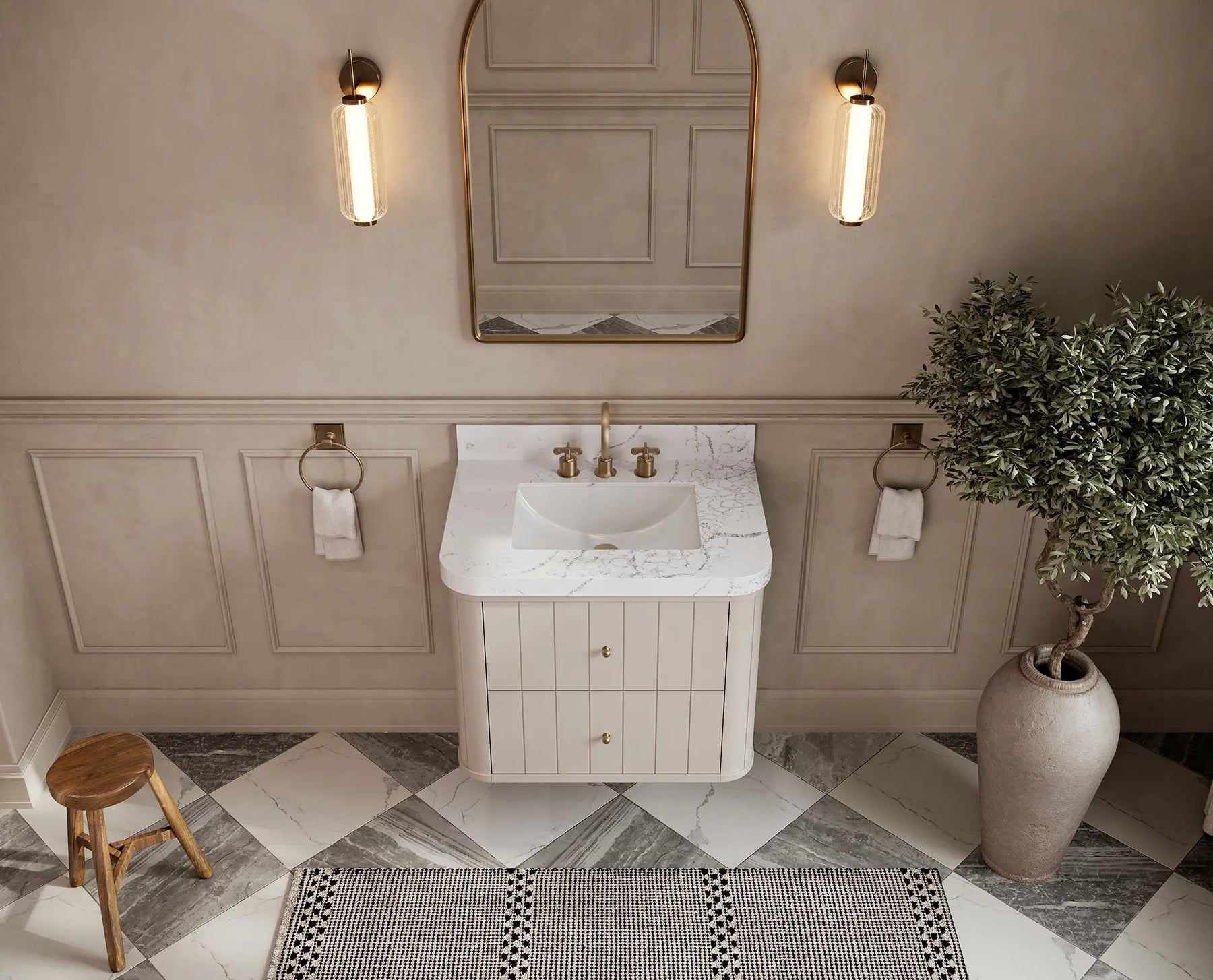 Fluted front detailing – vertical grooves add depth and visual rhythm without overwhelming the space.