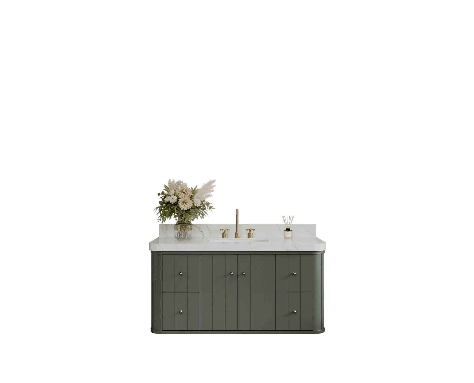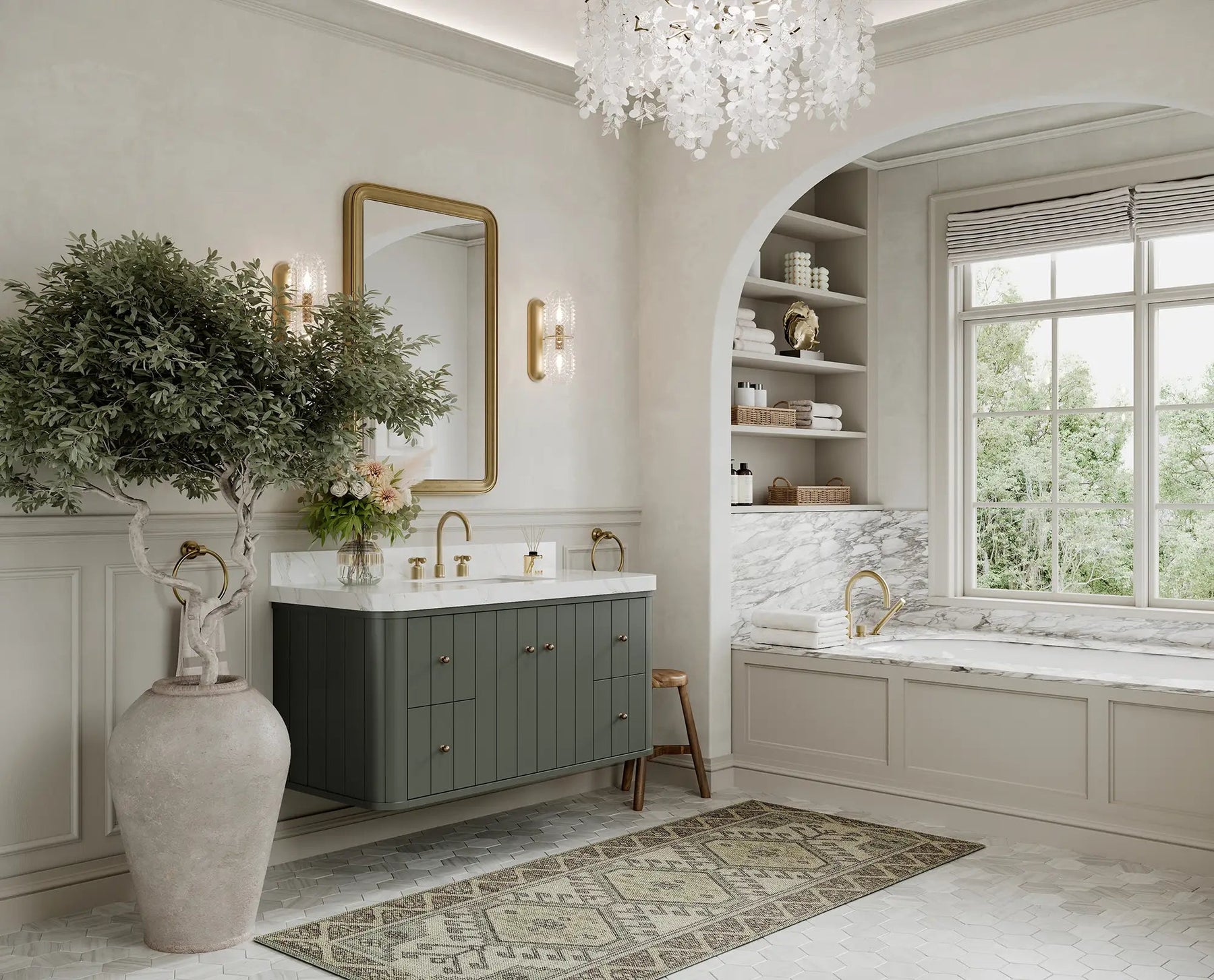 Vanity Countertops options: For Calacatta Laza Quartz, Calacatta Gold Quartz, Empira White Quartz, Pure White Quartz, Palissandro Quartz, Calacatta Nuvo Quartz, Carrara Marble, Carrara Quartz, Calacatta Sienna Quartz, Terrazzo Arctic Breeze, Terrazzo Golden Dusk we have Rounded - Edge option.