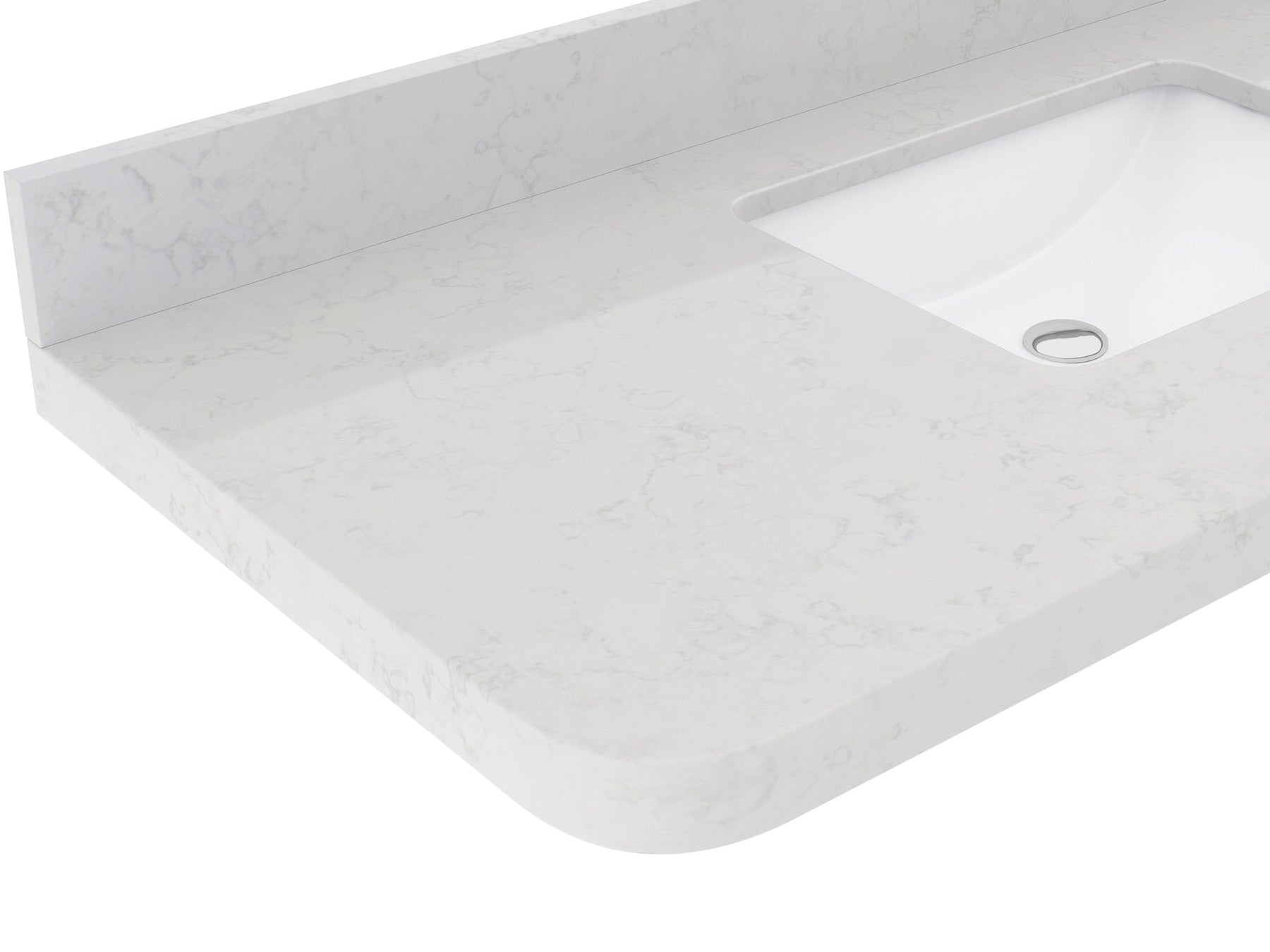 Vanity Countertops options: For Calacatta Laza Quartz, Calacatta Gold Quartz, Empira White Quartz, Pure White Quartz, Palissandro Quartz, Calacatta Nuvo Quartz, Carrara Marble, Carrara Quartz, Calacatta Sienna Quartz, Terrazzo Arctic Breeze, Terrazzo Golden Dusk we have Rounded - Edge option.