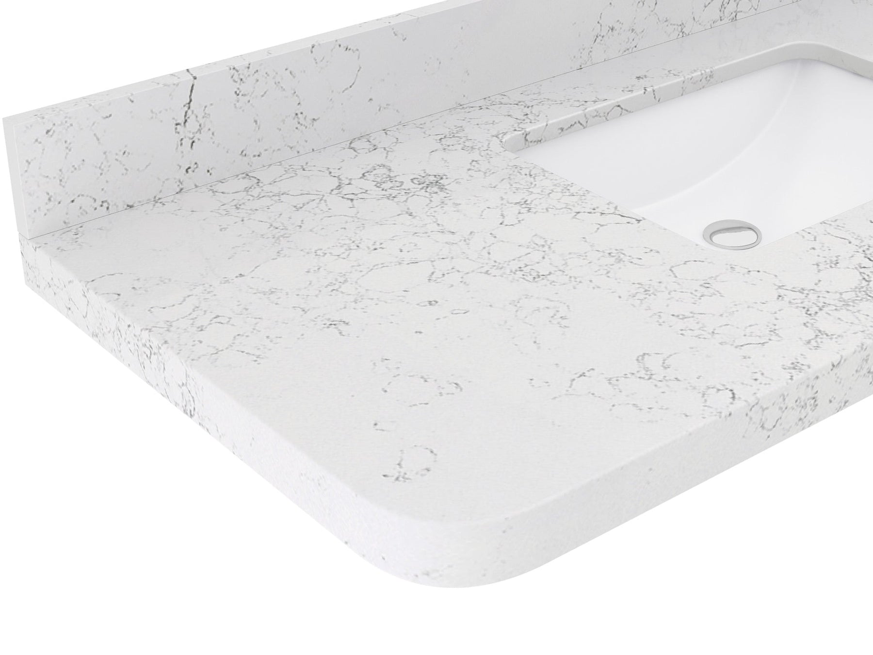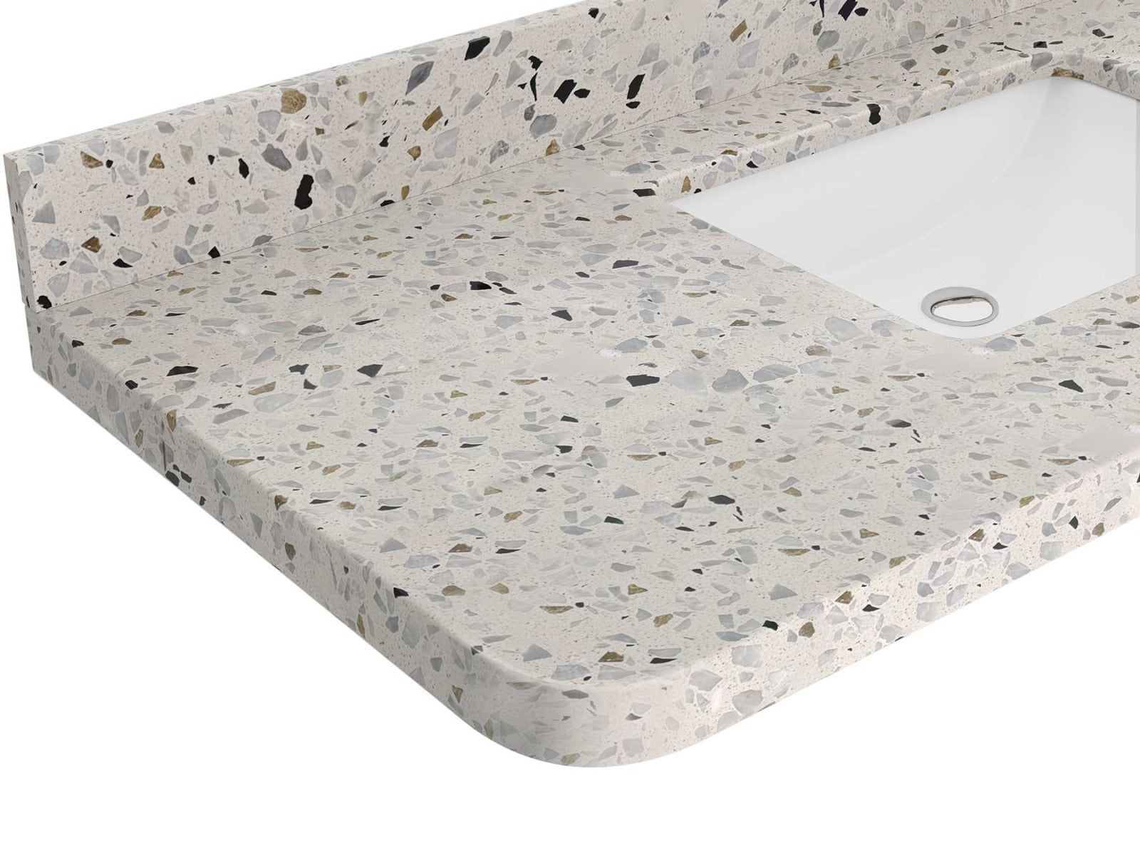 Vanity Countertops options: For Calacatta Laza Quartz, Calacatta Gold Quartz, Empira White Quartz, Pure White Quartz, Palissandro Quartz, Calacatta Nuvo Quartz, Carrara Marble, Carrara Quartz, Calacatta Sienna Quartz, Terrazzo Arctic Breeze, Terrazzo Golden Dusk we have Rounded - Edge option.