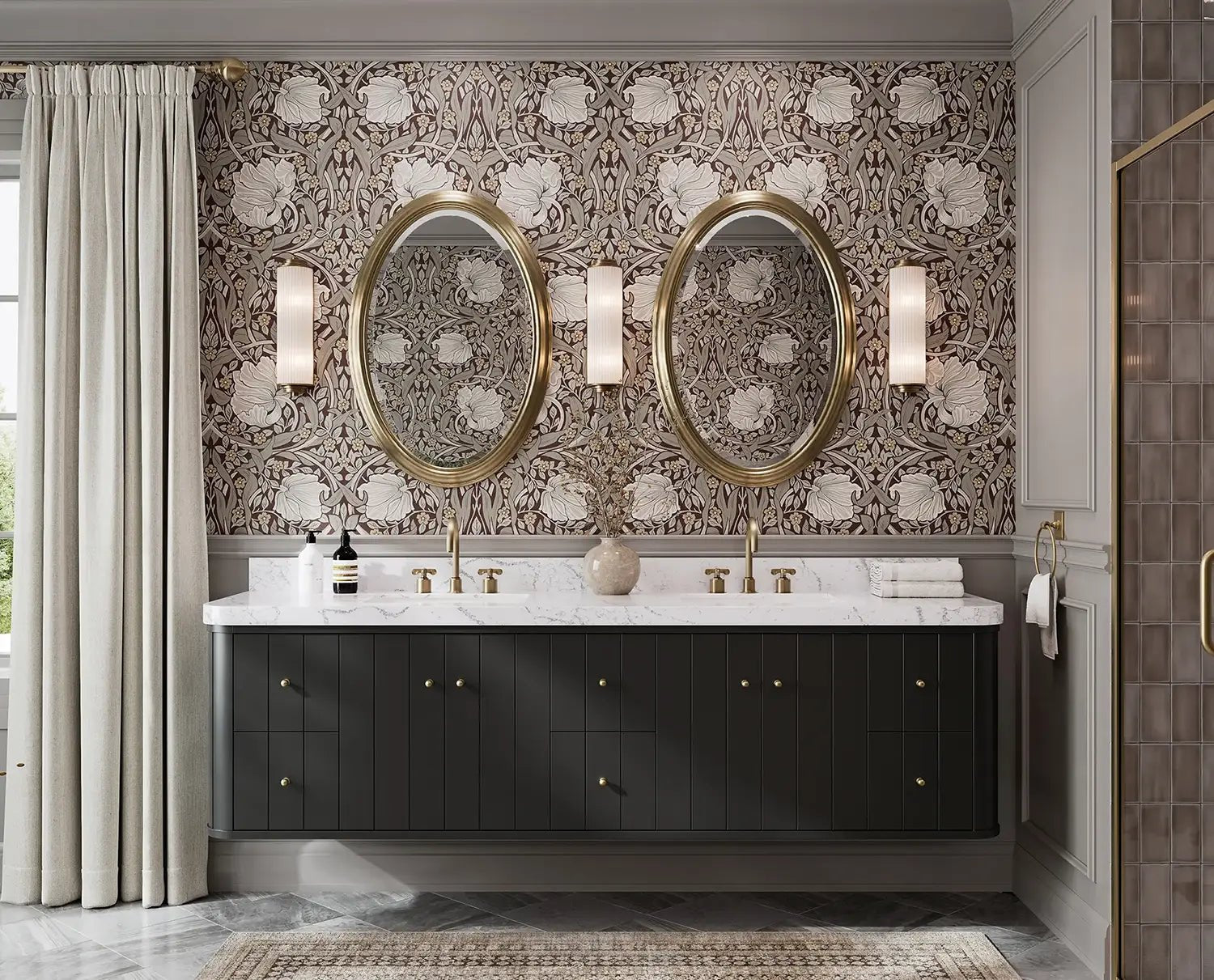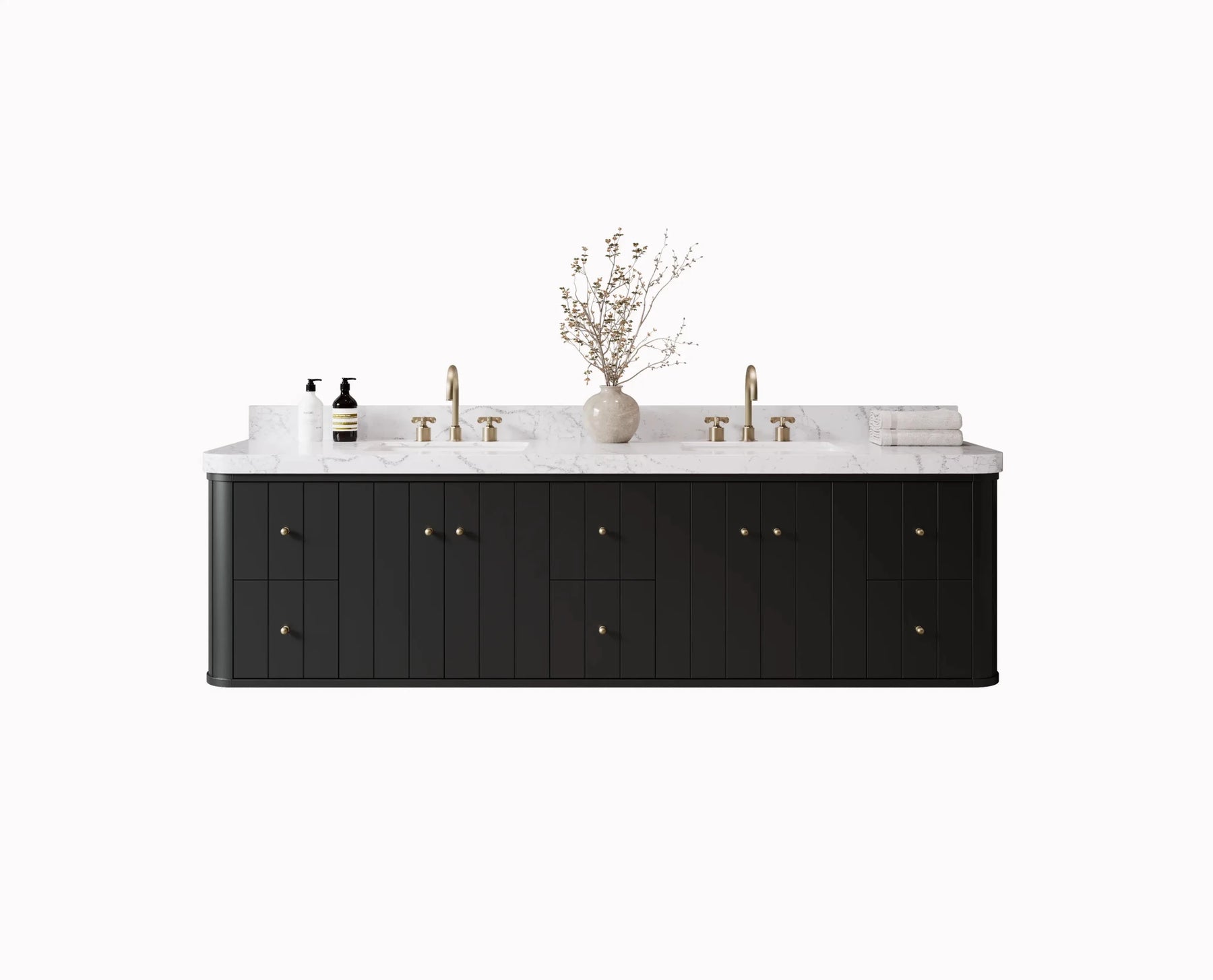 Vanity Countertops options: For Calacatta Laza Quartz, Calacatta Gold Quartz, Empira White Quartz, Pure White Quartz, Palissandro Quartz, Calacatta Nuvo Quartz, Carrara Marble, Carrara Quartz, Calacatta Sienna Quartz, Terrazzo Arctic Breeze, Terrazzo Golden Dusk we have Rounded - Edge option.