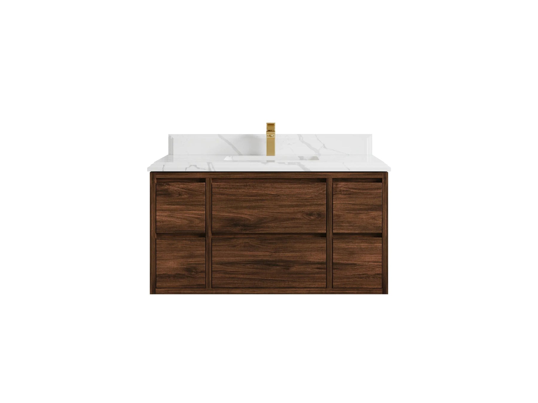 Madison Floating Teak 42 in. W x 22 in. D Single Sink Bathroom Vanity | Dark Walnut Teak