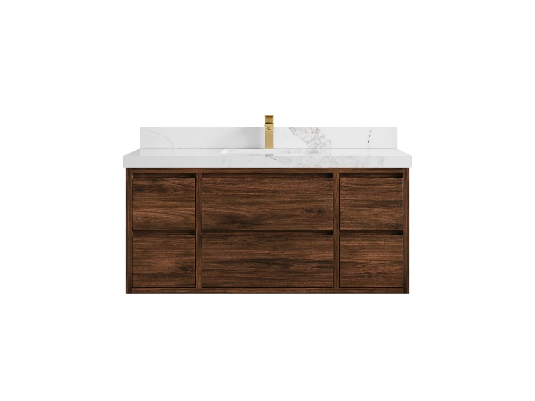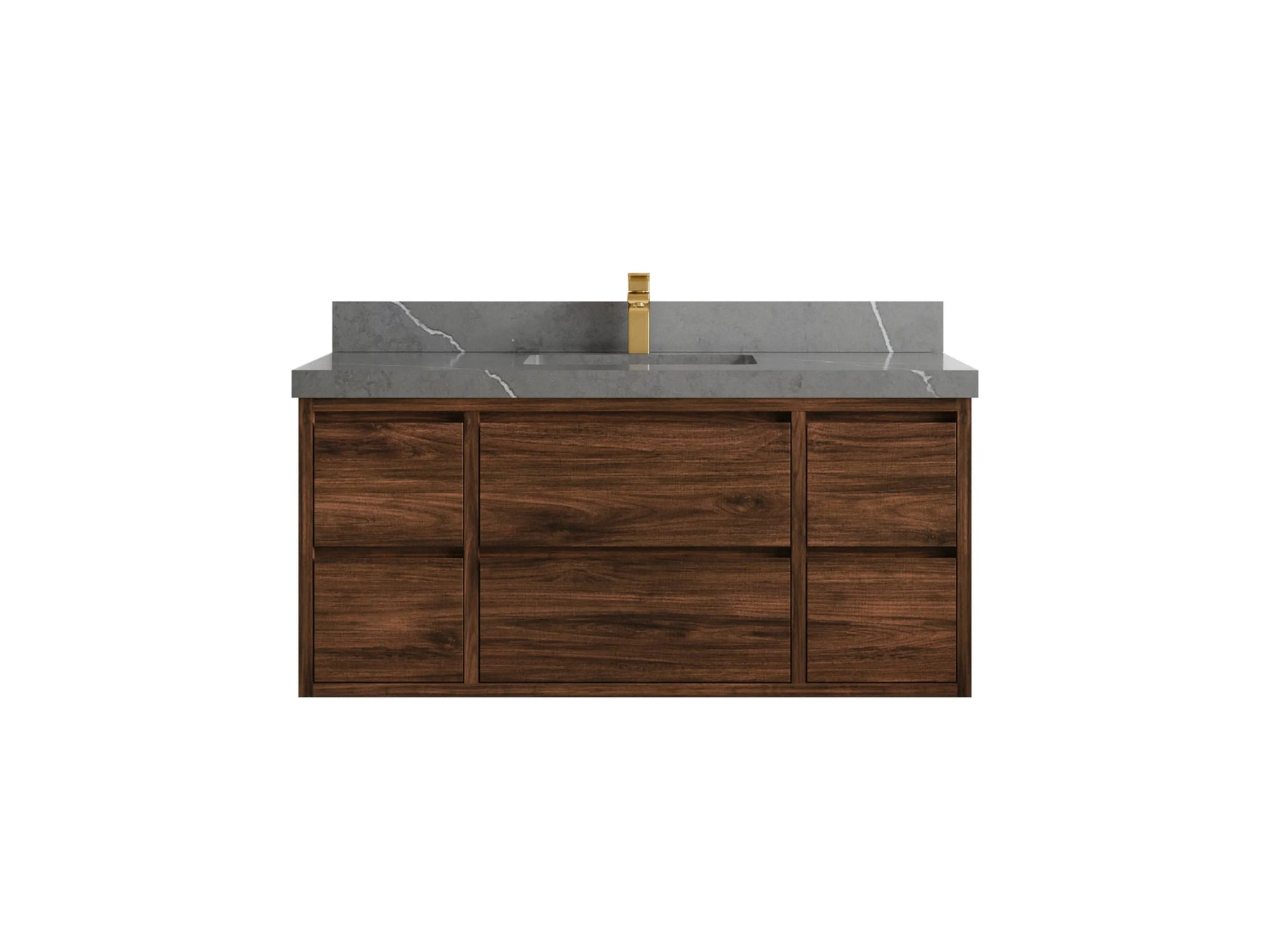 Madison Floating Teak 48 in. W x 22 in. D Single Sink Bathroom Vanity | Dark Walnut Teak