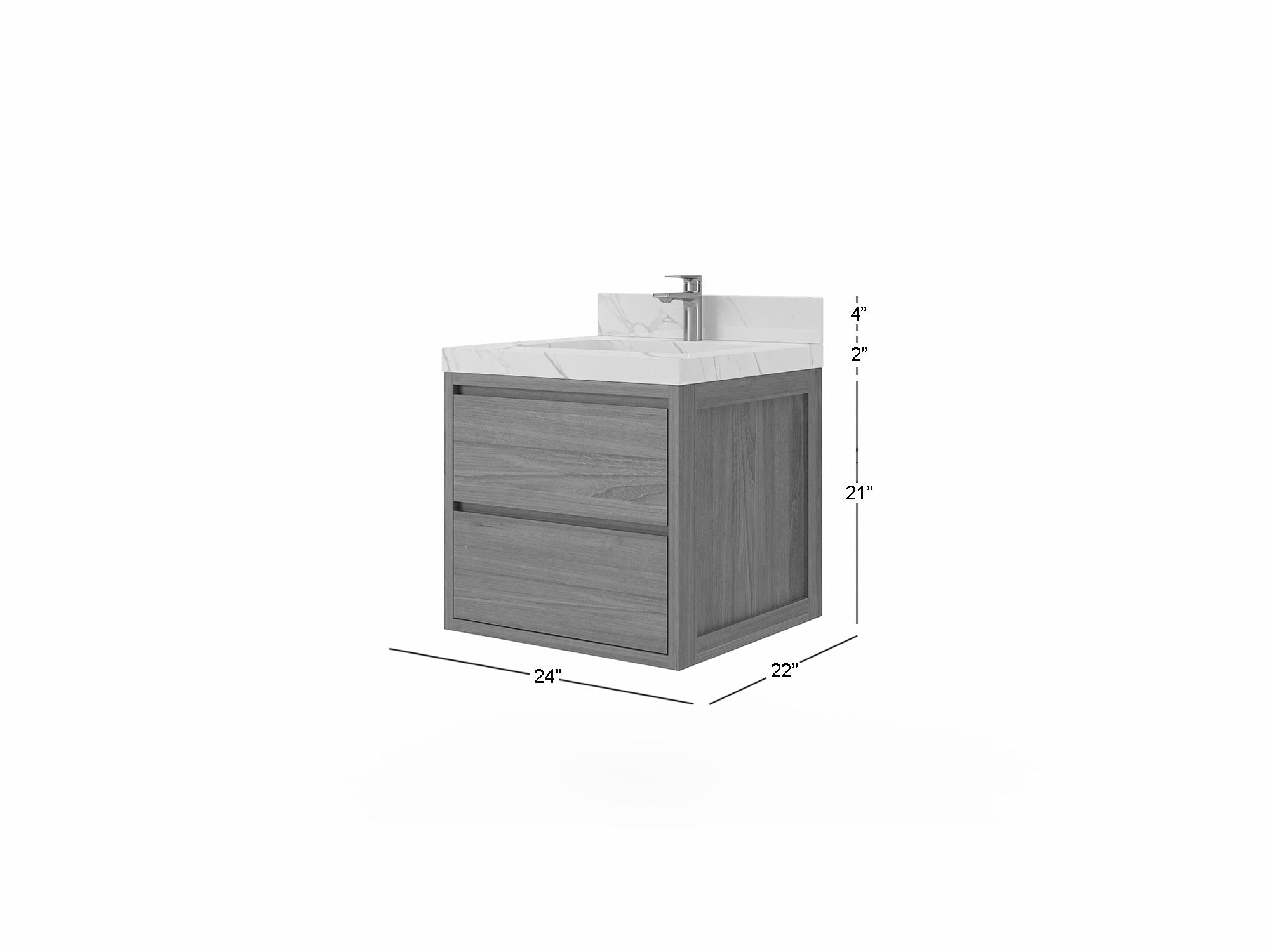 Madison Floating Teak 24 in. W x 22 in. D Single Sink Bathroom Vanity in Dark Natural with 2 in Venatino Quartz Countertop