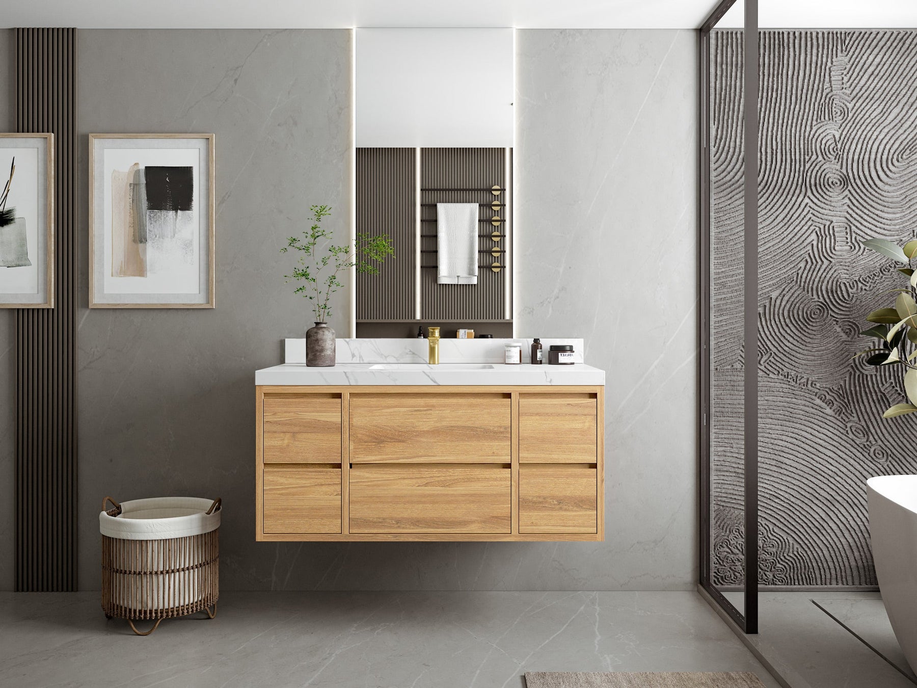 Madison Floating Teak 48 in. W x 22 in. D Single Sink Bathroom Vanity - Willow Bath and Vanity