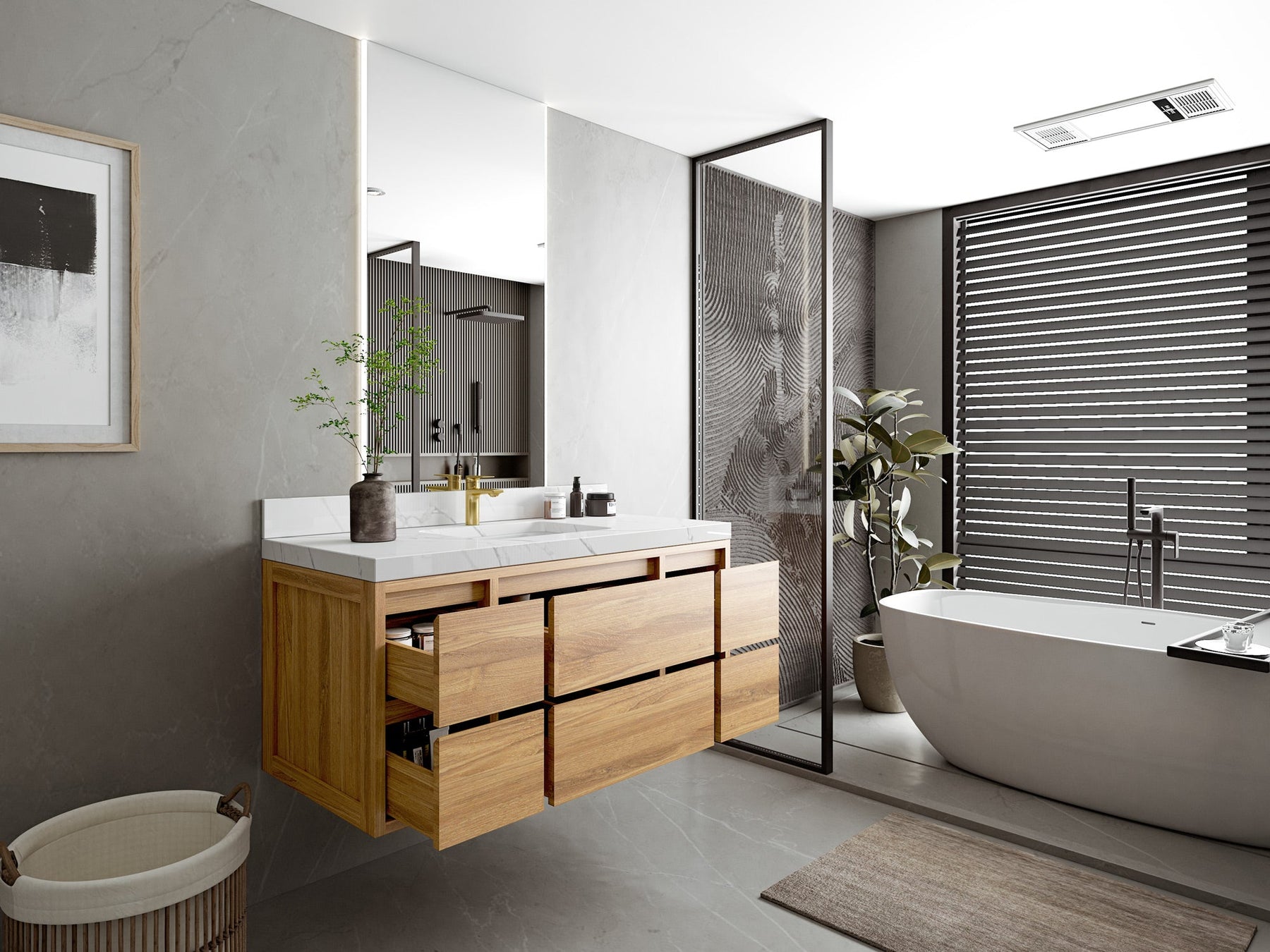 3. Soft-Close Hardware: Equipped with state-of-the-art soft-close mechanisms, every drawer and cabinet door ensures a gentle and silent closure, enhancing user experience and prolonging the life of the vanity.