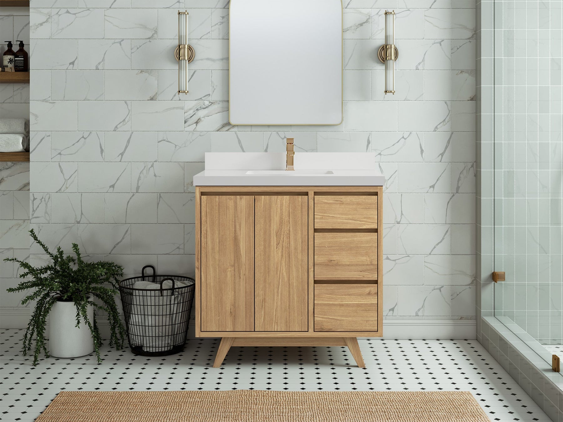 Santa Monica Teak Wood 36 in. W x 22 in. D Right Offset Sink Bathroom Vanity - Willow Bath and Vanity