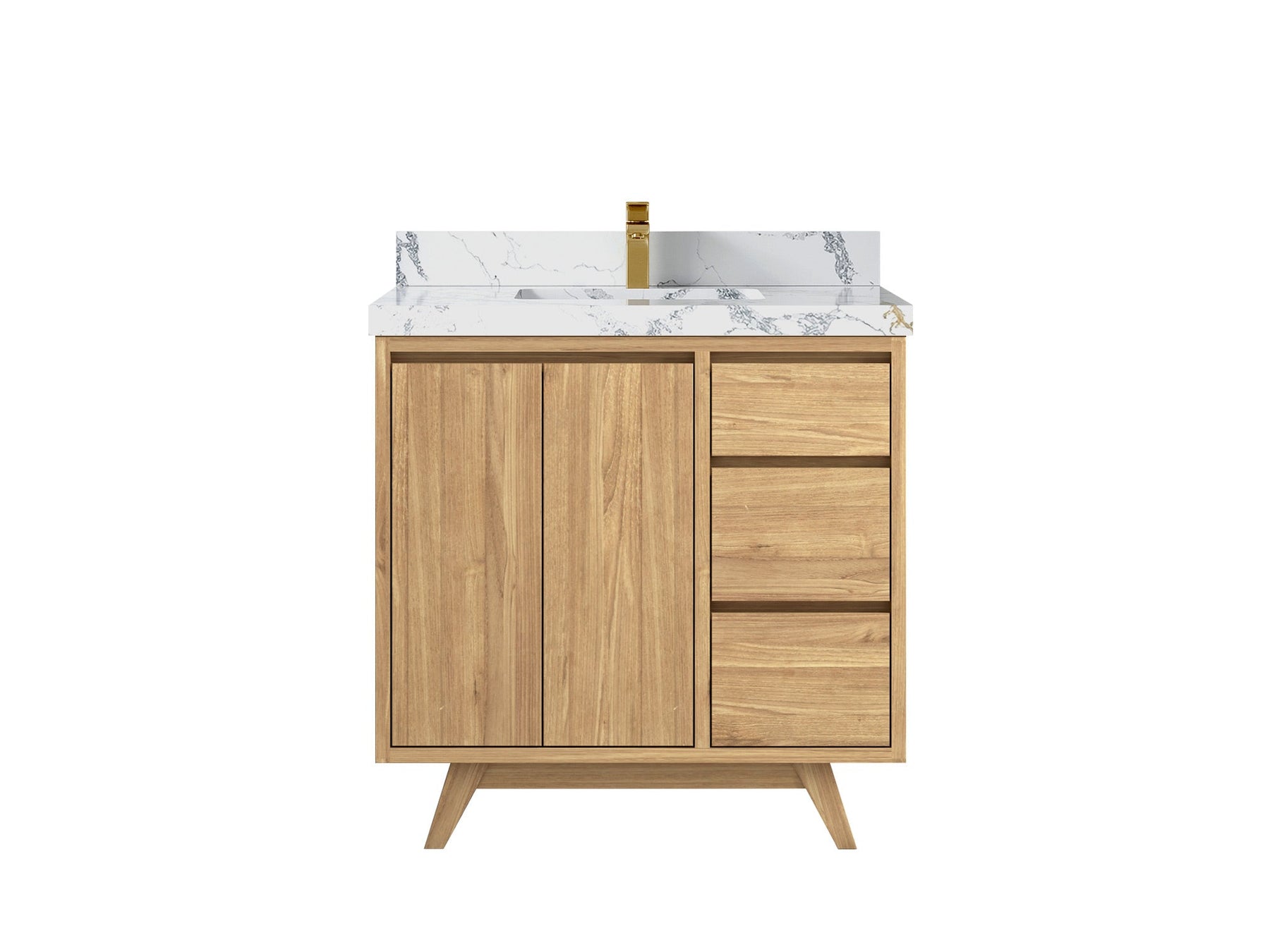 Madison Teak 36 in. W x 22 in. D Center Sink Bathroom Vanity in Light Natural with 2 in Calacatta Nuvo Quartz Countertop