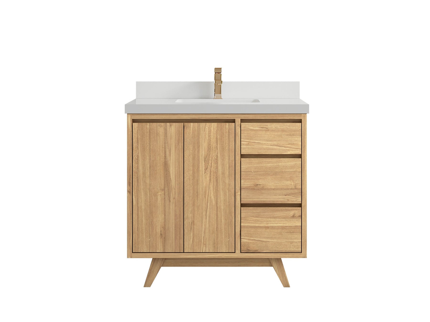 Madison Teak 36 in. W x 22 in. D Center Sink Bathroom Vanity in Light Natural with 2 in Empira White Quartz Countertop