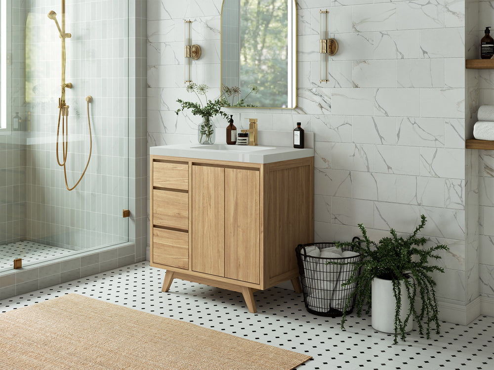 Madison Teak Wood 36" W x 22" D Center Sink Vanity – Perfect for a Modern Bathroom | Light Natural Teak