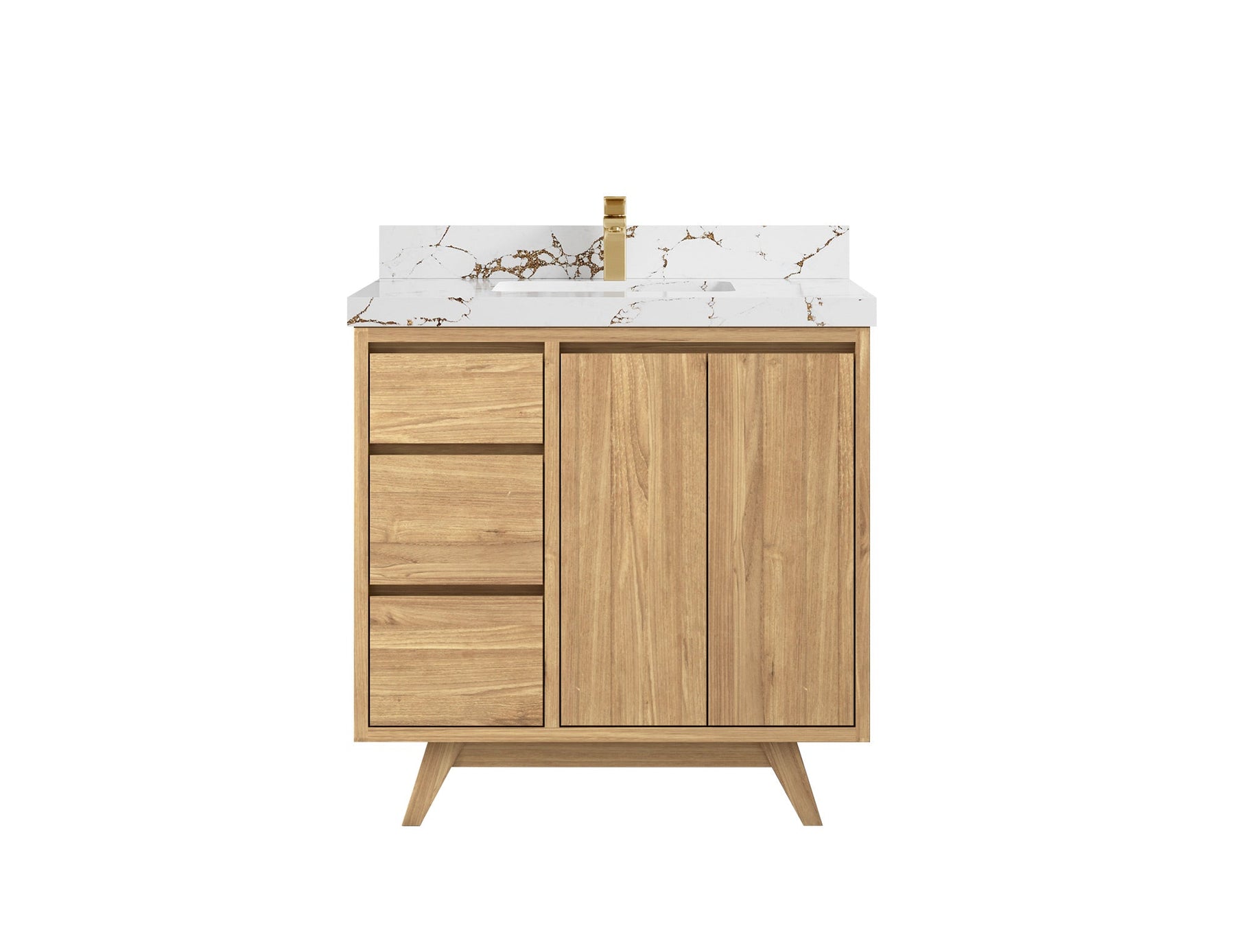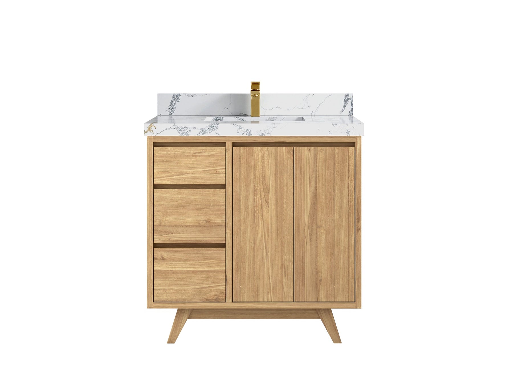 Madison Teak 36 in. W x 22 in. D Center Sink Bathroom Vanity in Light Natural with 2 in Calacatta Nuvo Quartz Countertop