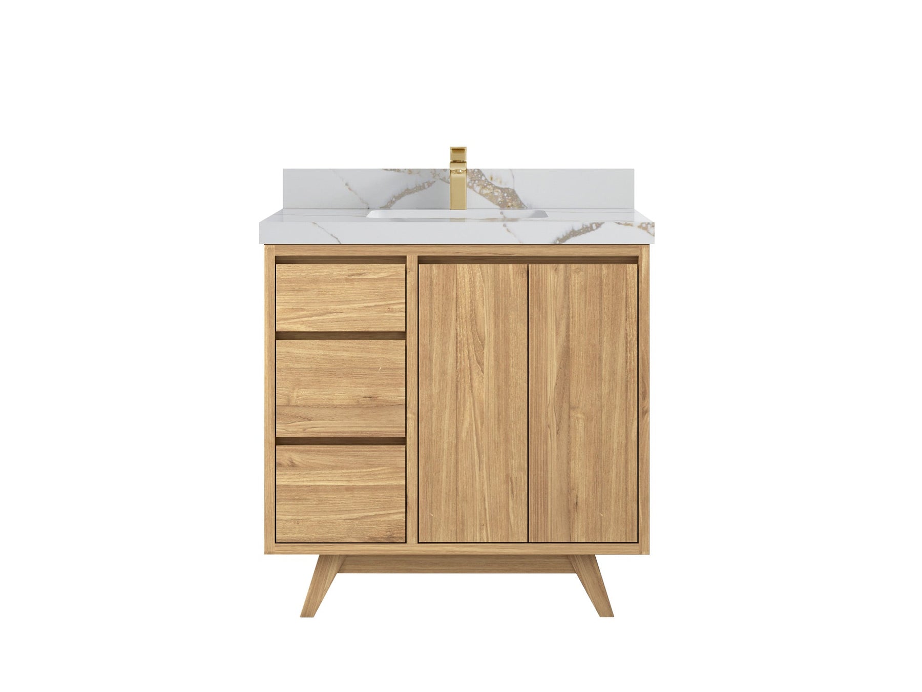 Madison Teak 36 in. W x 22 in. D Center Sink Bathroom Vanity in Light Natural with 1.5 in Calacatta Laza Quartz Countertop