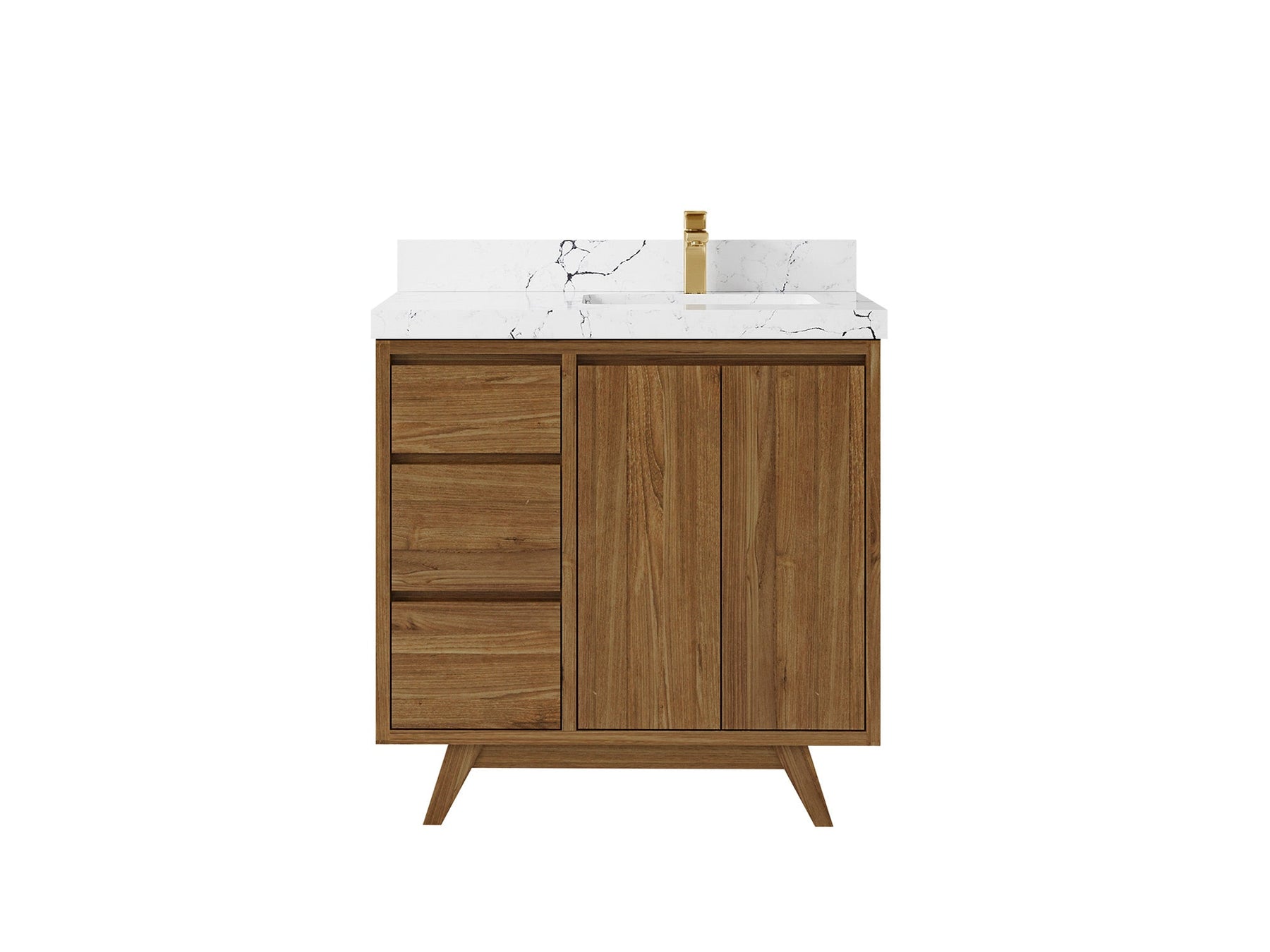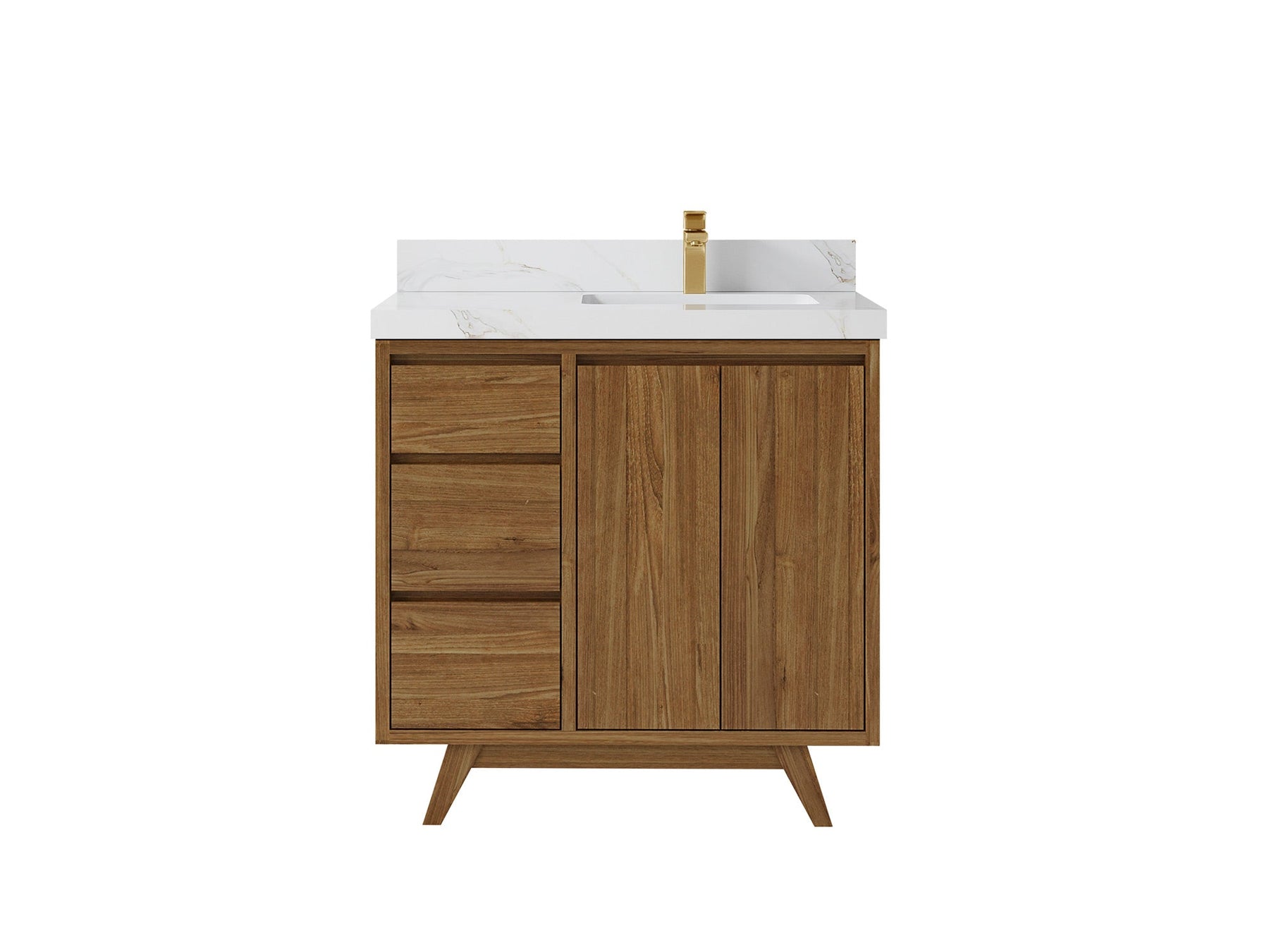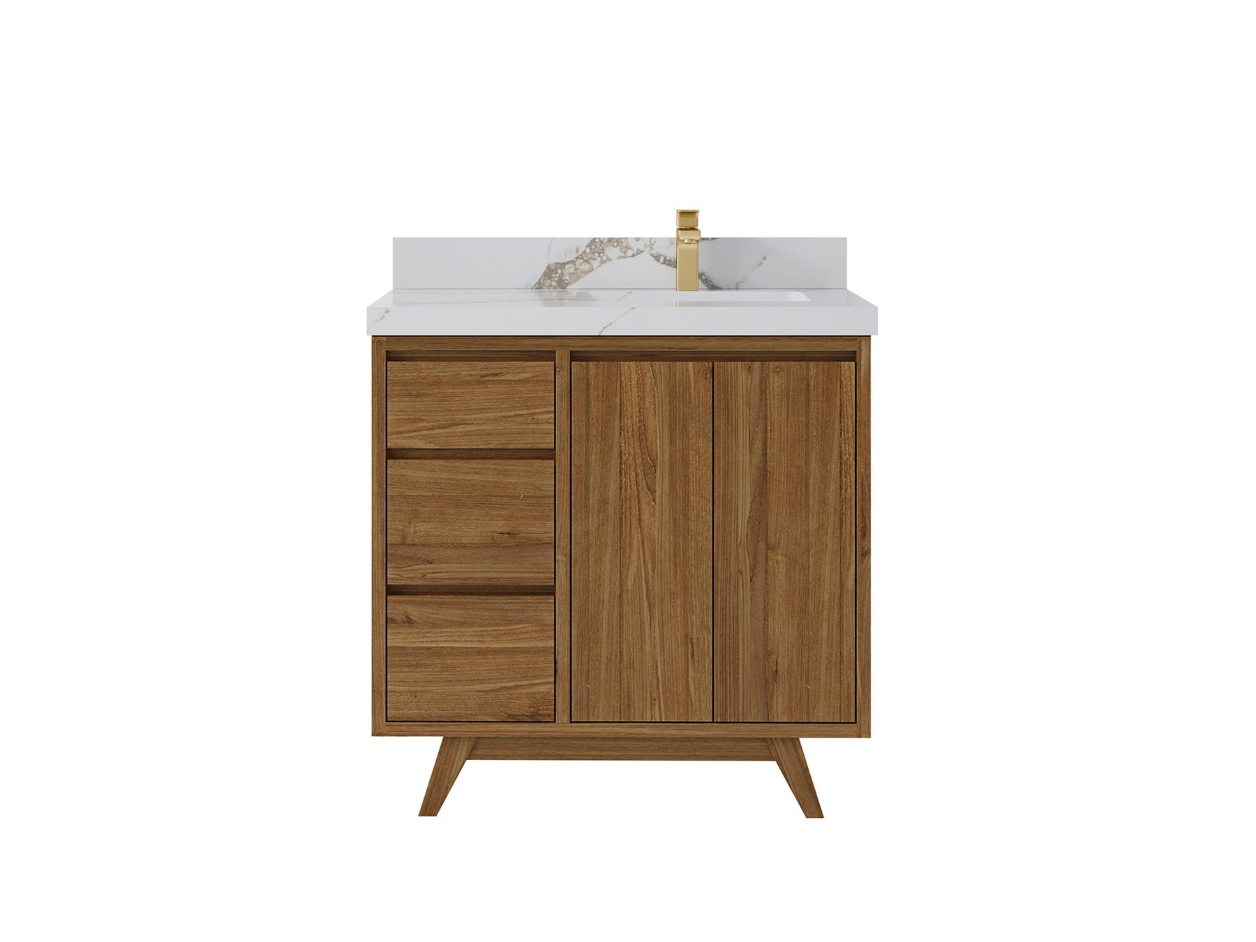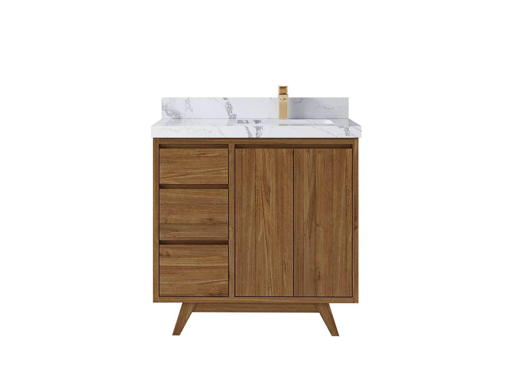 Madison Teak 36 in. W x 22 in. D Right Offset Sink Bathroom Vanity in Dark Natural with 1.5 in Calacatta Laza Quartz Countertop