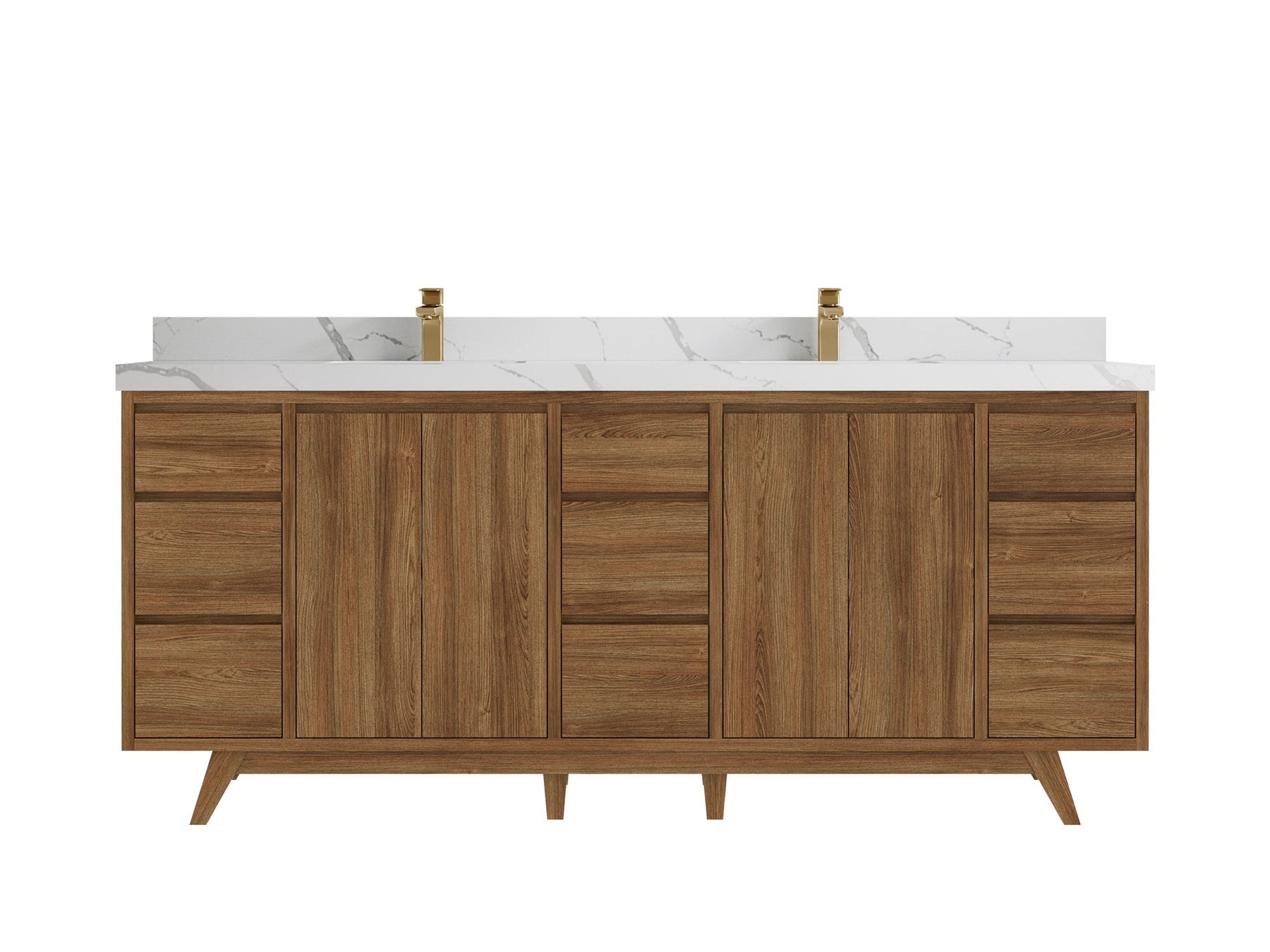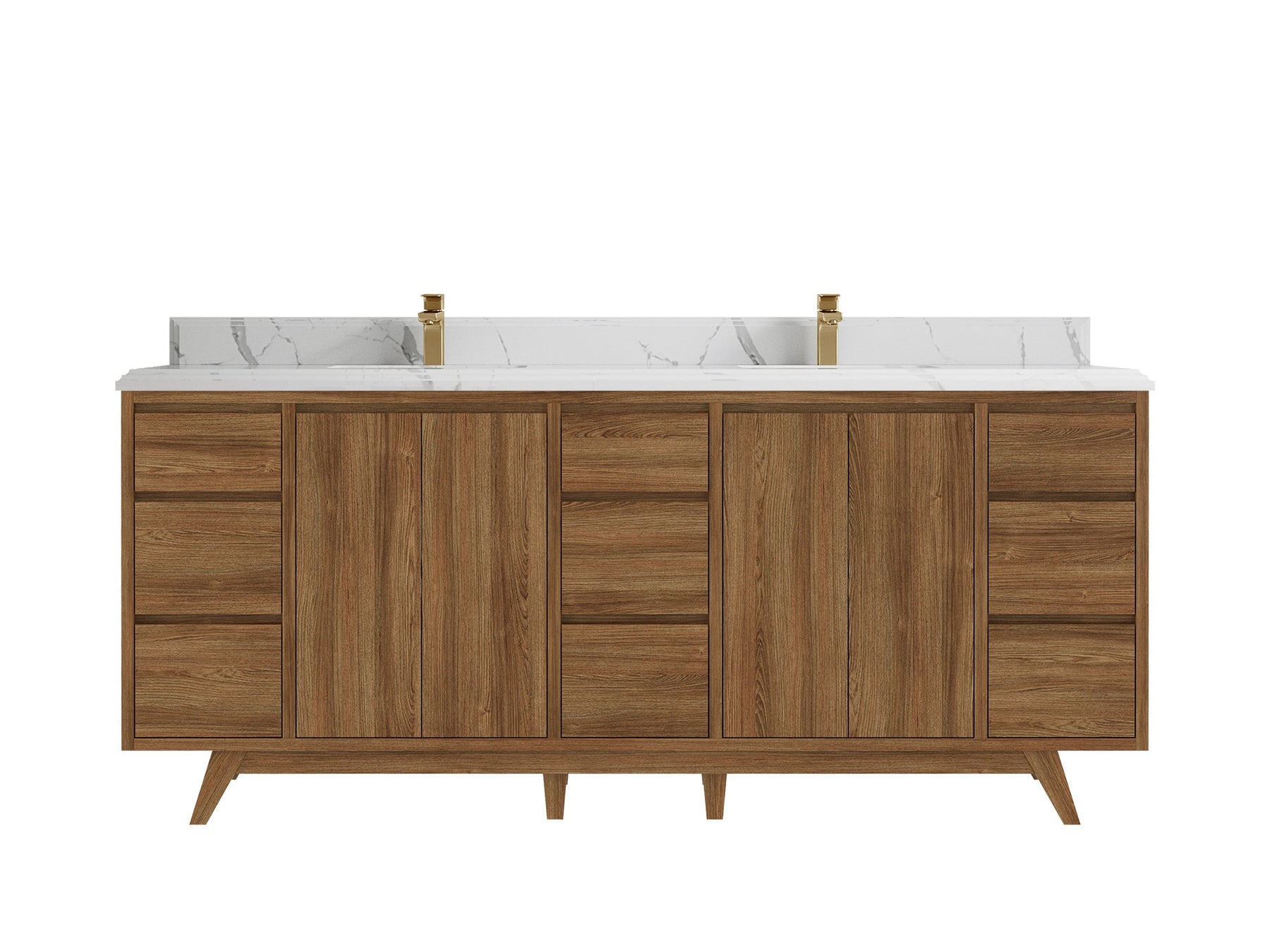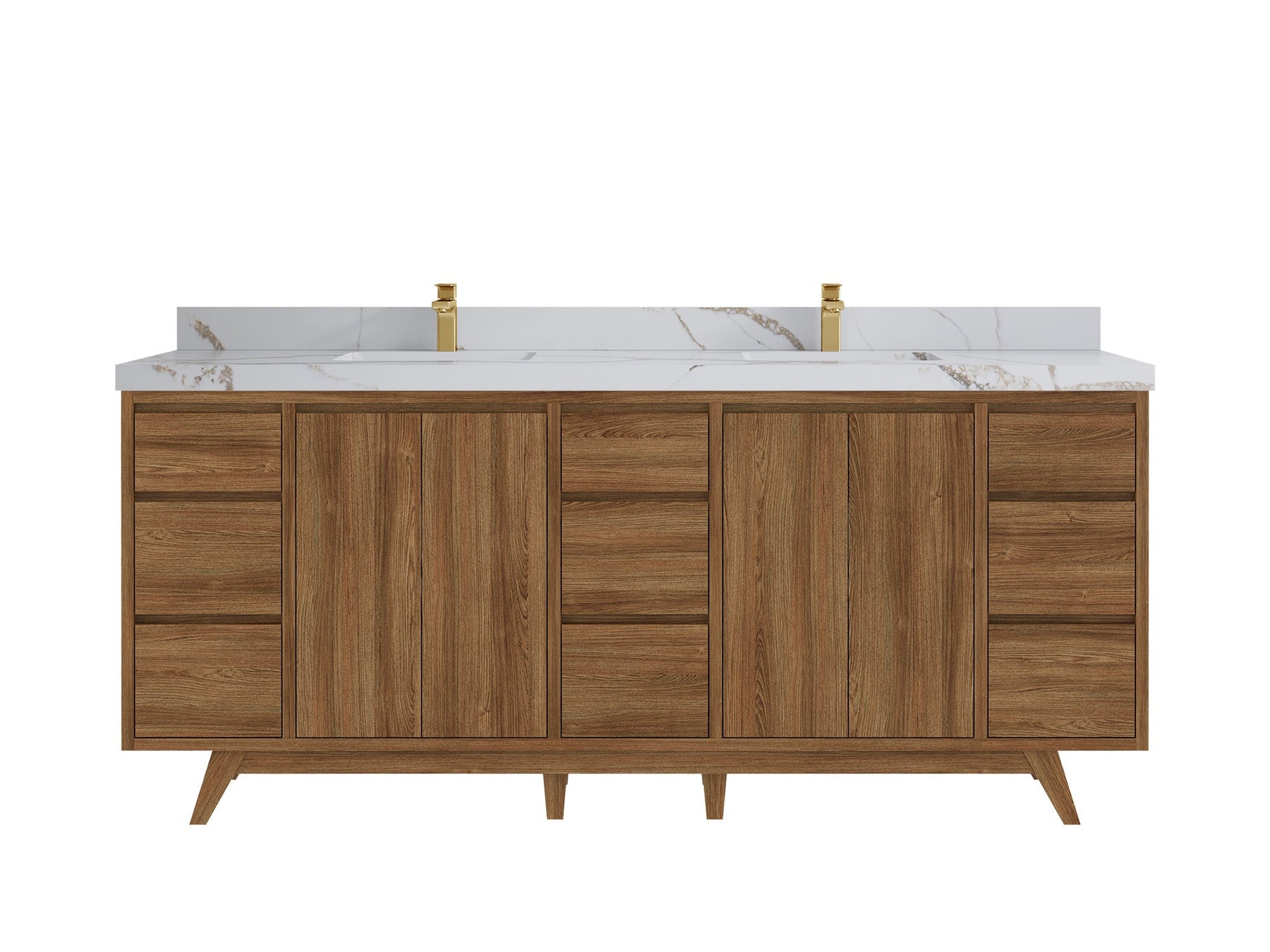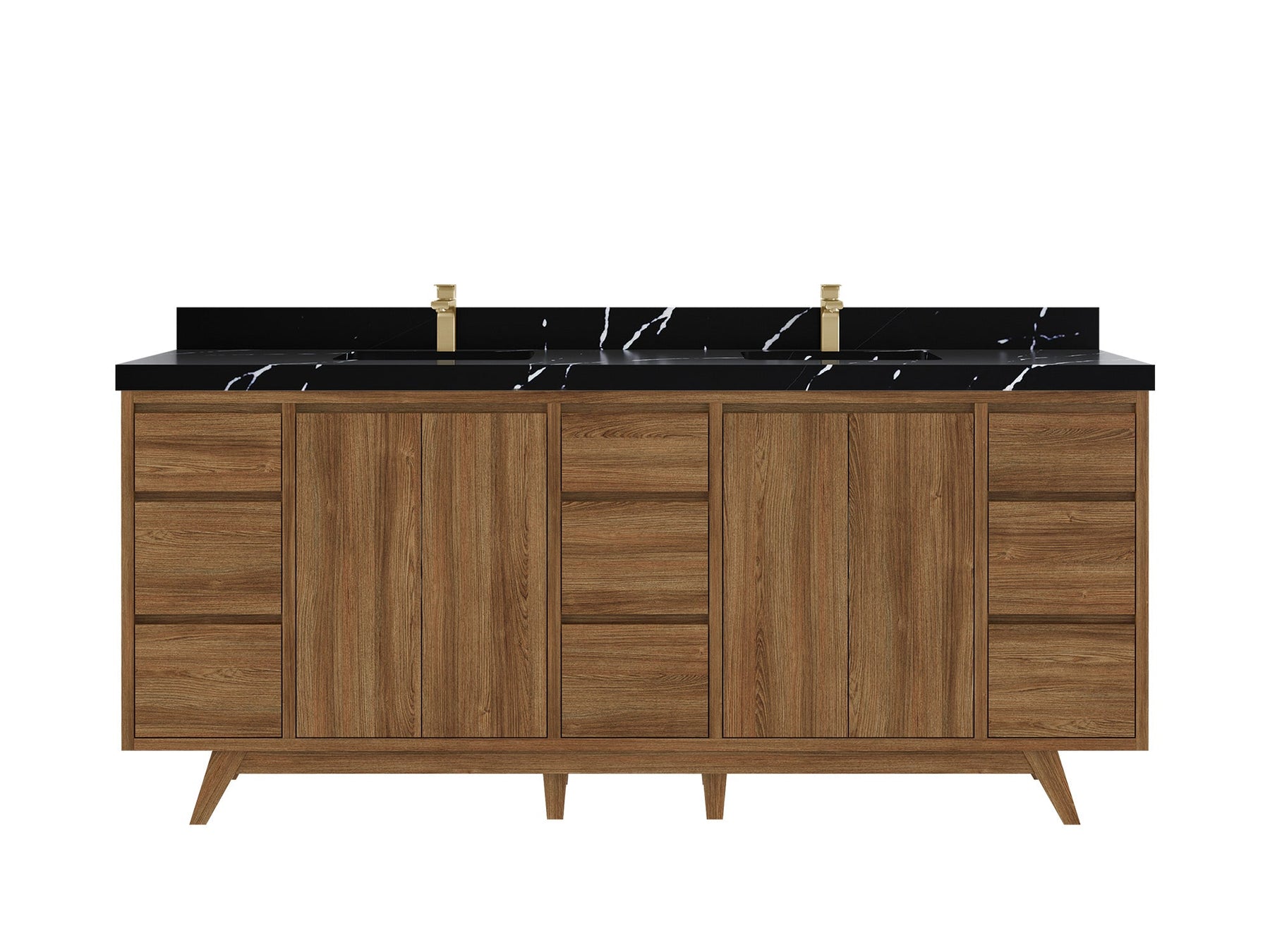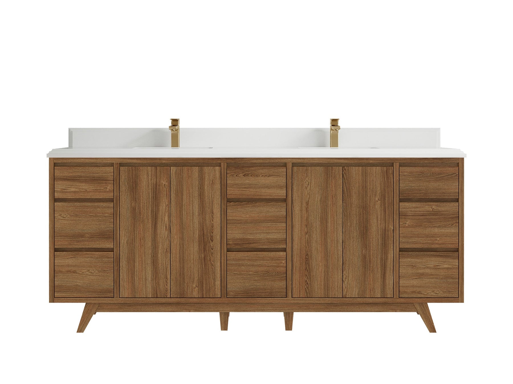 Madison Teak Wood 80 in. W x 22 in. D Double Sink Bathroom Vanity | Dark Natural Teak