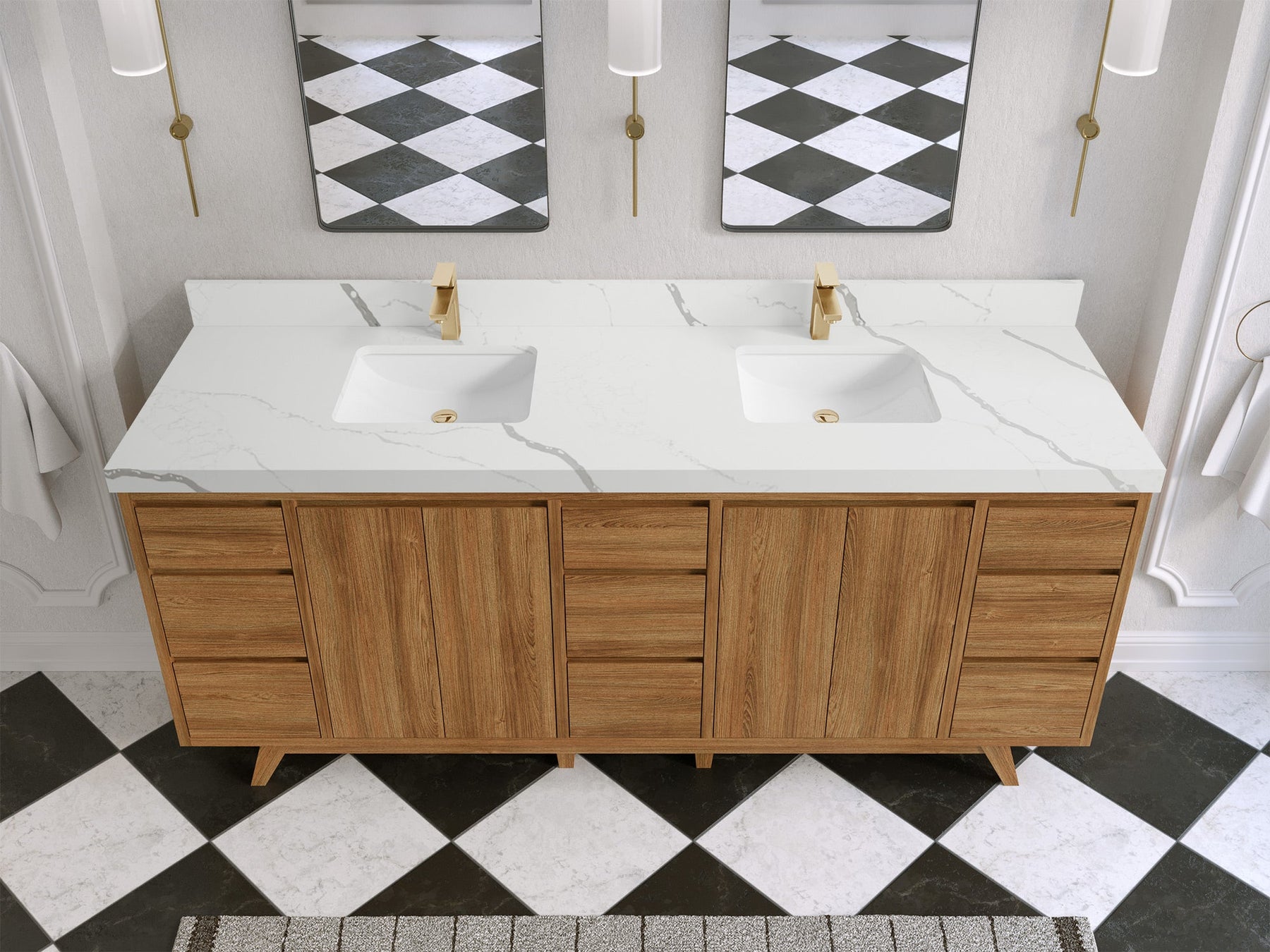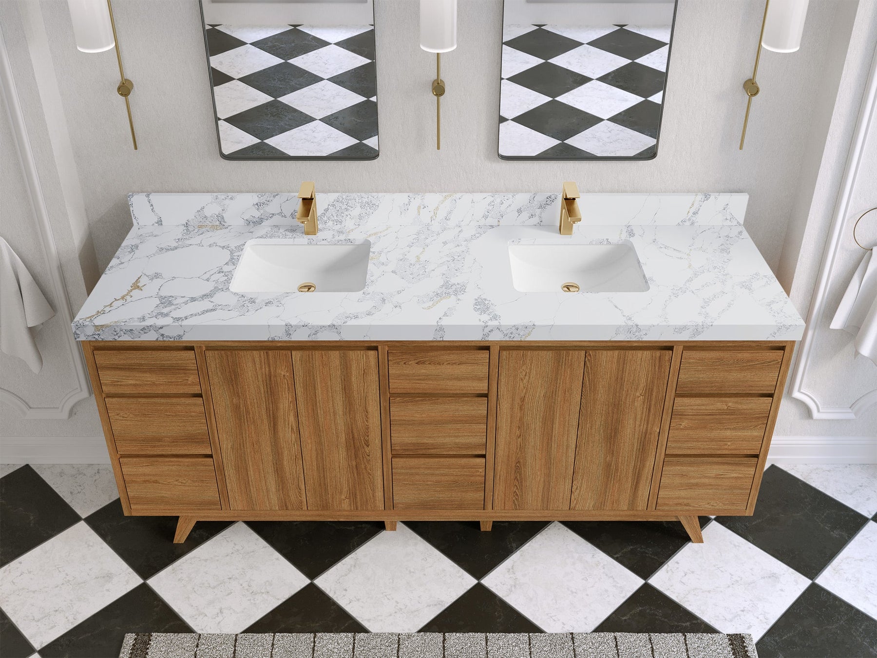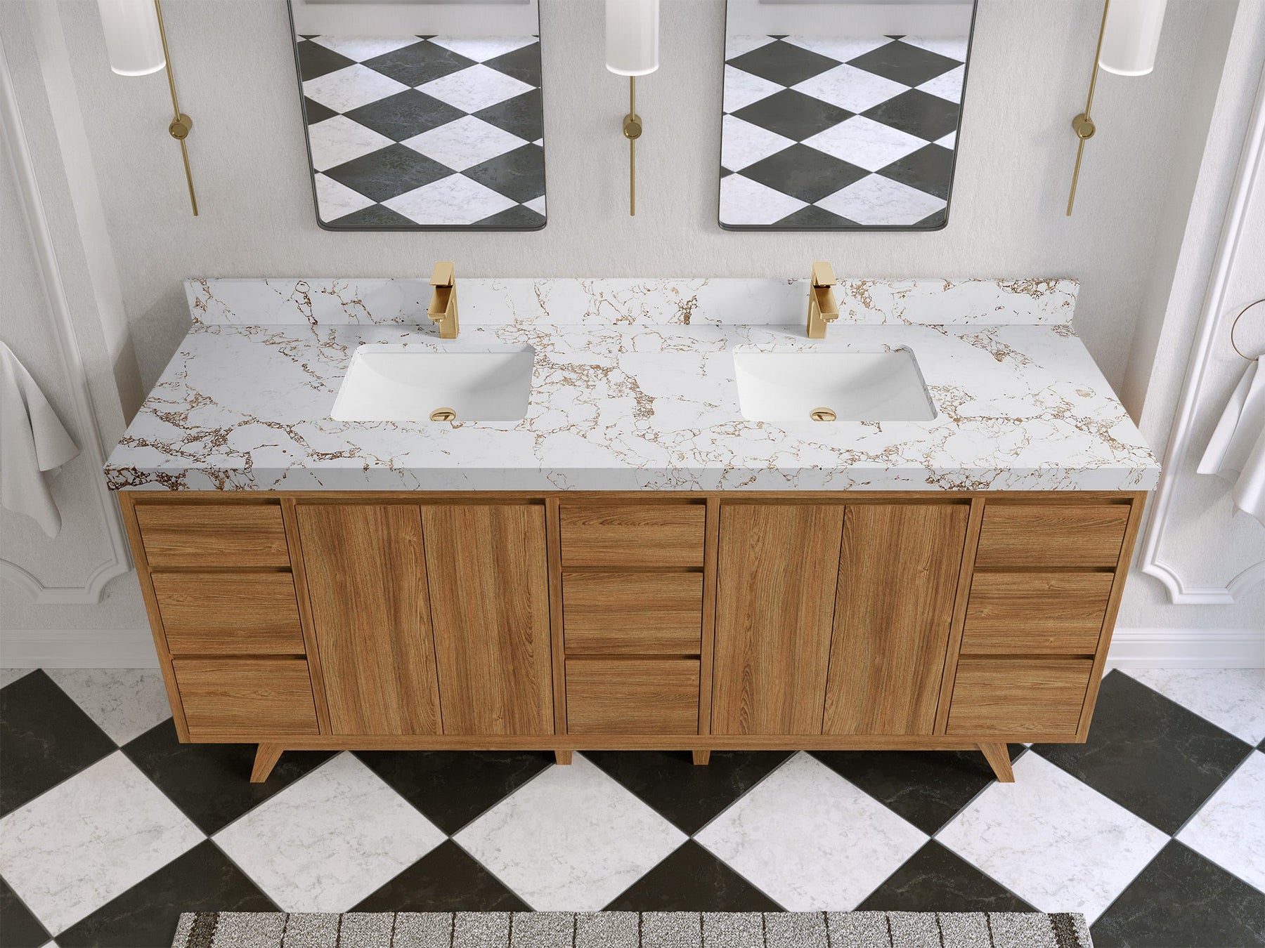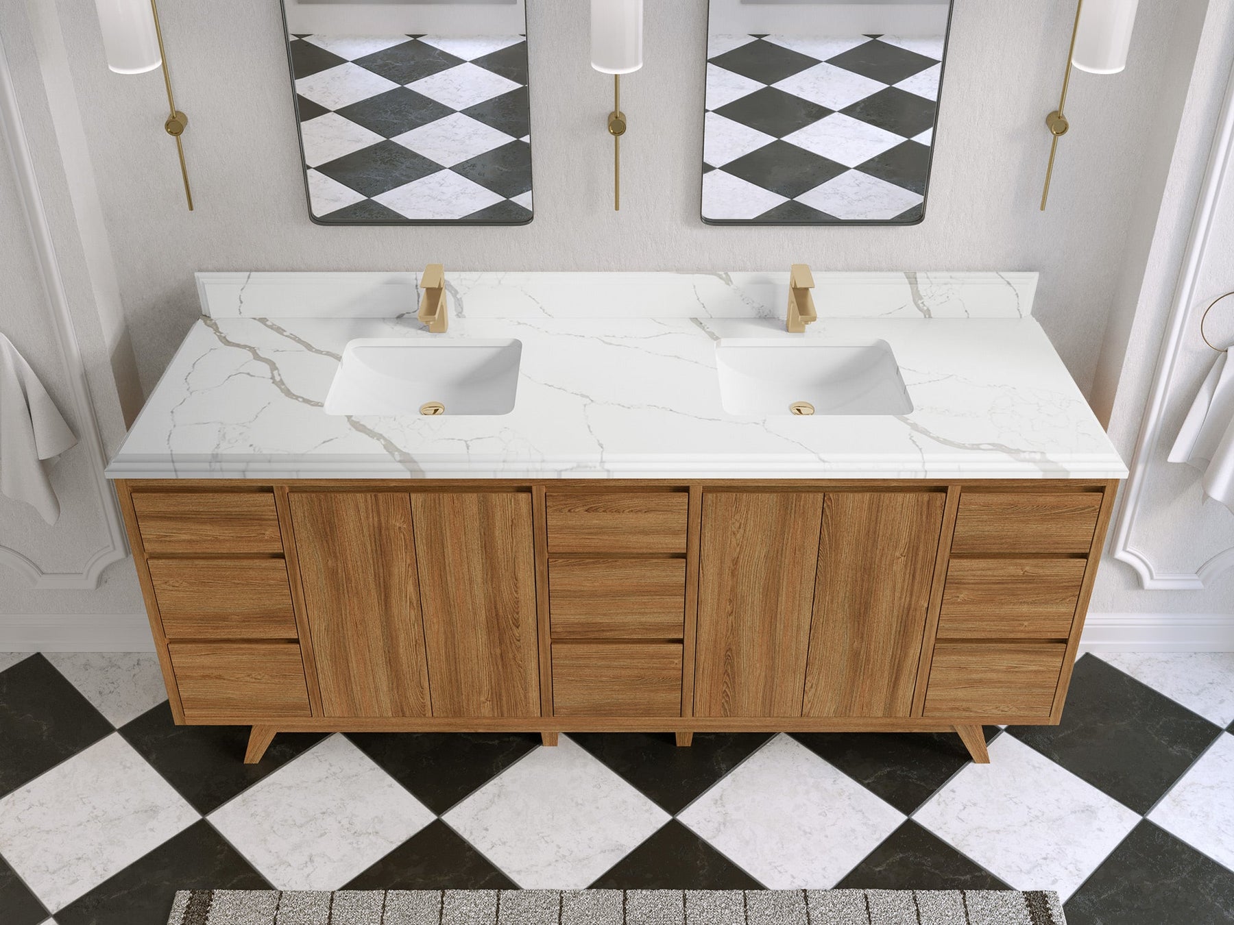 Vanity Countertops options: For Calacatta Laza Quartz, Empira White Quartz, Pure White Quartz we have 2 options Straight-Mitered Edge & Double Cove Edge, For Calacatta Black Quartz, Calacatta Gold Quartz, Calacatta Nuvo Quartz, Carrara Marble, Carrara Quartz, Pearl Light Gray Quartz, Piatra Gray Quartz, Venatino Quartz, and Light Concrete Gray Quartz we only have Straight - Mitered Edge option.