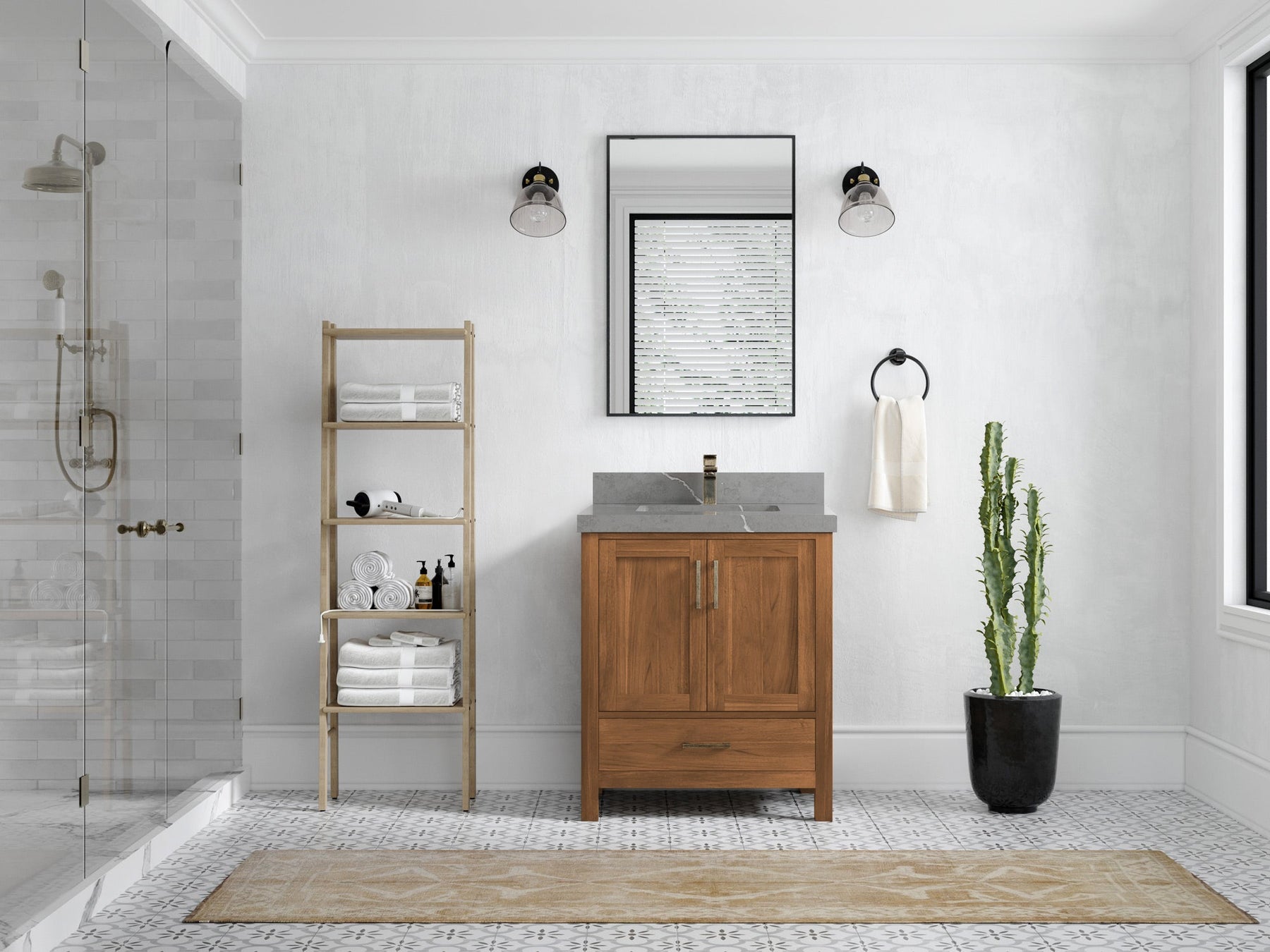 Malibu Teak Wood 30 in. W x 22 in. D Single Sink Bathroom Vanity | Golden Teak