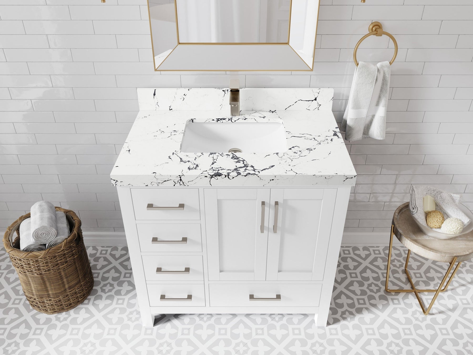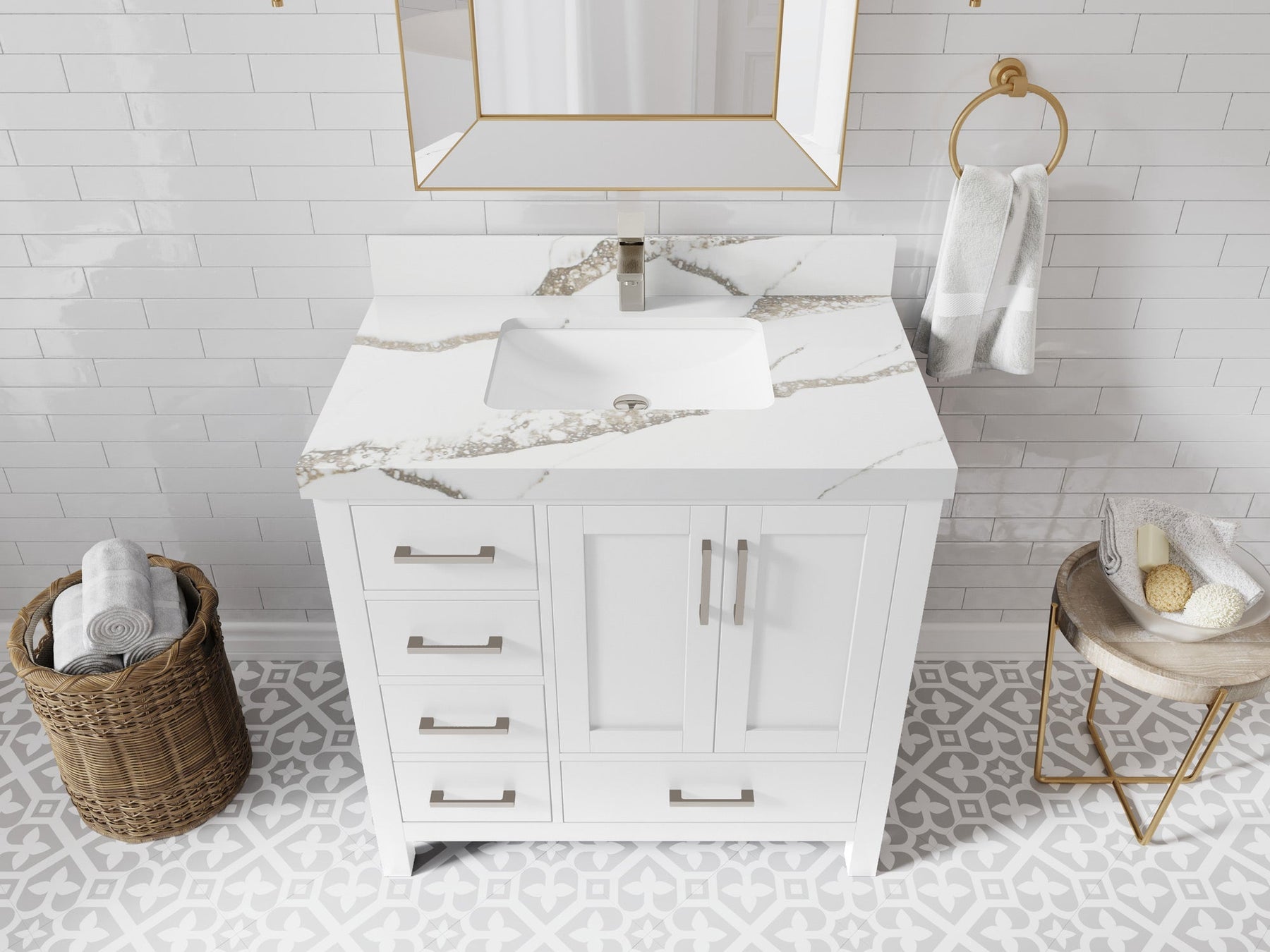 Malibu 36 in. W x 22 in. D Bathroom Vanity Center Sink 2 | White