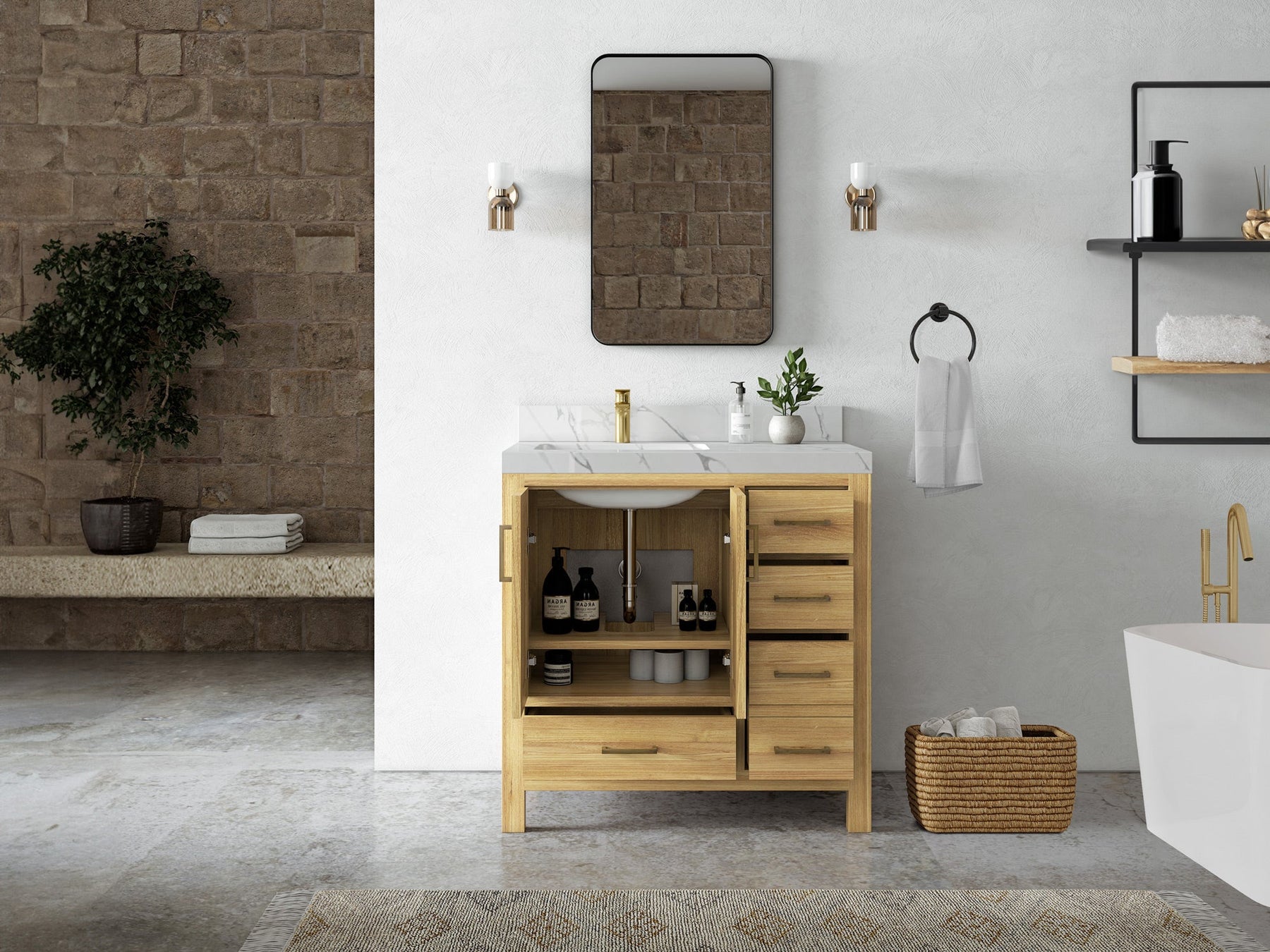 Pairing modern functionality with enduring beauty, Willow Bath & Vanity offers one of the largest selections of bathroom vanities in the U.S.—over 55,000 variations to choose from. Each piece is crafted from premium woods like birch, white oak, teak, and mango, and finished with elegant quartz, marble, or terrazzo countertops.