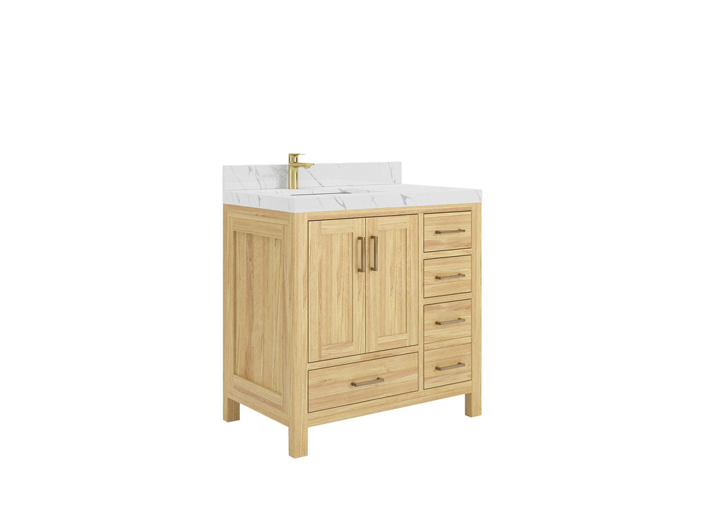 Malibu Teak Wood 36 in. W x 22 in. D Left Offset Sink Bathroom Vanity | Light Natural Teak