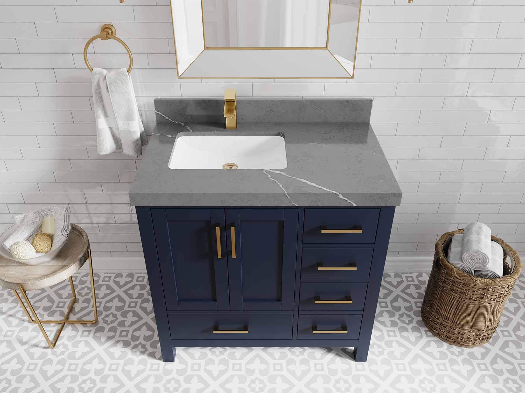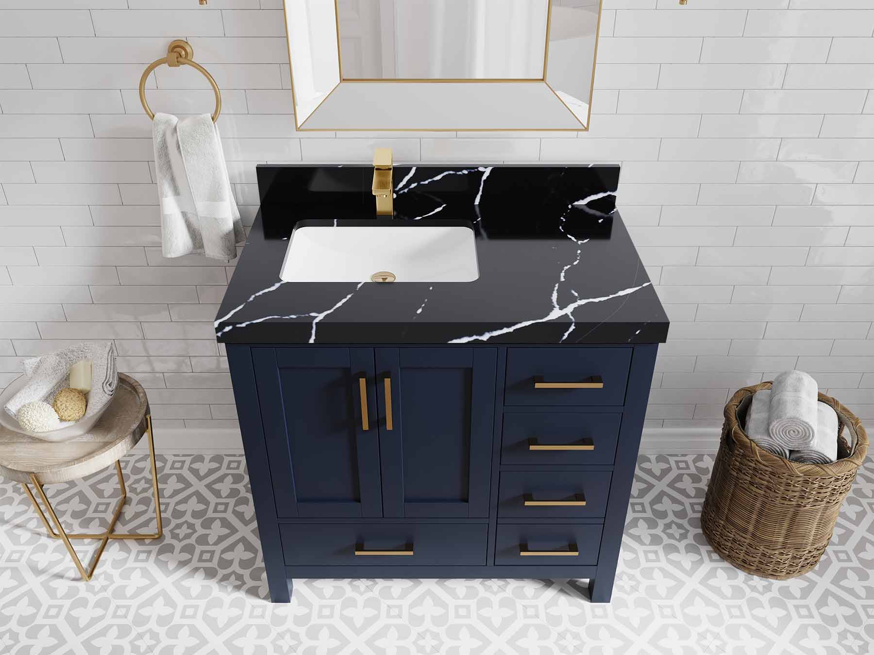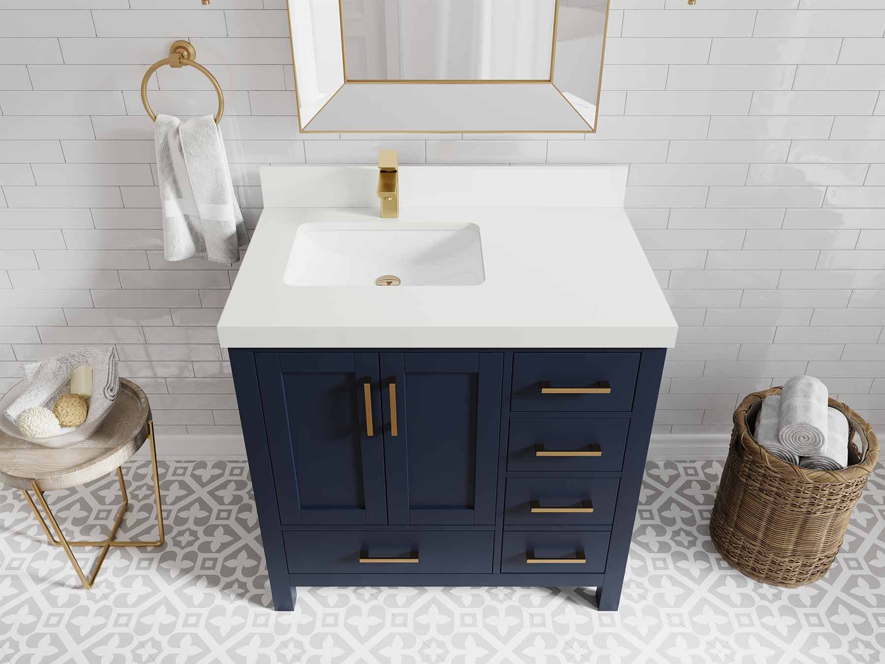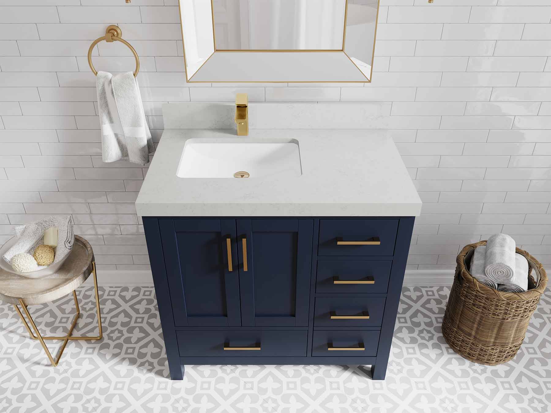 Malibu 36 in. W x 22 in. D Left Offset Sink Bathroom Vanity | Navy Blue