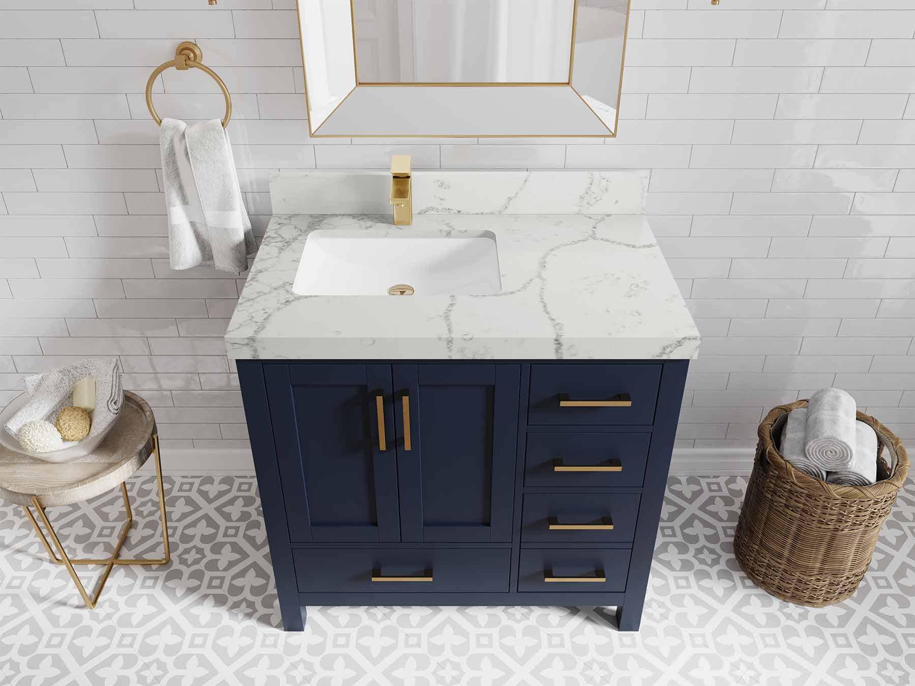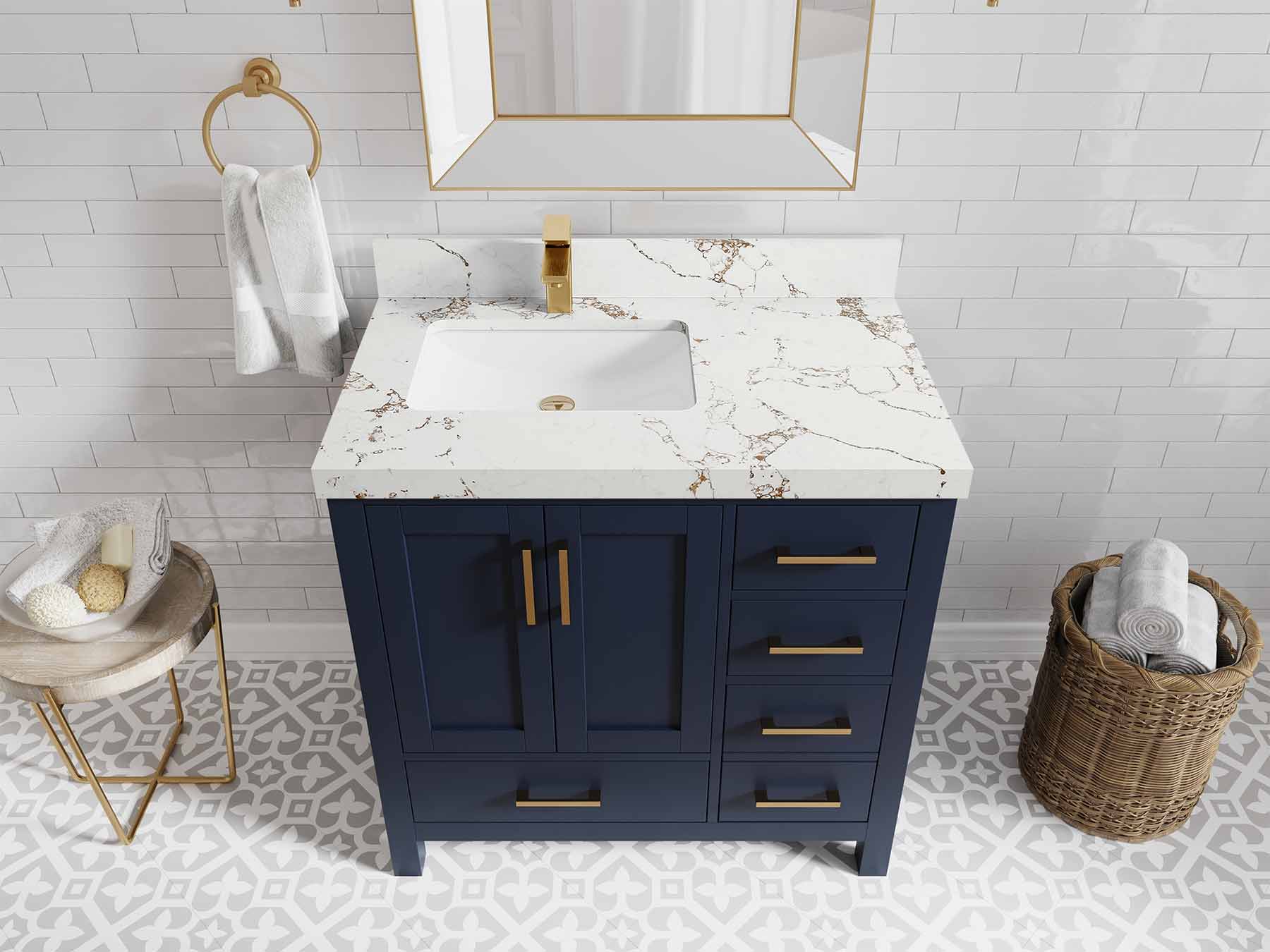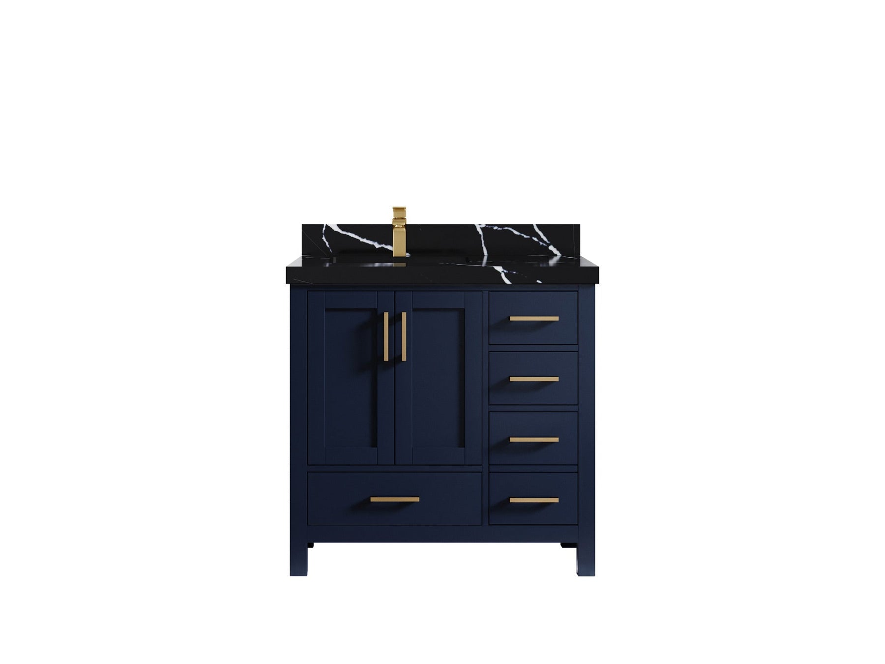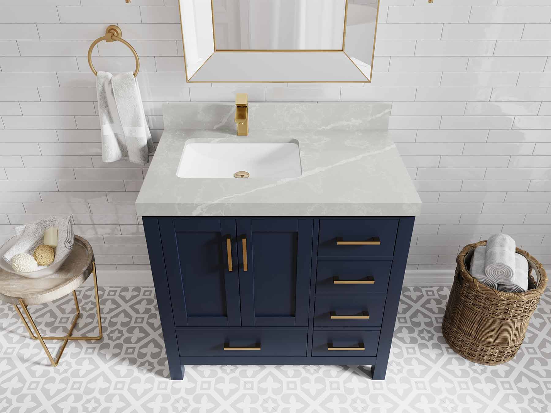 Malibu 36 in. W x 22 in. D Left Offset Sink Bathroom Vanity | Navy Blue