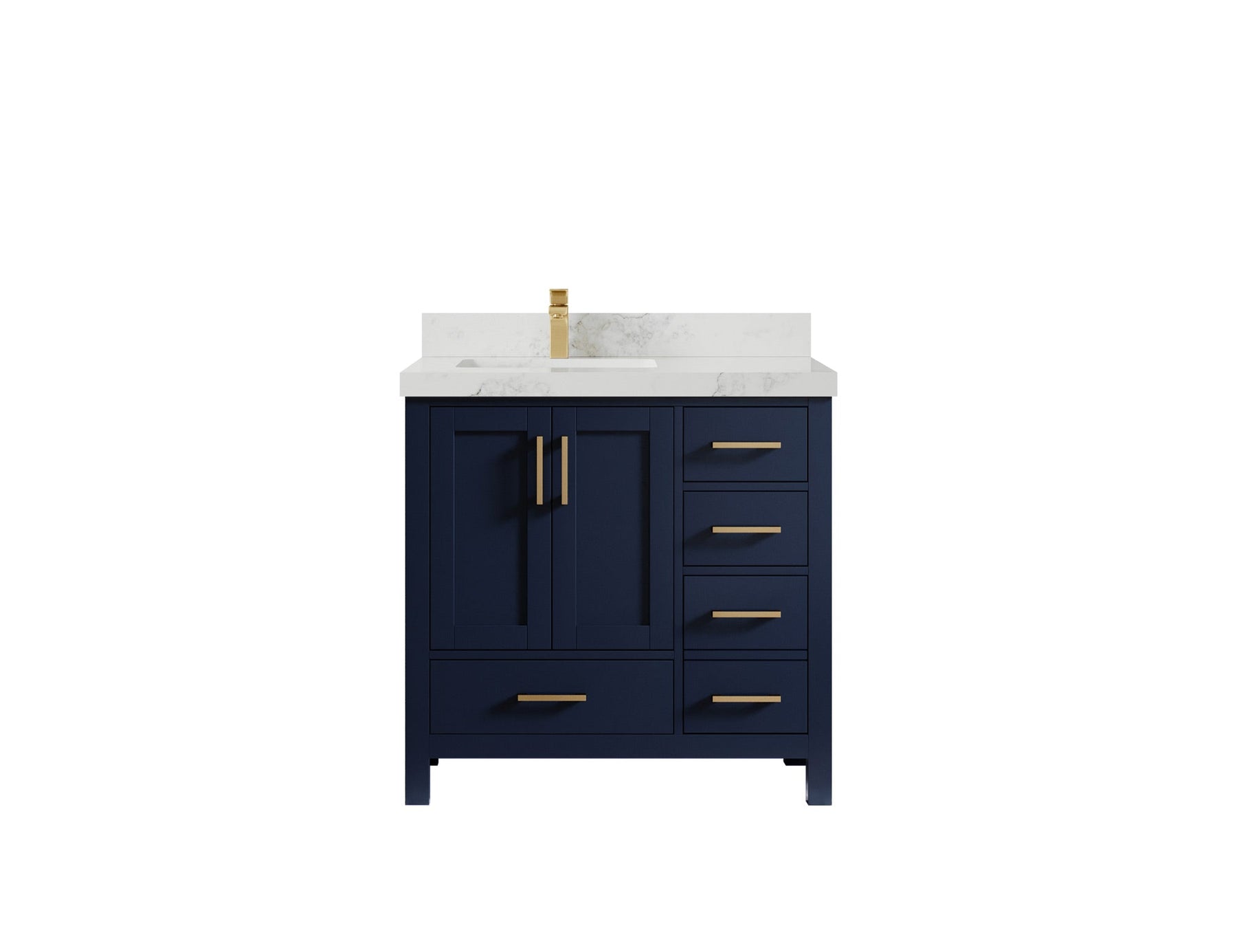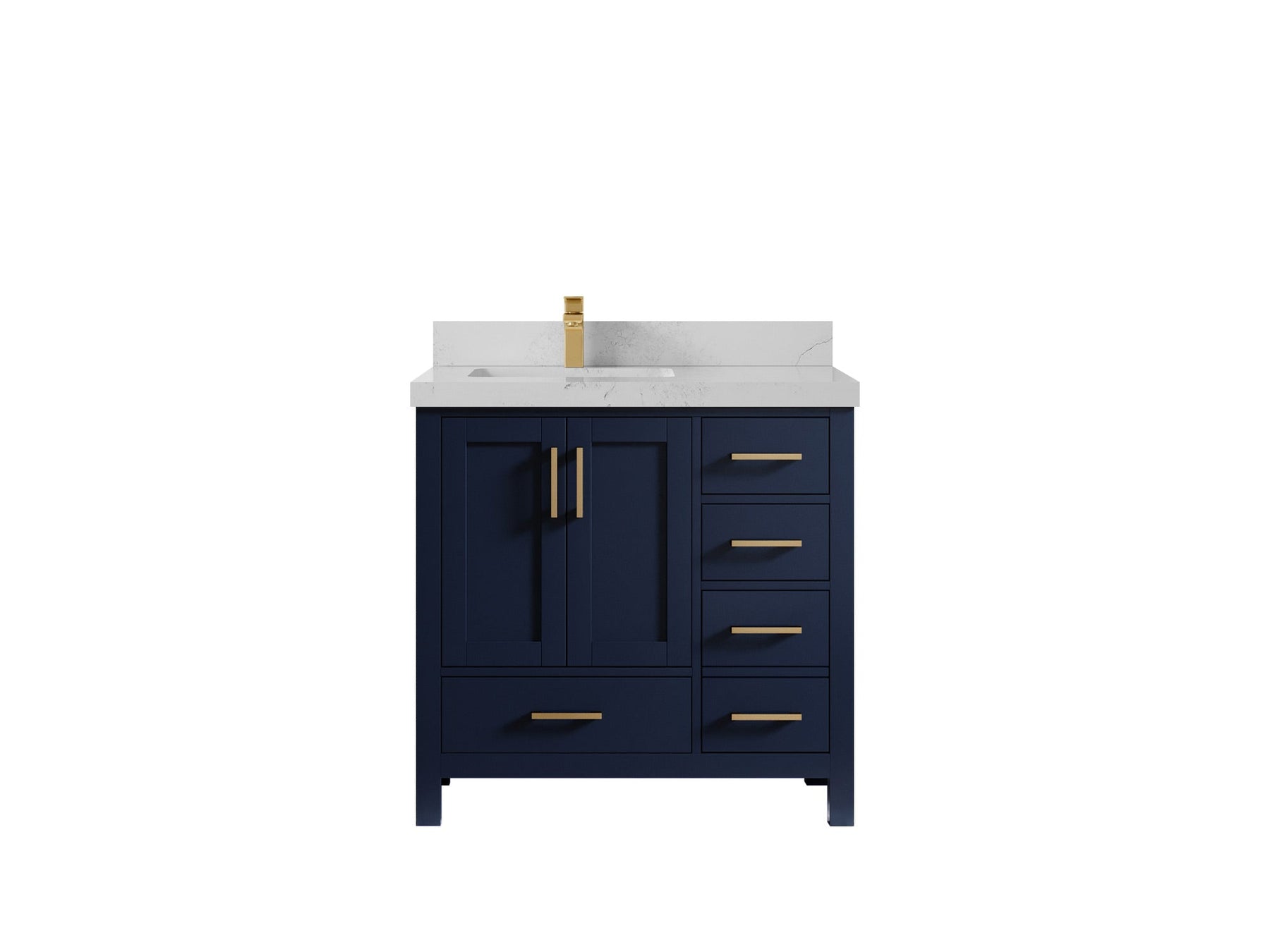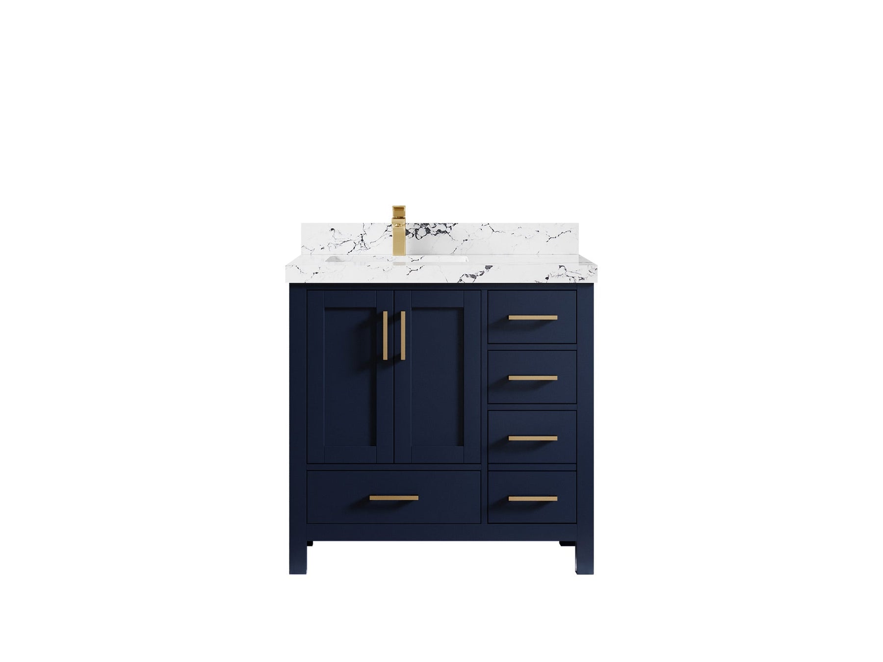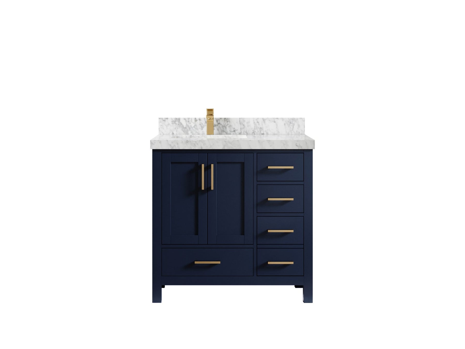 Malibu 36 in. W x 22 in. D Left Offset Sink Bathroom Vanity | Navy Blue