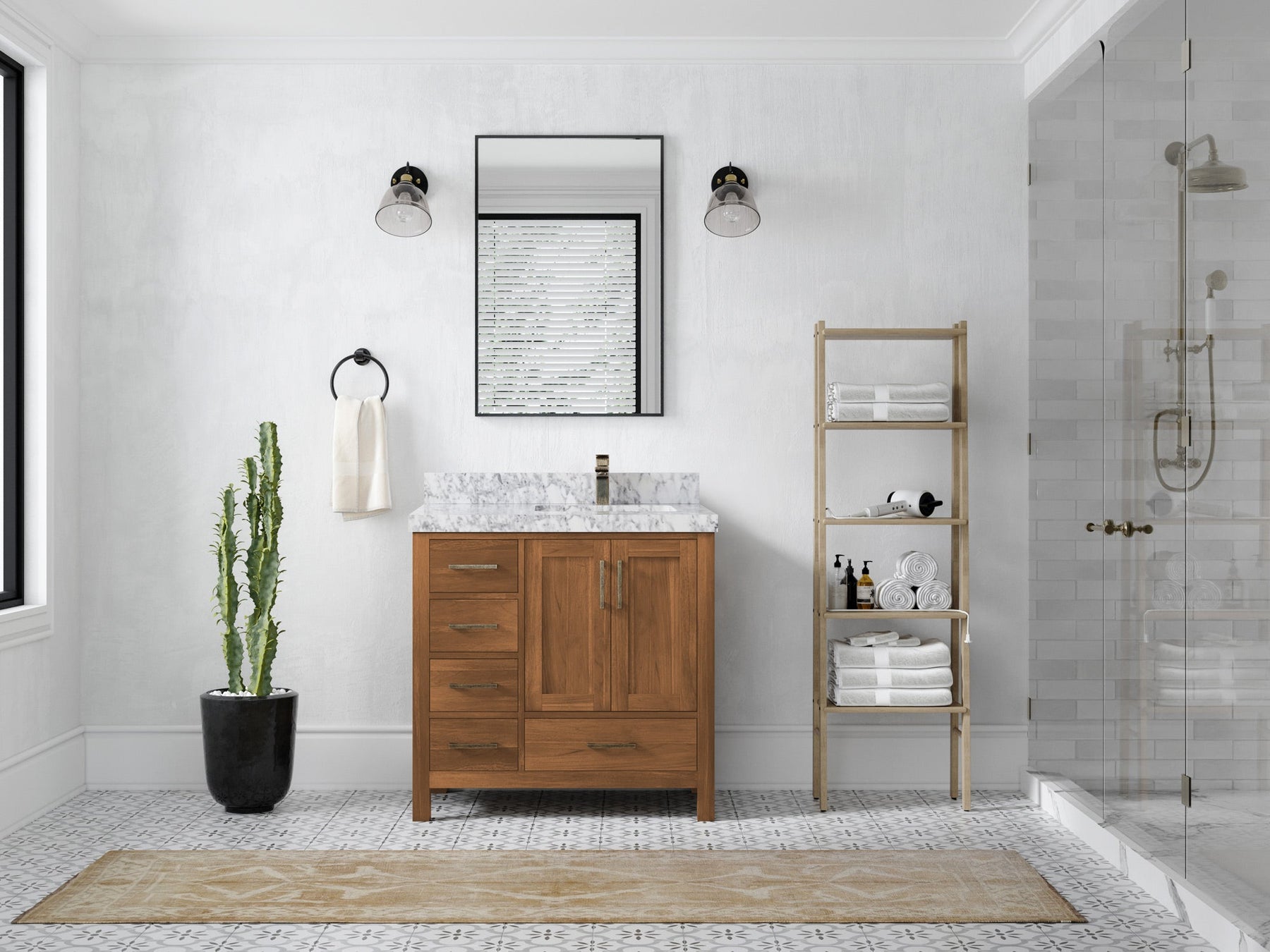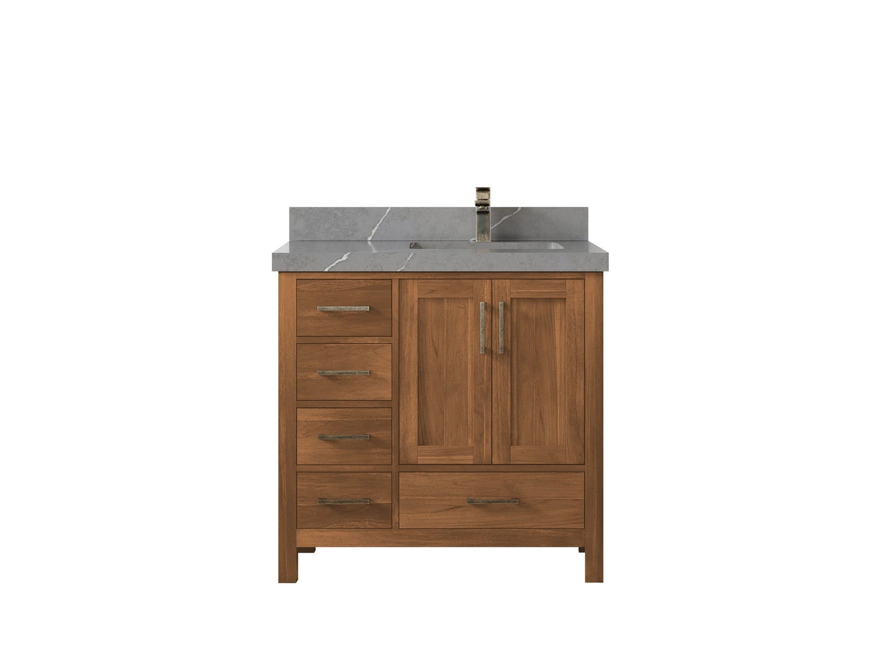 Vanity Countertops options: For Calacatta Laza Quartz, Empira White Quartz, Pure White Quartz we have 2 options Straight-Mitered Edge & Double Cove Edge, For Calacatta Black Quartz, Calacatta Gold Quartz, Calacatta Nuvo Quartz, Carrara Marble, Carrara Quartz, Pearl Light Gray Quartz, Piatra Gray Quartz, Venatino Quartz, and Light Concrete Gray Quartz we only have Straight - Mitered Edge option.