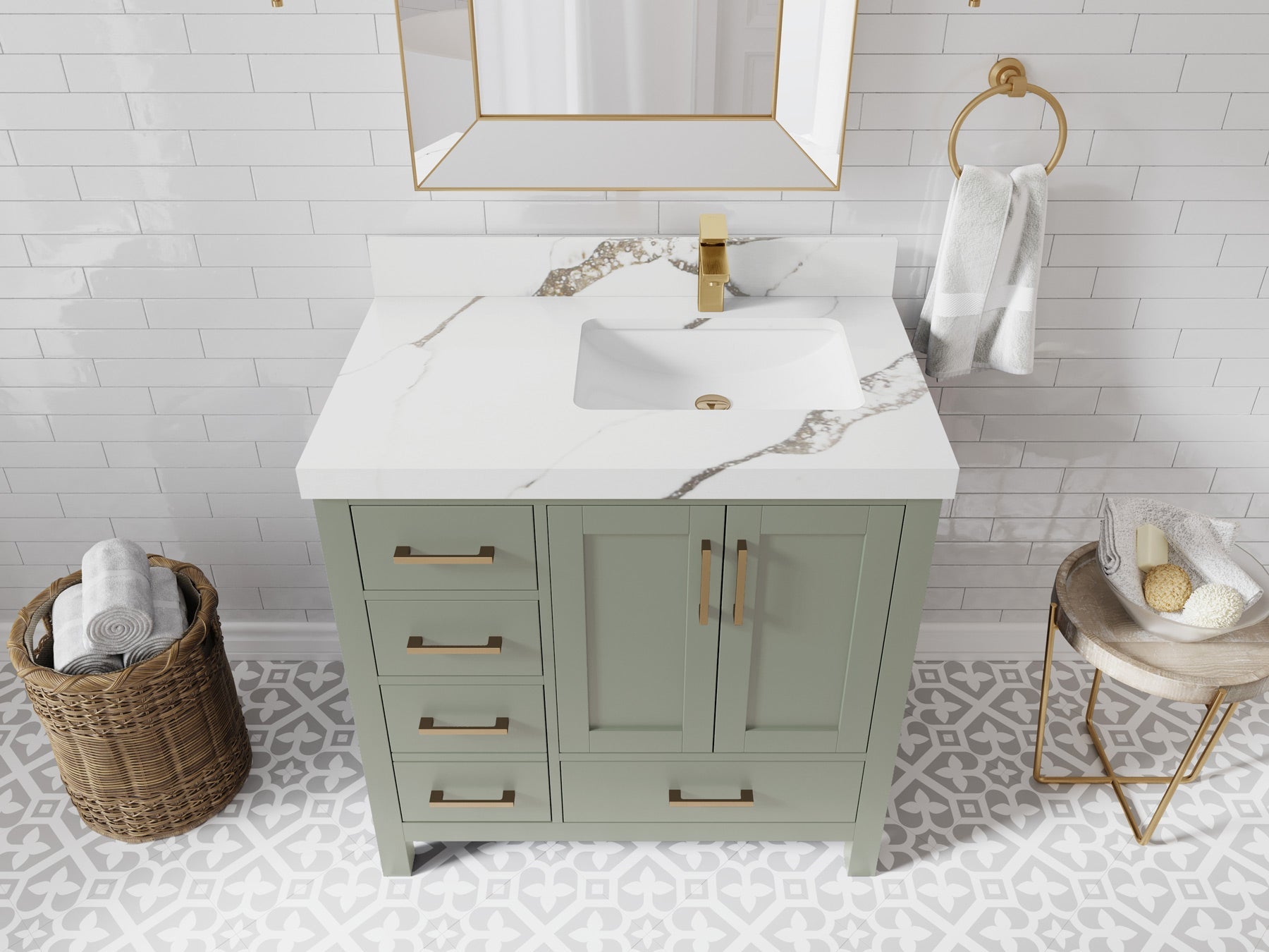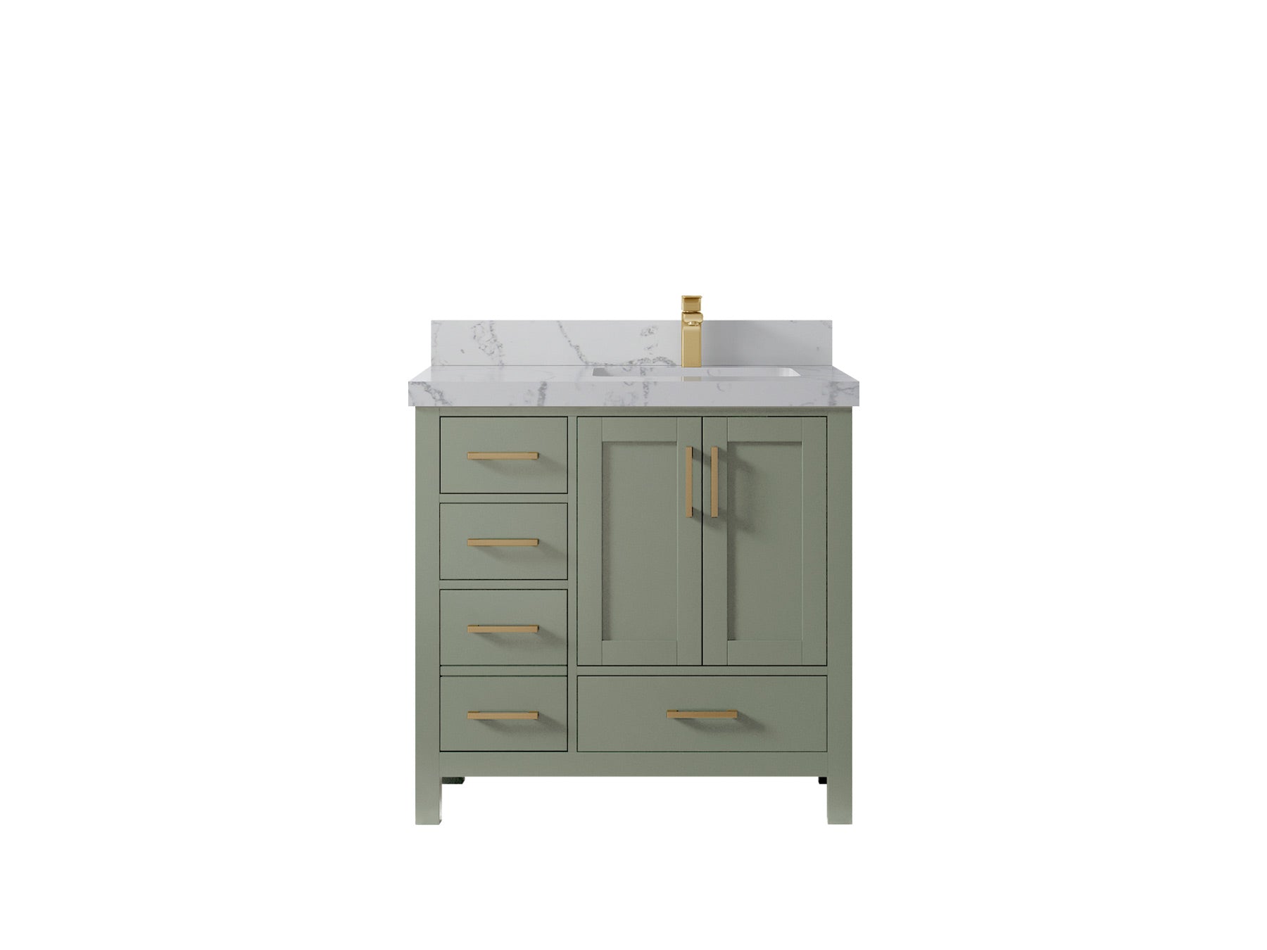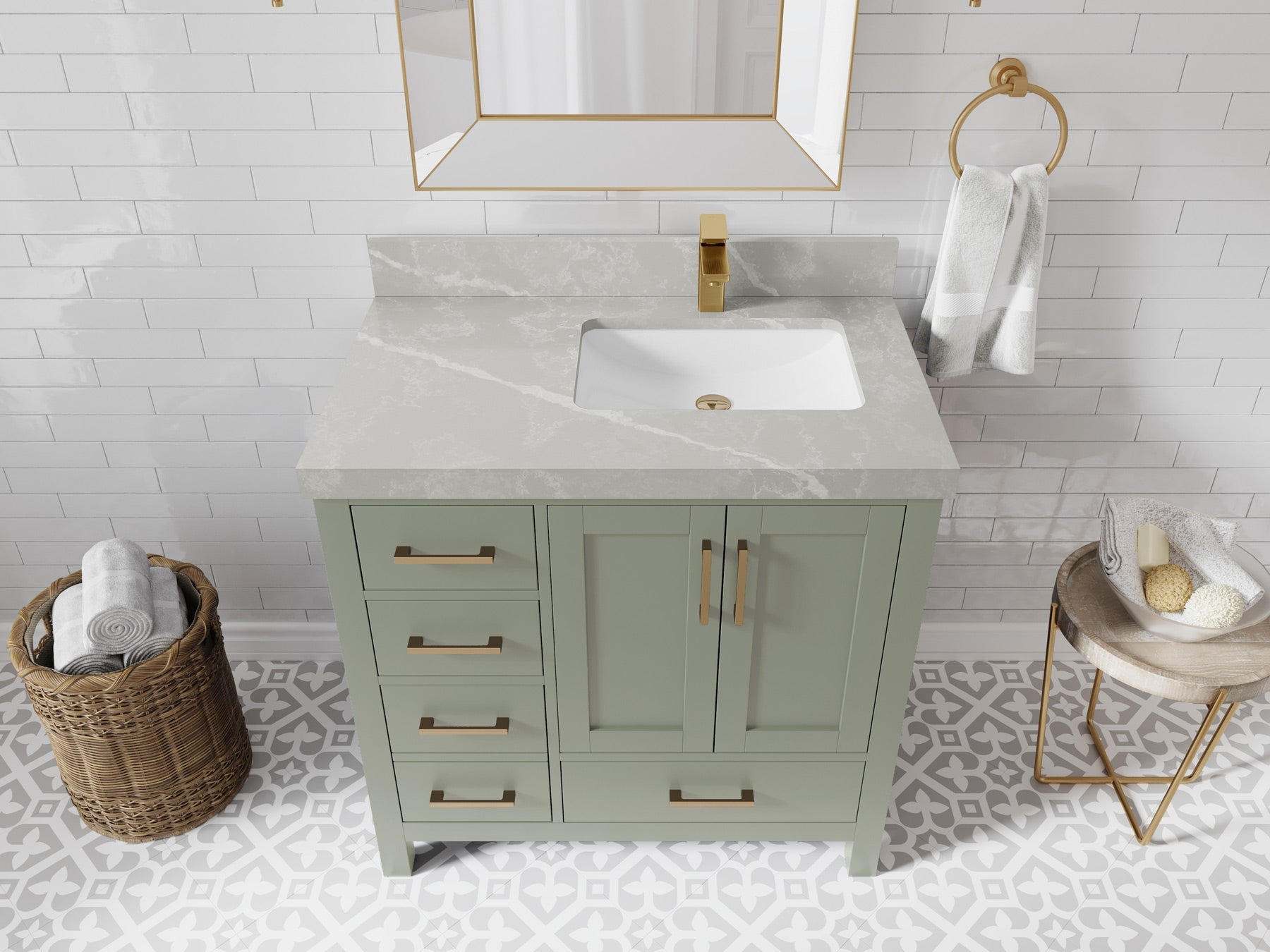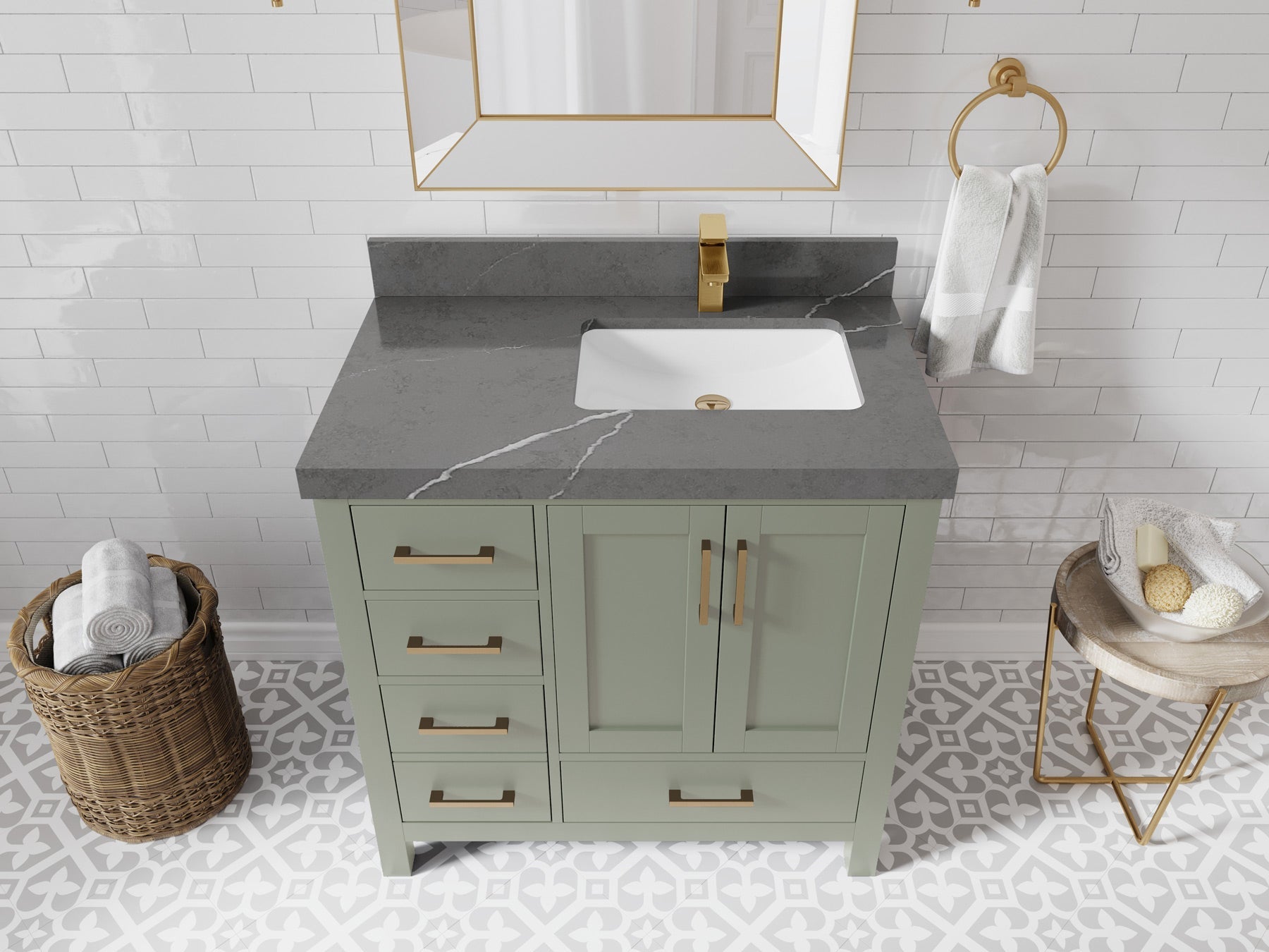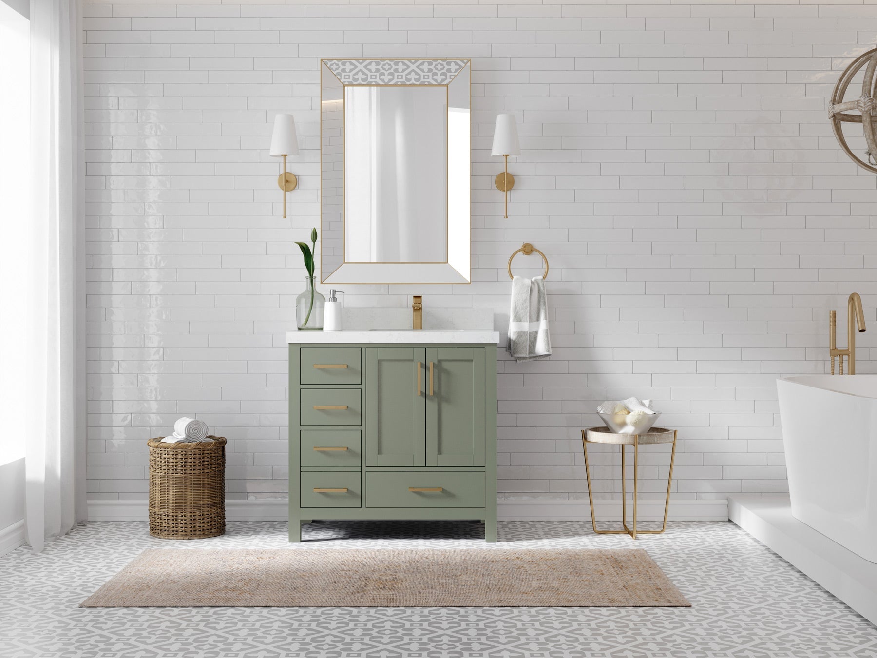 Malibu 36 in. W x 22 in. D Right Offset Sink Bathroom Vanity | Evergreen