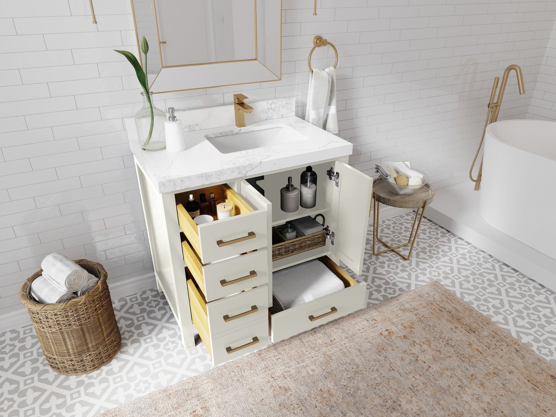4. Plenty of storage space - this vanity comes with plenty of cabinet space to store all your bathroom essentials.