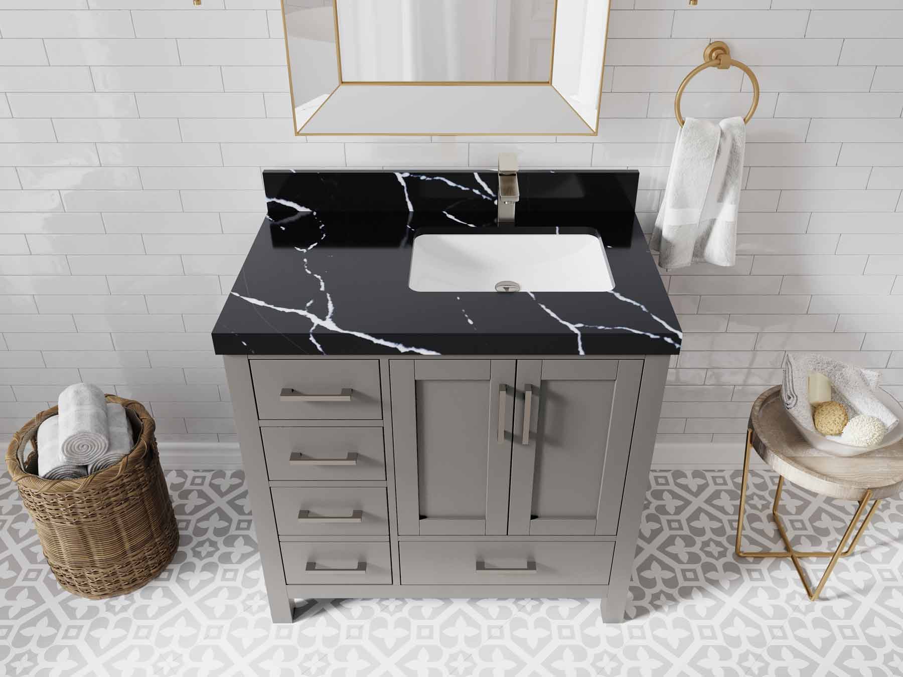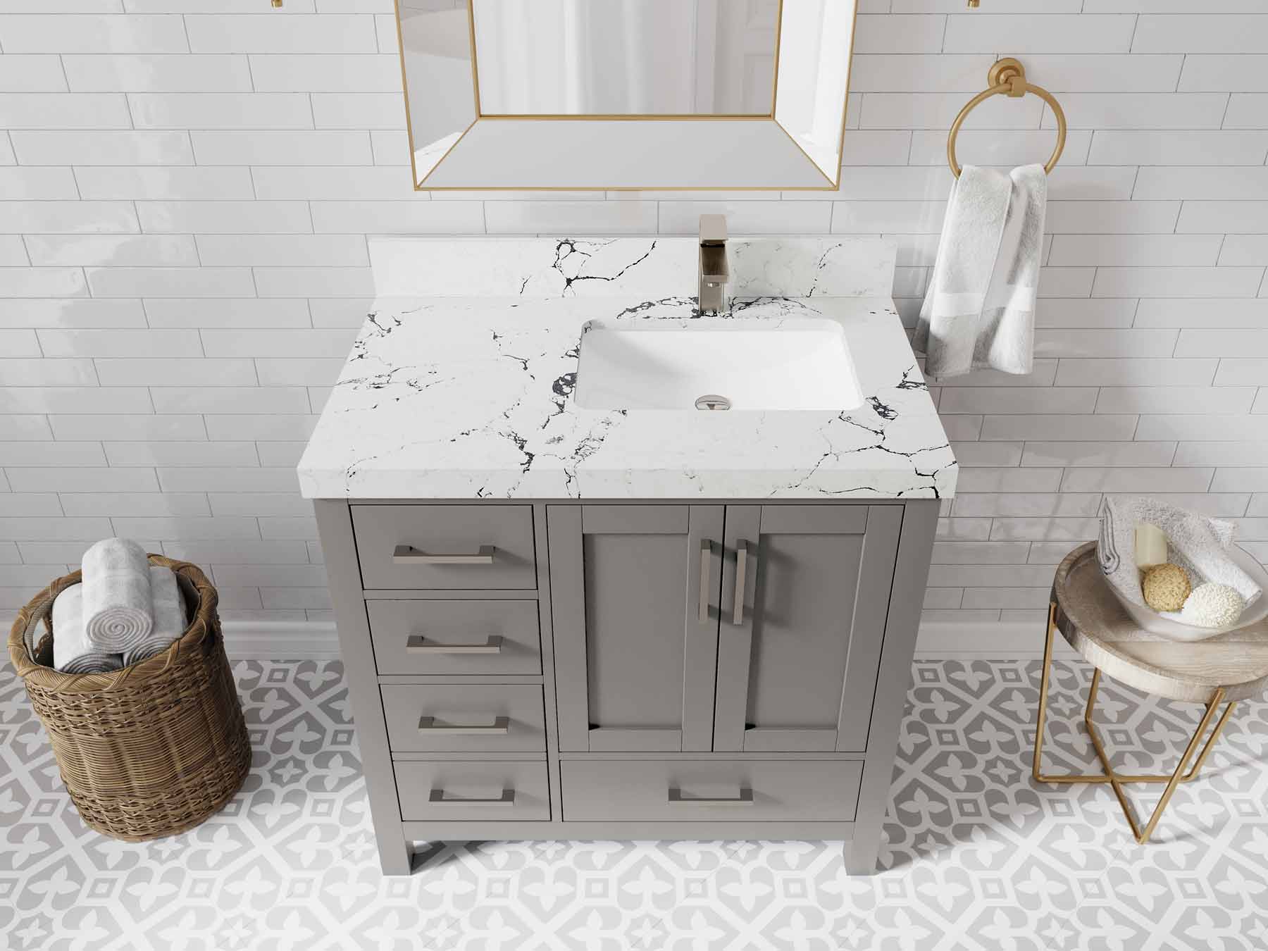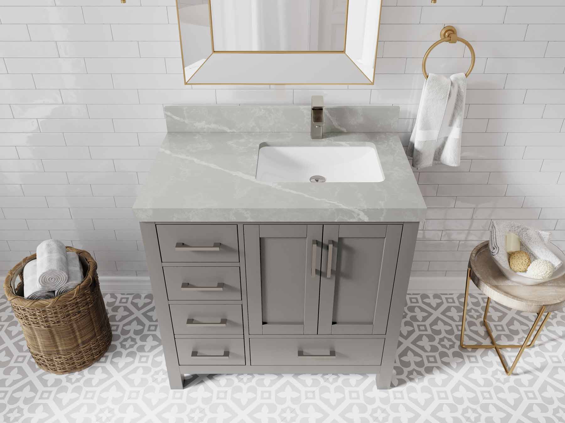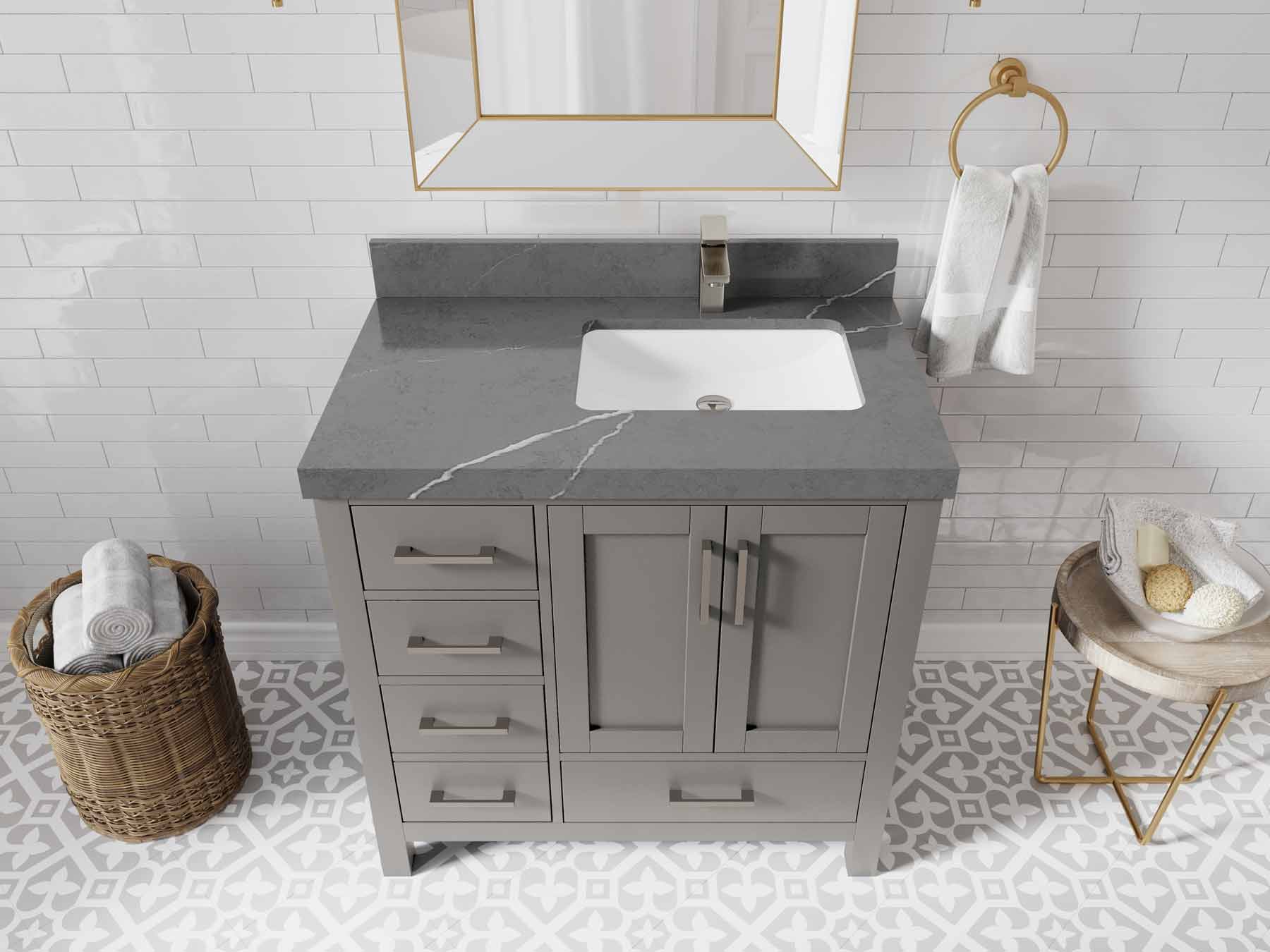Malibu 36 in. W x 22 in. D Right Offset Sink Bathroom Vanity | Elephant Skin Gray