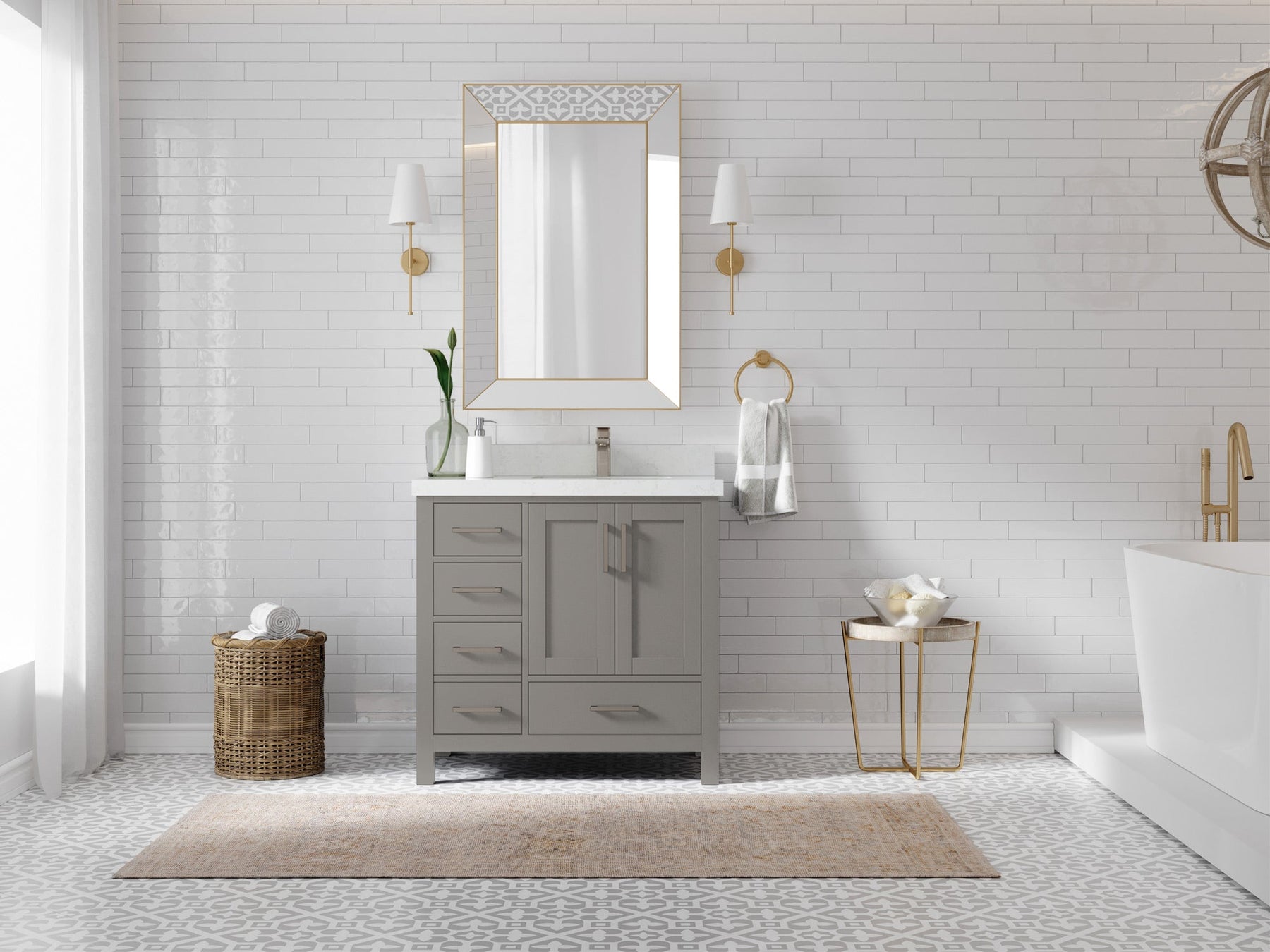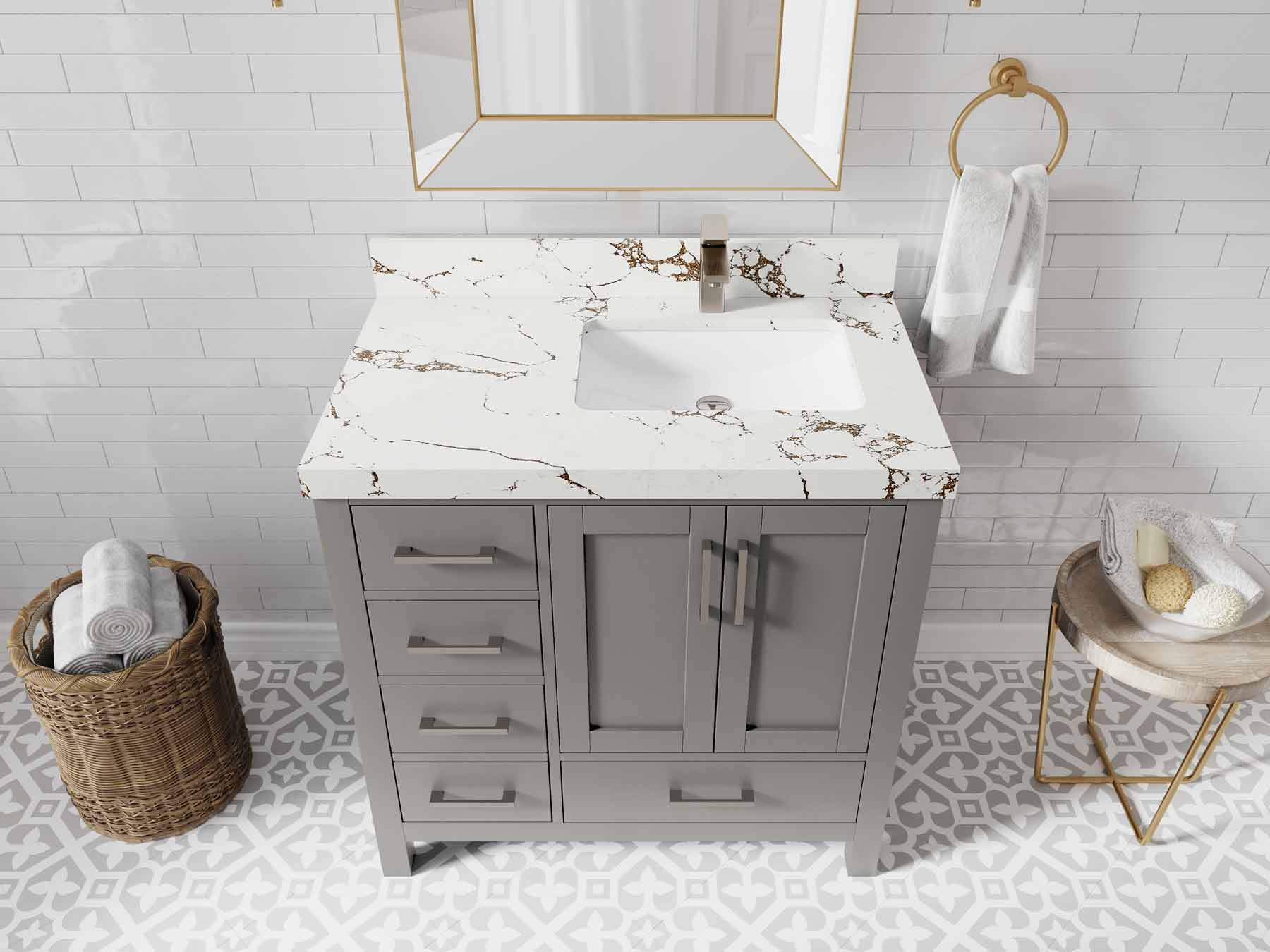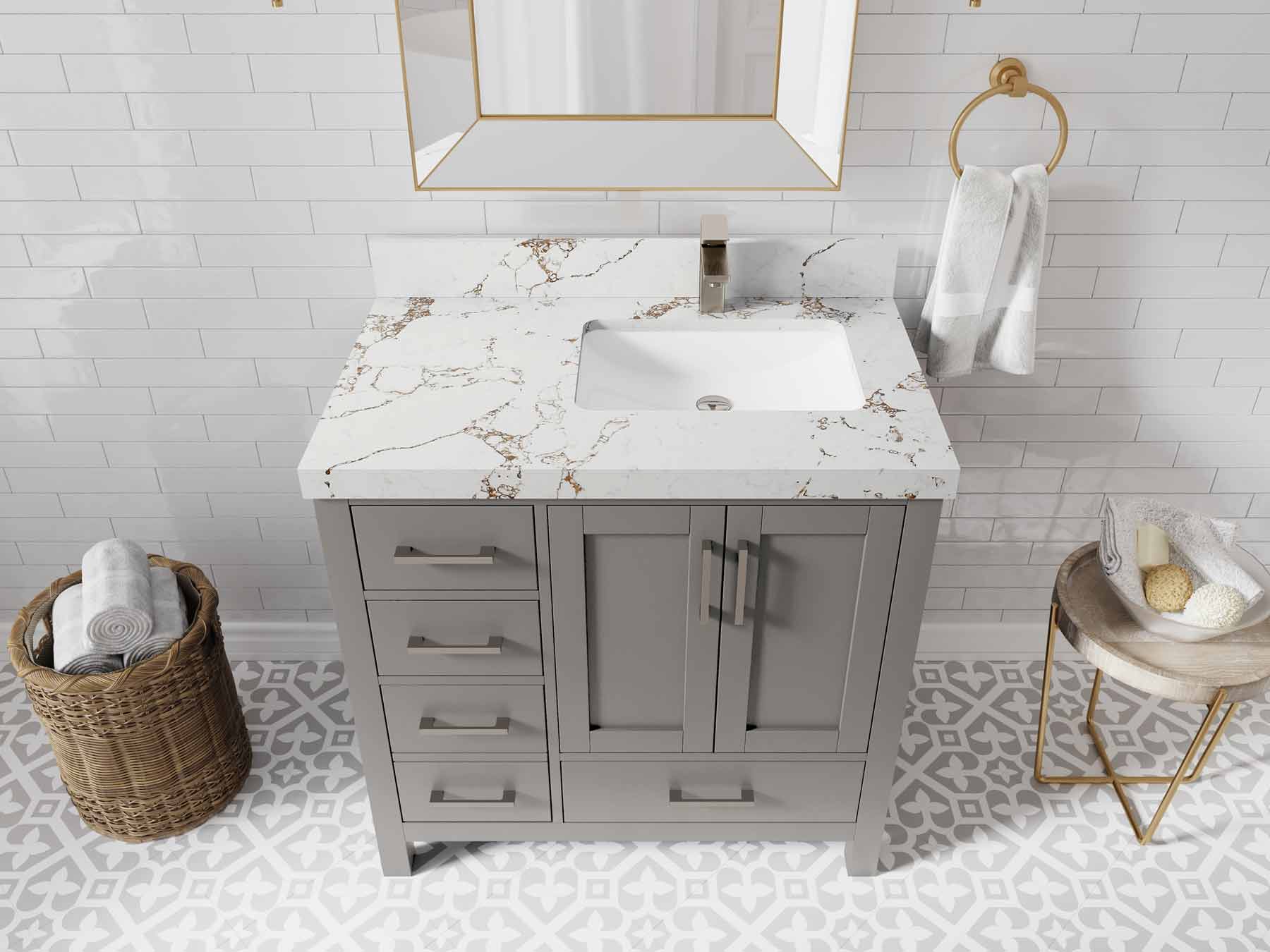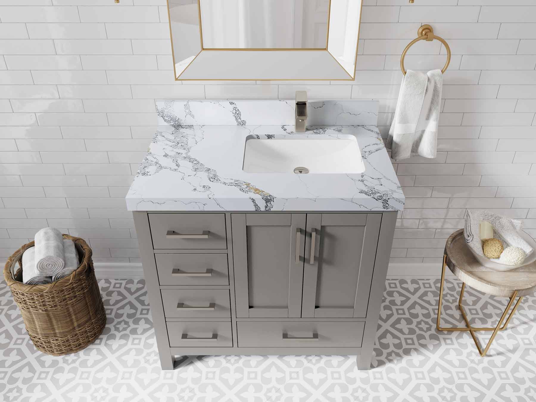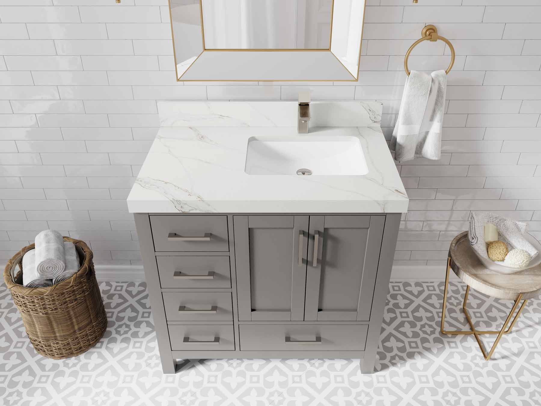 Malibu 36 in. W x 22 in. D Right Offset Sink Bathroom Vanity | Elephant Skin Gray