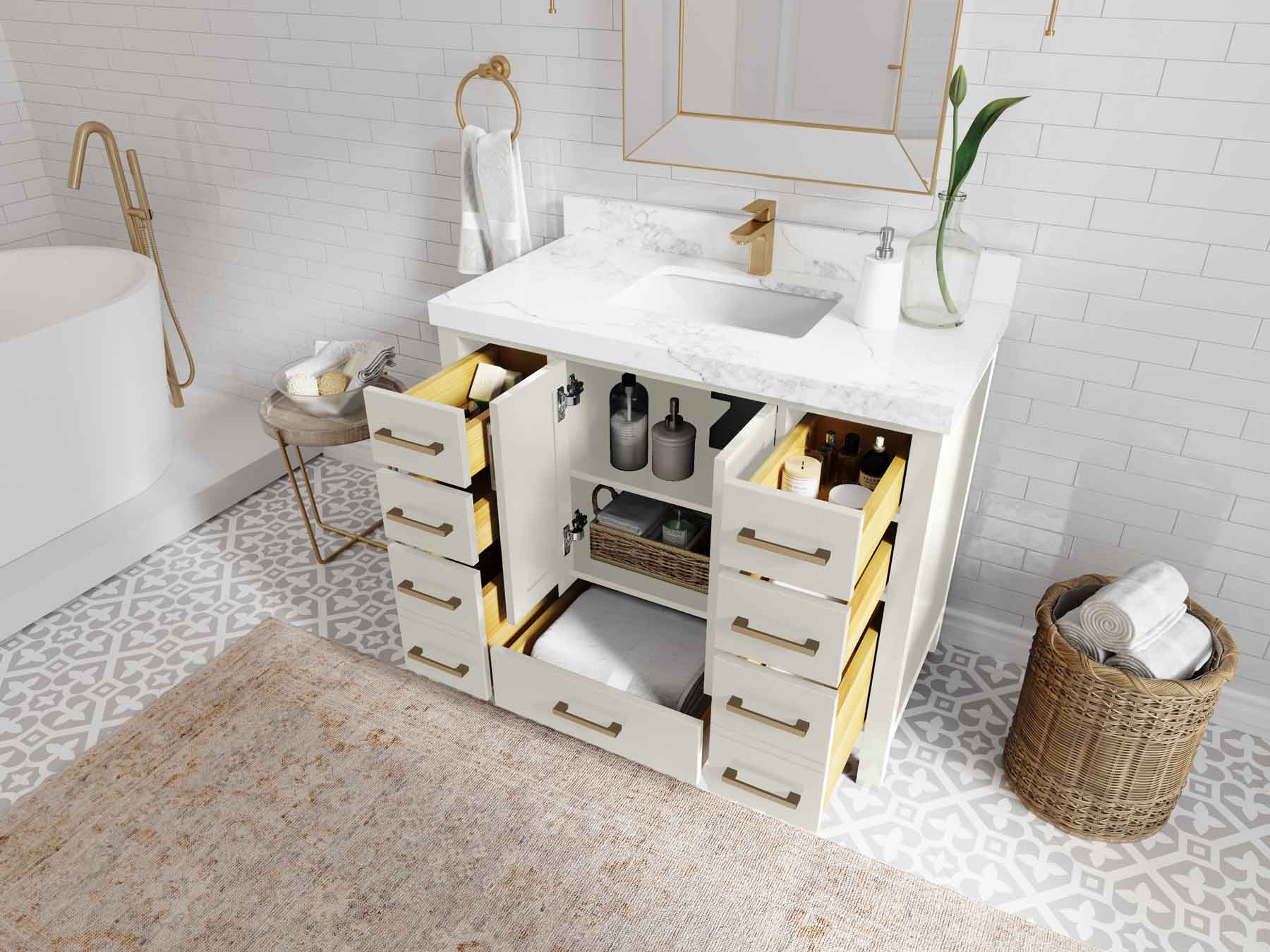 4. Plenty of storage space - this vanity comes with plenty of cabinet space to store all your bathroom essentials.