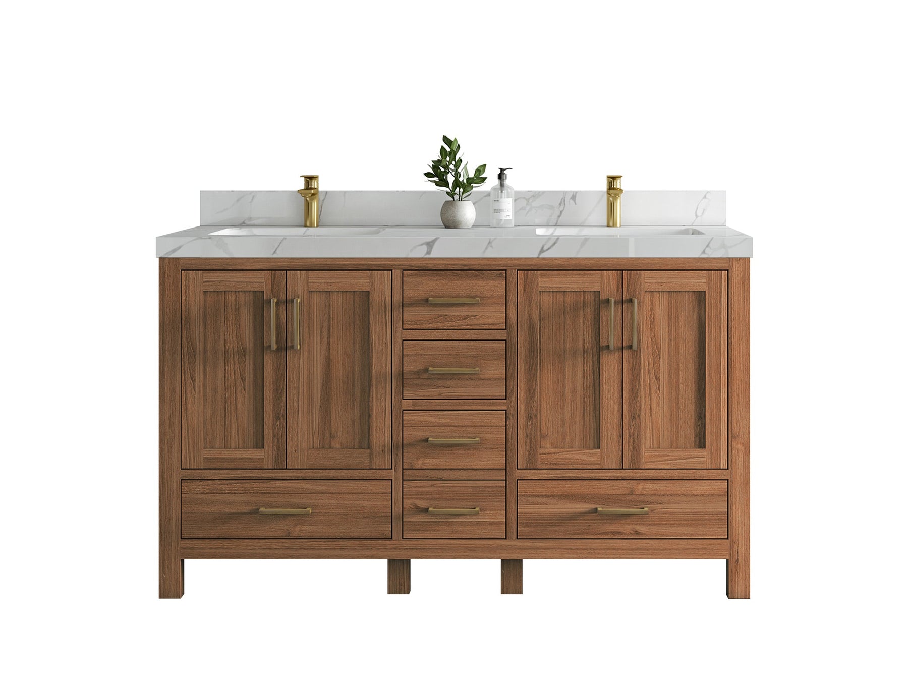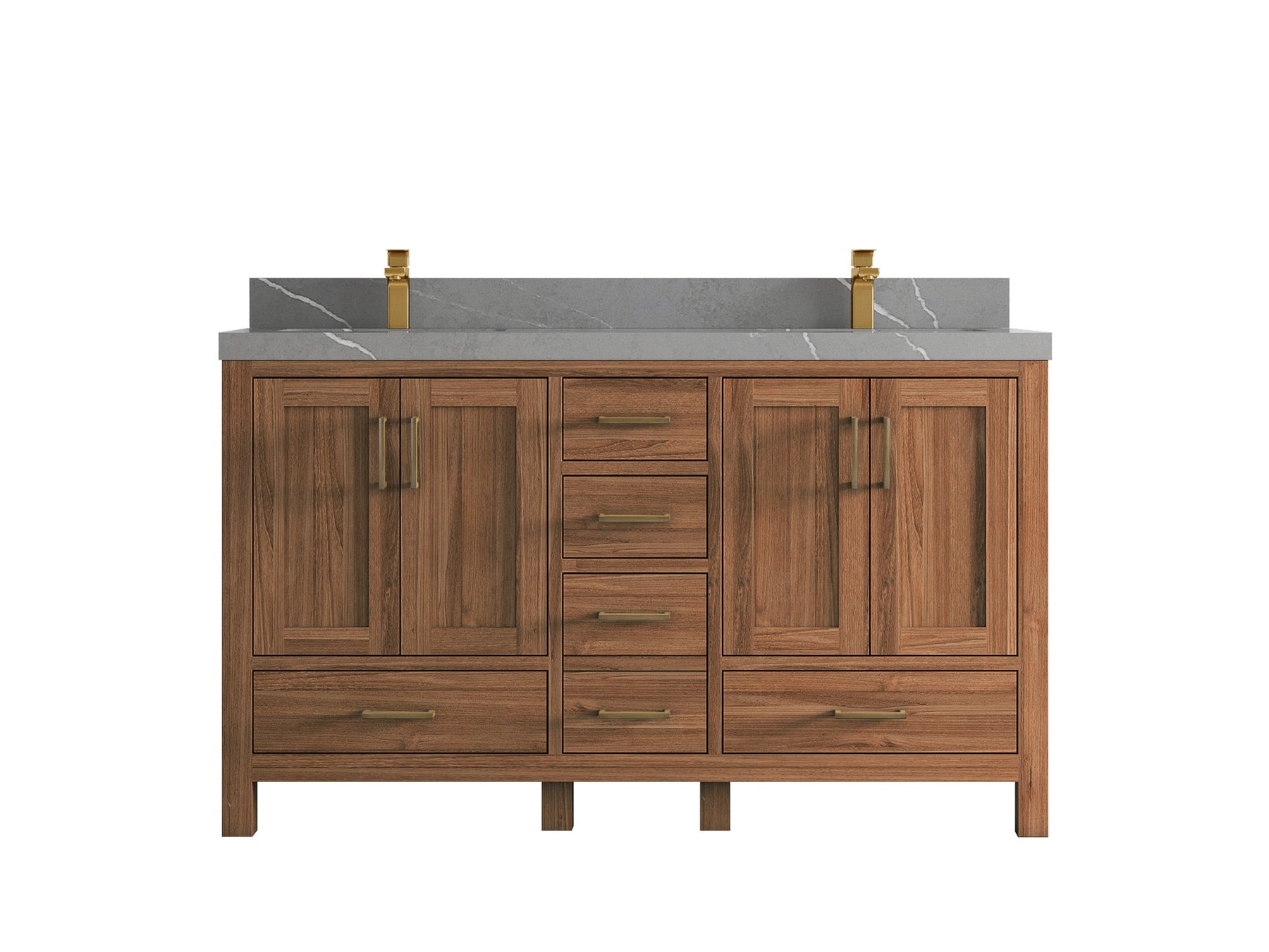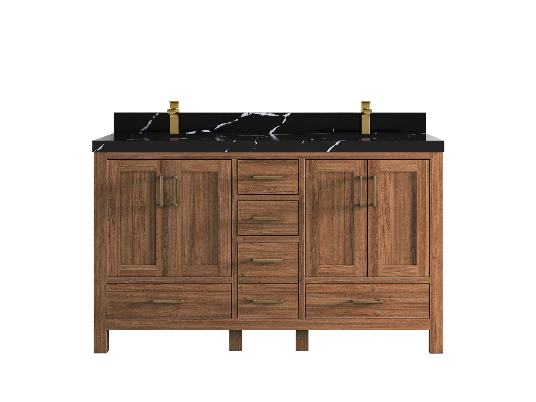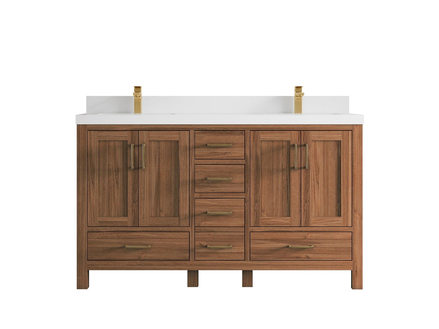 Malibu Teak Wood 60 in. W x 22 in. D Double Sink Bathroom Vanity | Dark Natural Teak