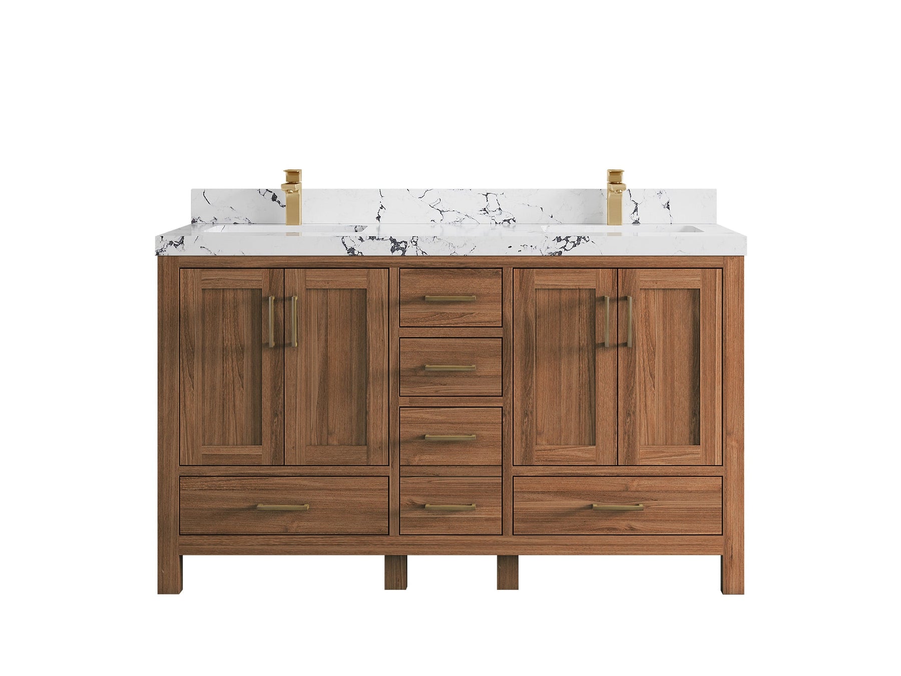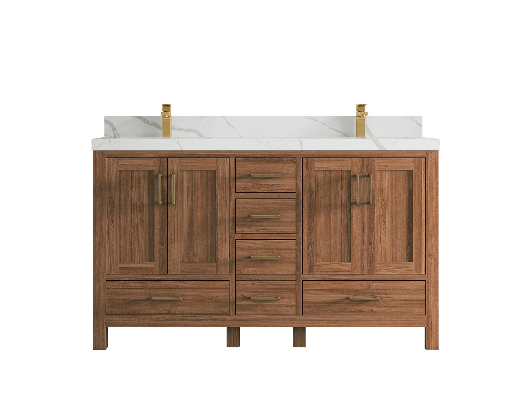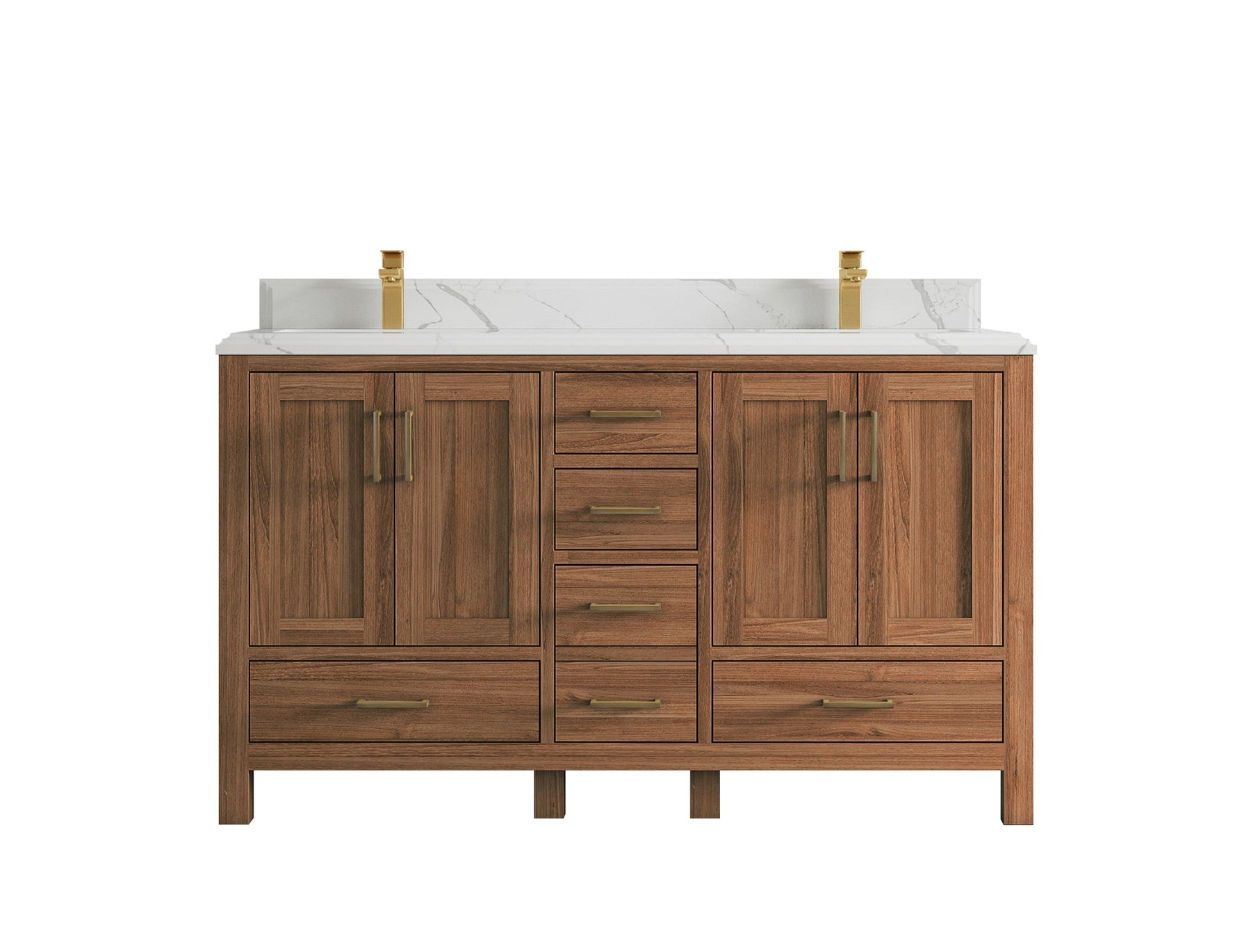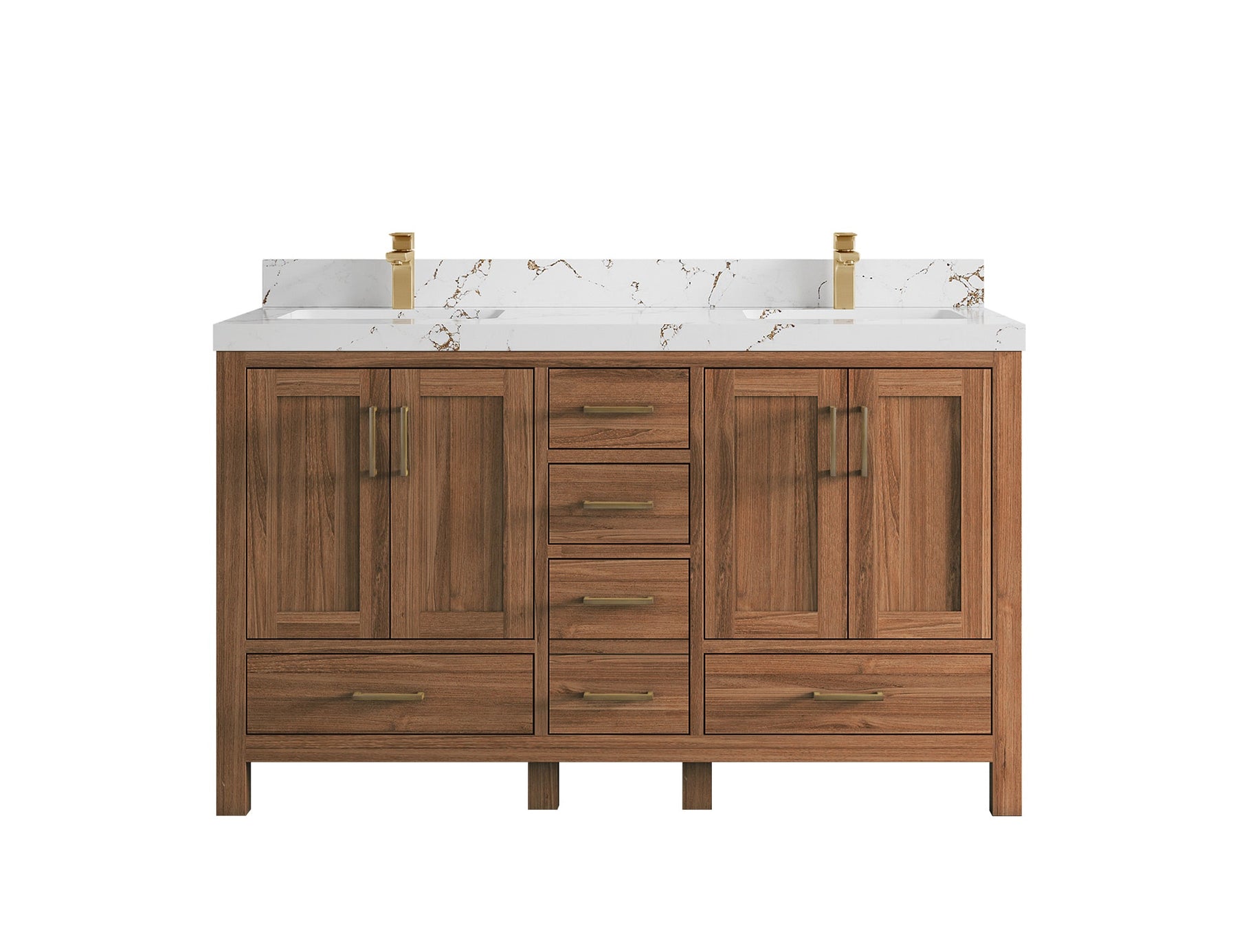 Malibu Teak Wood 60 in. W x 22 in. D Double Sink Bathroom Vanity | Dark Natural Teak